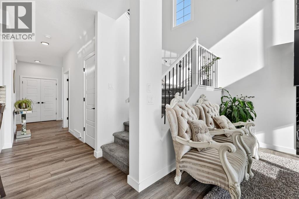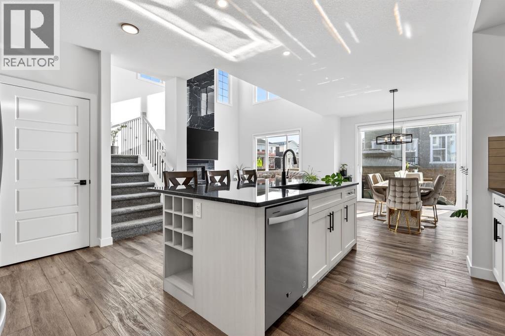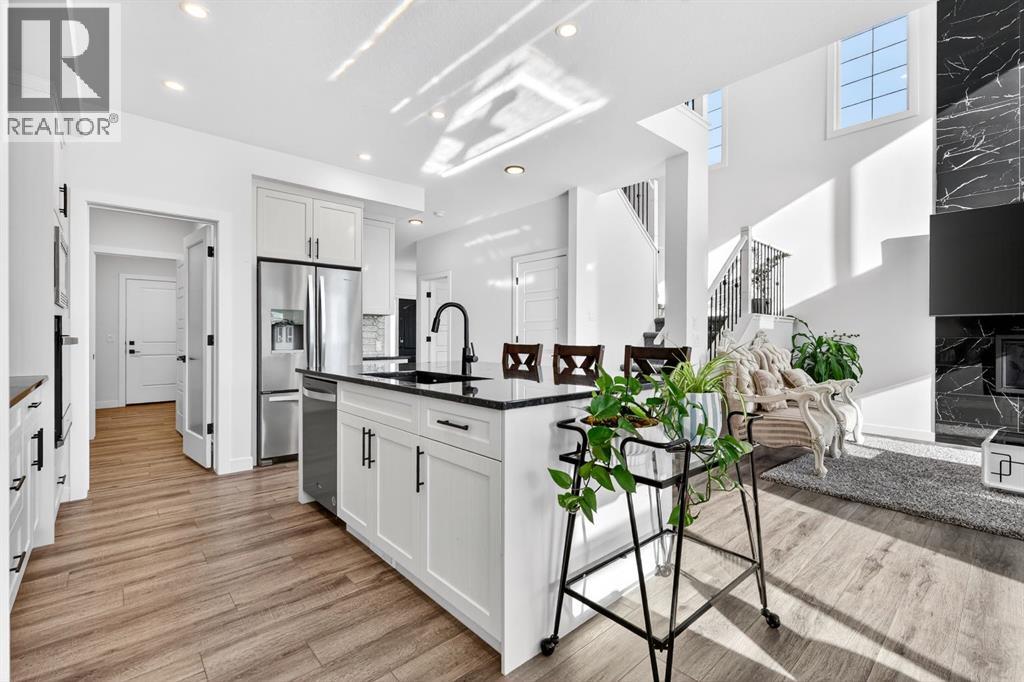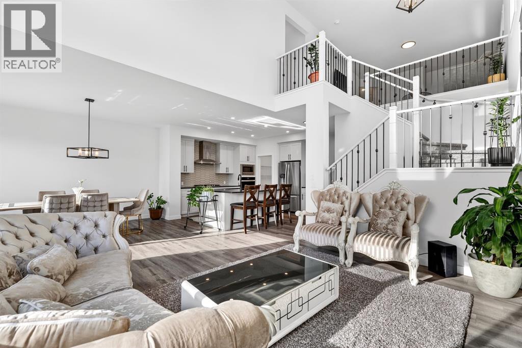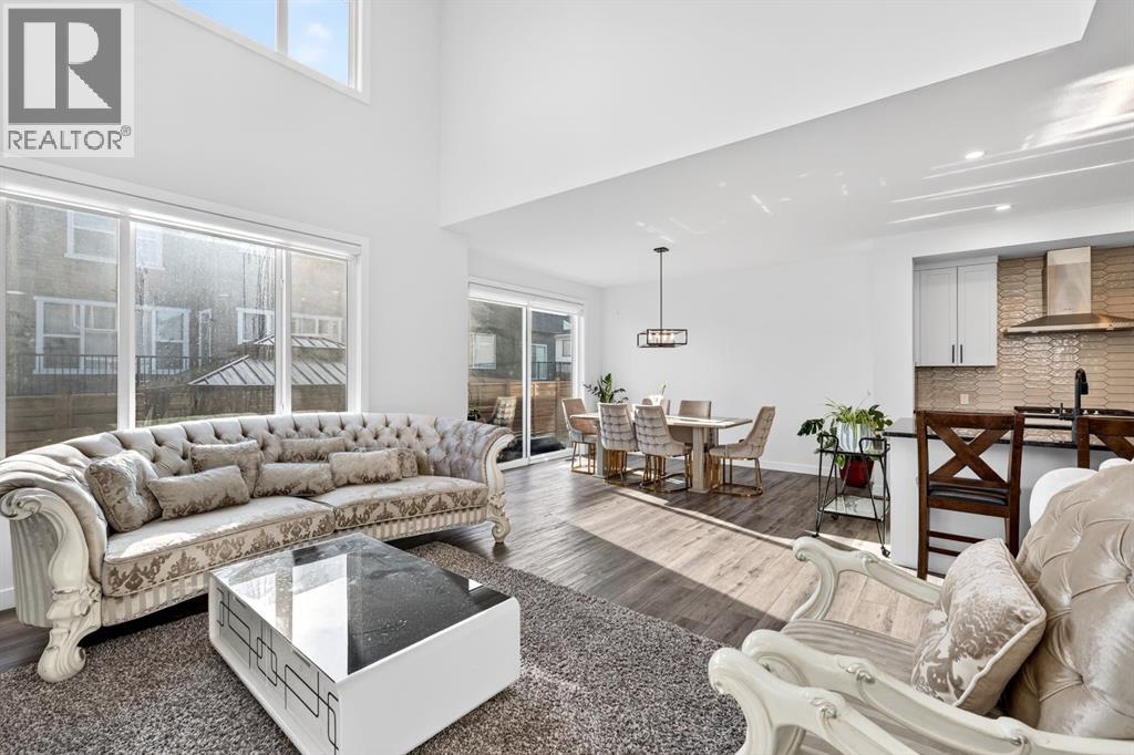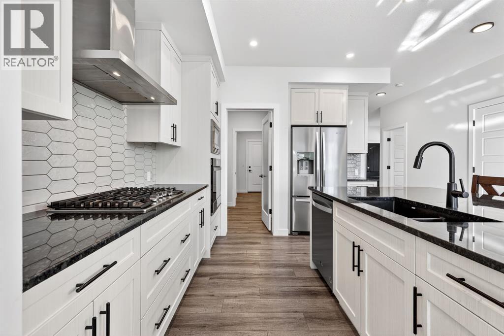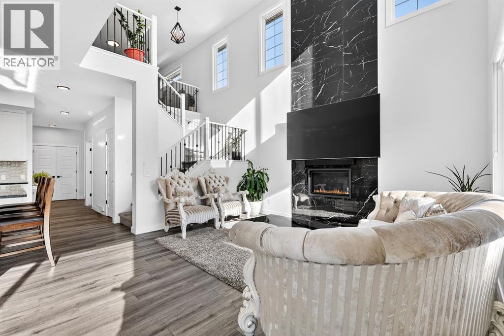 Welcome to an exceptional 2023-built home in the community of Dawson’s Landing, where modern design, everyday functionality, and income potential come together on a generous 5,793 sqft quiet corner lot. Offering an impressive 3,514 sqft of beautifully developed living space, this west-facing residence is designed to capture warm afternoon light, filling the home with a bright and inviting atmosphere from the moment you arrive. Step inside the expansive main floor, where a grand foyer and 9-foot ceilings set the tone for the elegance that unfolds throughout. The open-concept layout seamlessly connects the kitchen, dining, and living areas, anchored by a breathtaking living room ceiling that soars over 18 feet. A stunning floor-to-ceiling tiled gas fireplace creates a dramatic focal point, adding warmth and sophistication to the heart of the home. The chef-inspired kitchen is both stylish and practical, featuring built-in appliances, ample cabinetry, abundant counter space, a massive walk-in pantry, and an oversized island perfect for entertaining, family gatherings, and effortless meal preparation. A main floor bedroom and full bathroom provide ideal flexibility for guests, multigenerational living, or a private home office, while the convenient boot room offers direct access to the double attached garage. The upper level continues to impress with over 1,300 sqft of thoughtfully designed space. A bright and open bonus room is bathed in natural light, creating the perfect retreat for relaxing or family movie nights. The luxurious primary suite is privately positioned and features a spacious walk-in closet along with a spa-inspired 5-piece ensuite complete with double vanities. On the opposite side of the home, three additional generously sized bedrooms share a full bathroom, offering comfort and privacy for the entire family. A well-appointed laundry room with additional storage completes this level.The fully developed lower level offers outstanding versatility with its own private side entrance leading to a beautifully finished illegal basement suite spanning 930 sqft. Complete with a full kitchen, two bedrooms, a spacious living room, full bathroom, full-size washer and dryer, and dedicated utility room storage, this space is ideal for extended family, guests, or potential mortgage helper opportunities. Outside, the large landscaped yard is designed for both relaxation and entertaining, featuring a garden, gazebo, and concrete patio perfect for summer evenings and weekend gatherings. Ideally located near a convenient shopping complex for all your everyday and on-the-go needs, this remarkable home offers luxury, space, and lifestyle in one of the area’s most desirable settings. (id:63190)