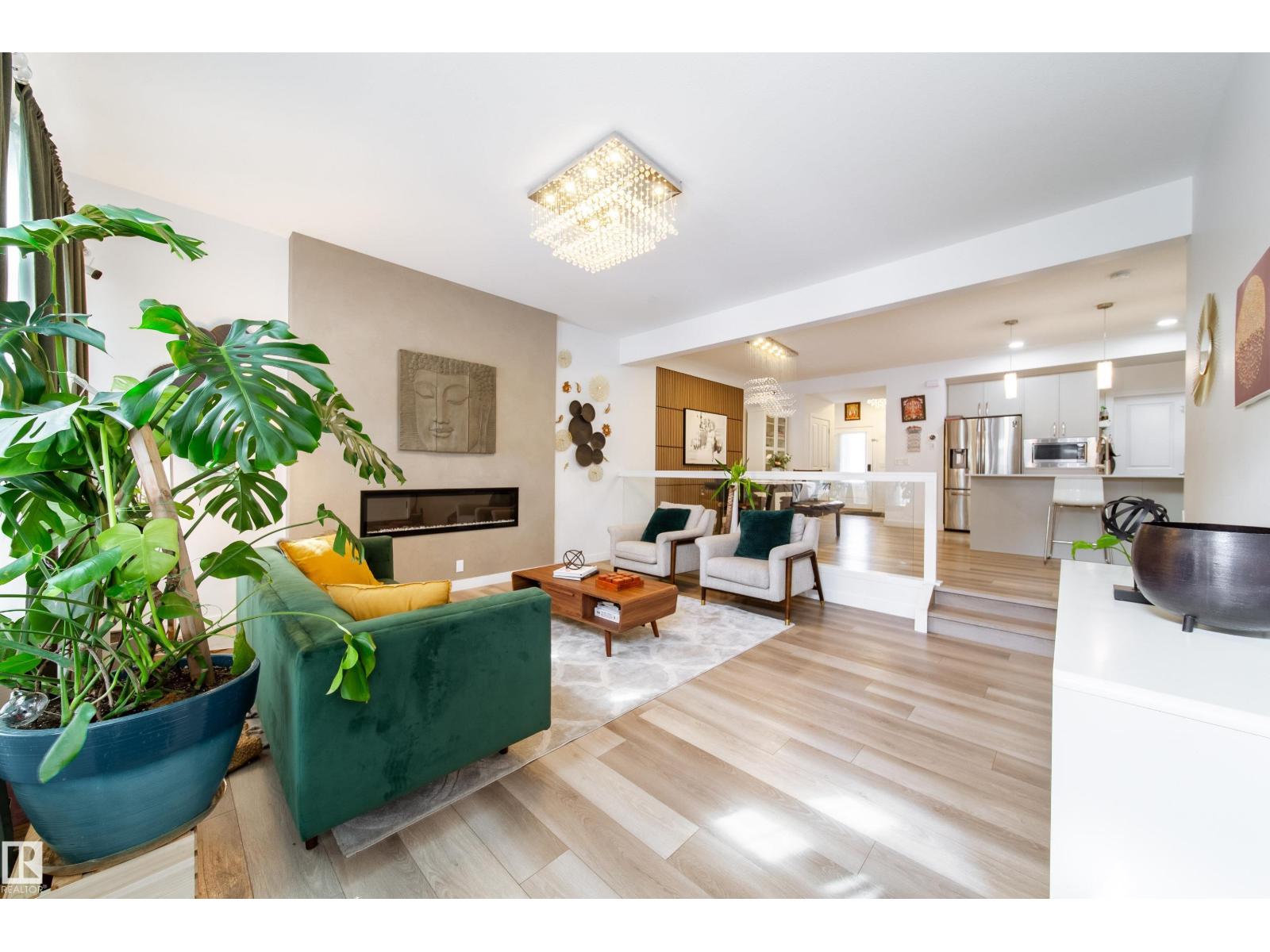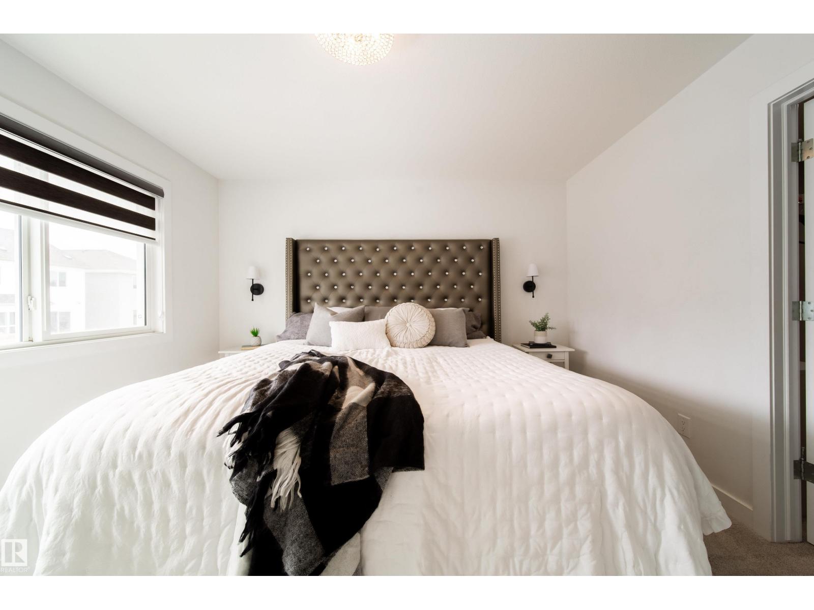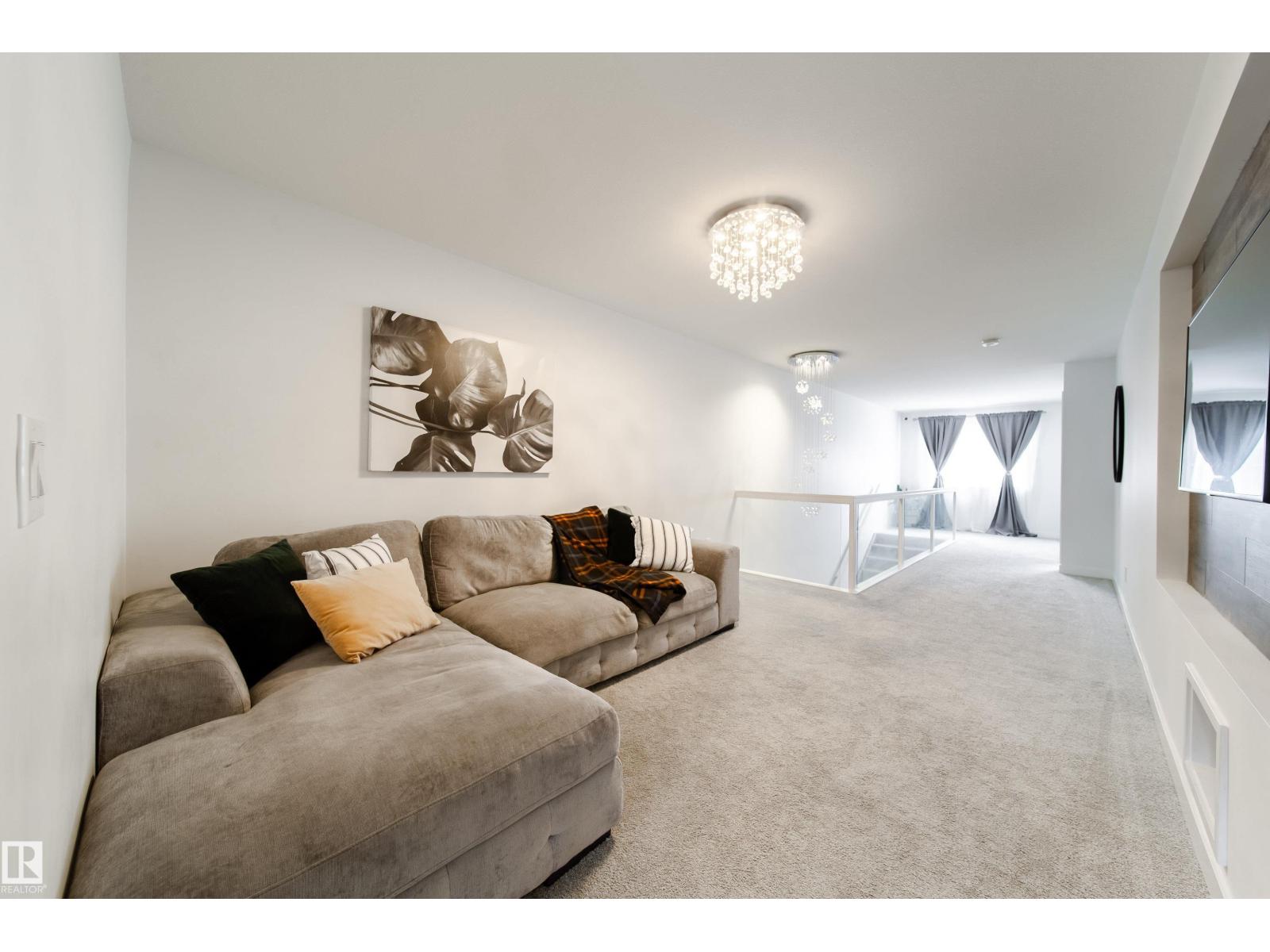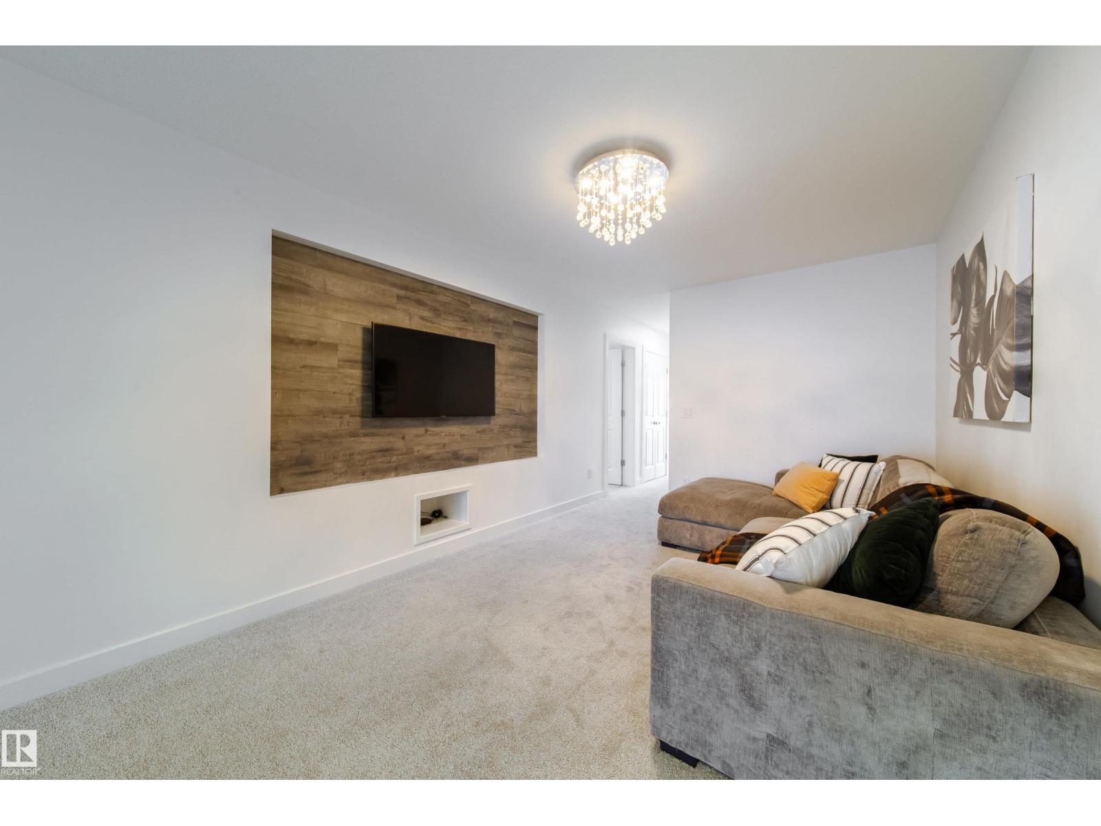 Welcome to this exceptional Secord home offering over 2,140 sq.ft. plus a fully finished basement—where thoughtful design meets everyday comfort. Soaring 9’ ceilings on the main and basement levels create a bright, open feel, while the expansive living room with feature wall & fireplace invites you to relax and gather. The chef-inspired kitchen features quartz countertops, gas stove with hood fan & a large pantry—perfect for entertaining. Upstairs offers a spacious bonus room, 2 generous bedrooms, a 5-pc bath with double vanity & convenient laundry. The primary retreat includes a walk-in closet & spa-like 5-pc ensuite. The fully finished basement—with separate entry—adds flexibility with a bedroom, ensuite, den & large rec room. Enjoy a sunny south-facing yard with full-width deck & gazebo. Complete with A/C, solar panels for long-term savings, glass railings, high-efficiency furnace, HWT & 8’ garage door. Steps to a K–9 school, parks, rec centre & shopping. Quick access to Anthony Henday & Whitemud. (id:63190)