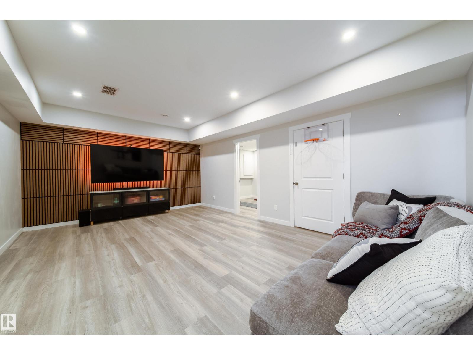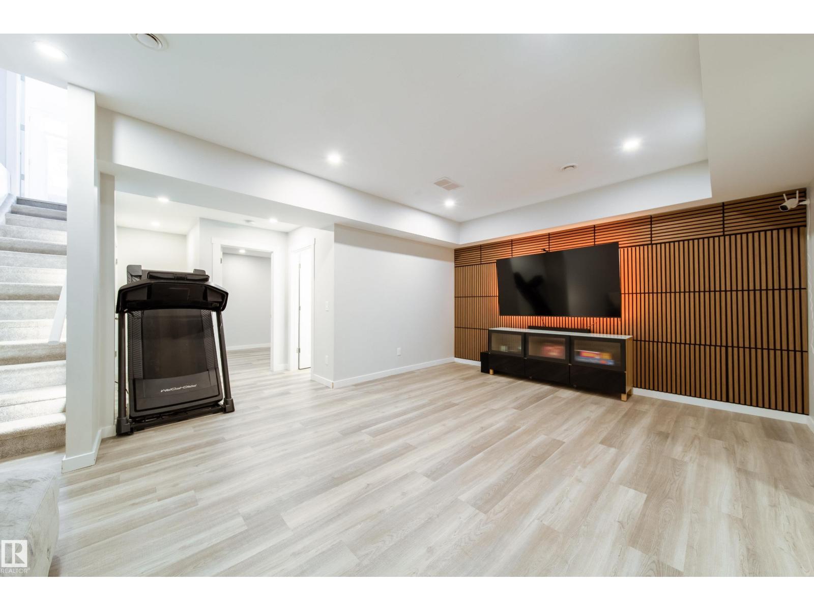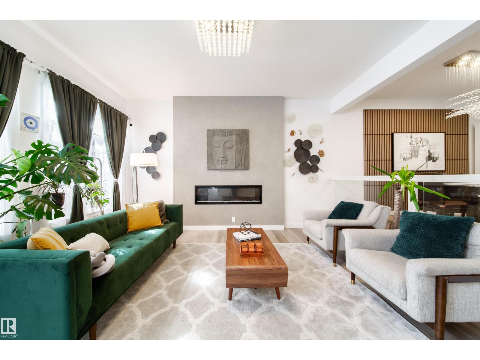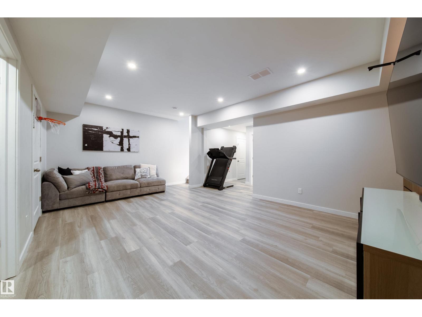Welcome to this exceptional Secord home offering over 2,140 sq.ft. plus a fully finished basement—where thoughtful design meets everyday comfort. Soaring 9’ ceilings on the main and basement levels create a bright, open feel, while the expansive living room with feature wall & fireplace invites you to relax and gather. The chef-inspired kitchen features quartz countertops, gas stove with hood fan & a large pantry—perfect for entertaining. Upstairs offers a spacious bonus room, 2 generous bedrooms, a 5-pc bath with double vanity & convenient laundry. The primary retreat includes a walk-in closet & spa-like 5-pc ensuite. The fully finished basement—with separate entry—adds flexibility with a bedroom, ensuite, den & large rec room. Enjoy a sunny south-facing yard with full-width deck & gazebo. Complete with A/C, solar panels for long-term savings, glass railings, high-efficiency furnace, HWT & 8’ garage door. Steps to a K–9 school, parks, rec centre & shopping. Quick access to Anthony Henday & Whitemud. (id:63190)