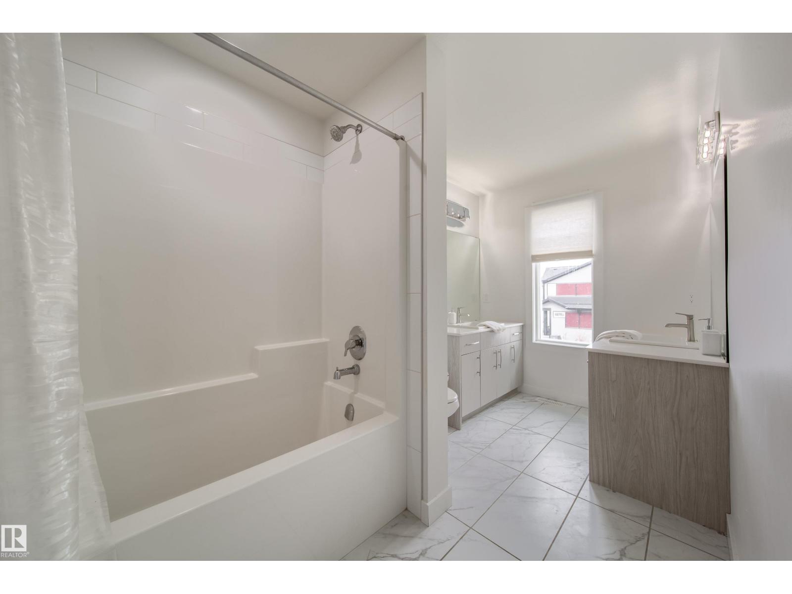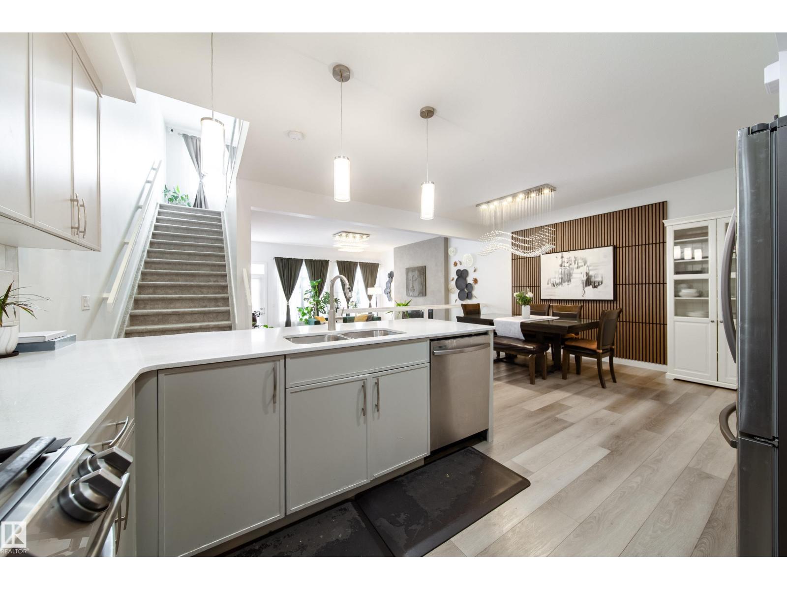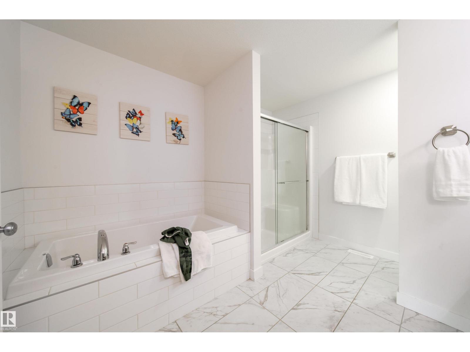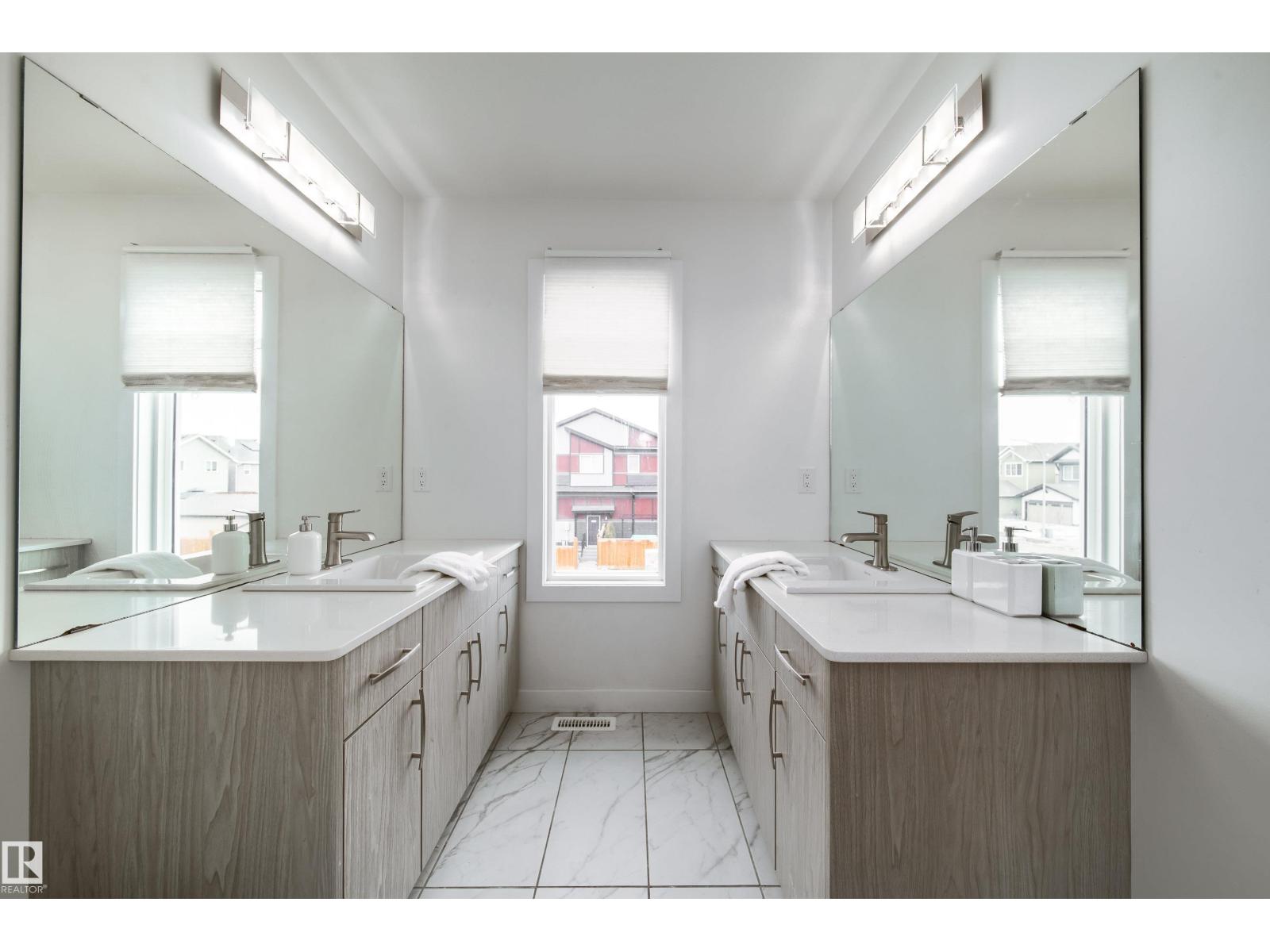Welcome to this exceptional Secord home offering over 2,140 sq.ft. plus a fully finished basement—where thoughtful design meets everyday comfort. Soaring 9’ ceilings on the main and basement levels create a bright, open feel, while the expansive living room with feature wall & fireplace invites you to relax and gather. The chef-inspired kitchen features quartz countertops, gas stove with hood fan & a large pantry—perfect for entertaining. Upstairs offers a spacious bonus room, 2 generous bedrooms, a 5-pc bath with double vanity & convenient laundry. The primary retreat includes a walk-in closet & spa-like 5-pc ensuite. The fully finished basement—with separate entry—adds flexibility with a bedroom, ensuite, den & large rec room. Enjoy a sunny south-facing yard with full-width deck & gazebo. Complete with A/C, solar panels for long-term savings, glass railings, high-efficiency furnace, HWT & 8’ garage door. Steps to a K–9 school, parks, rec centre & shopping. Quick access to Anthony Henday & Whitemud. (id:63190)