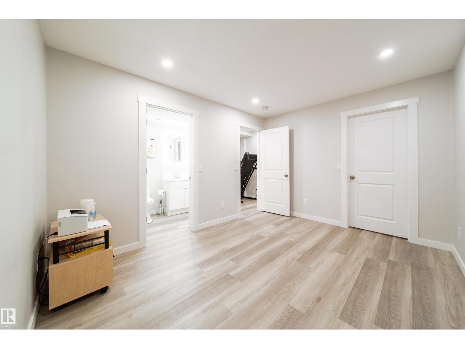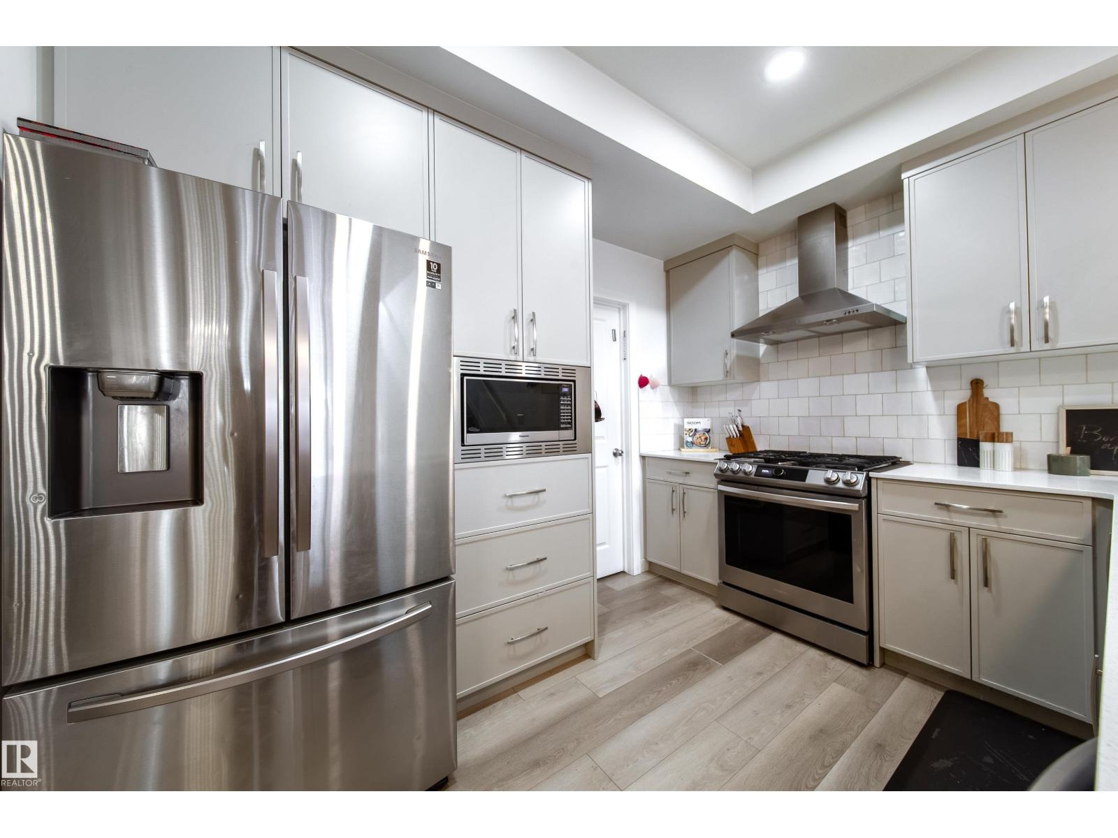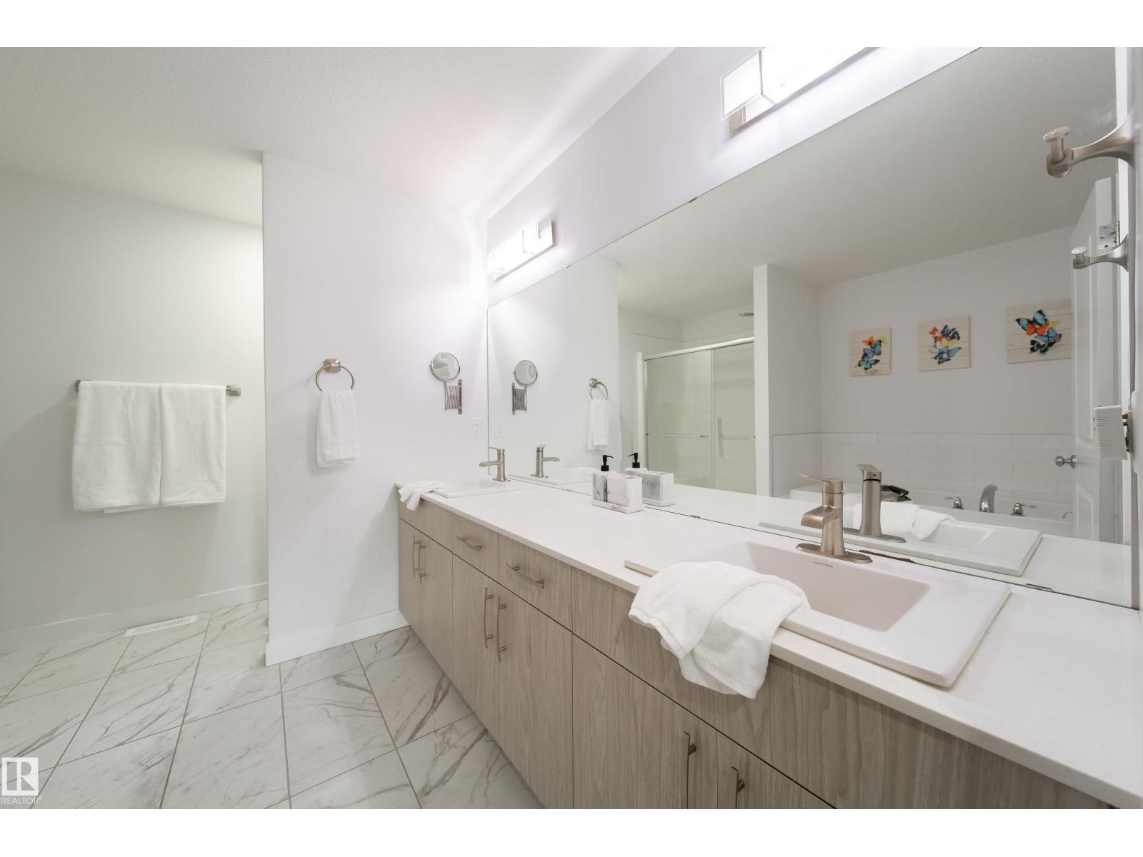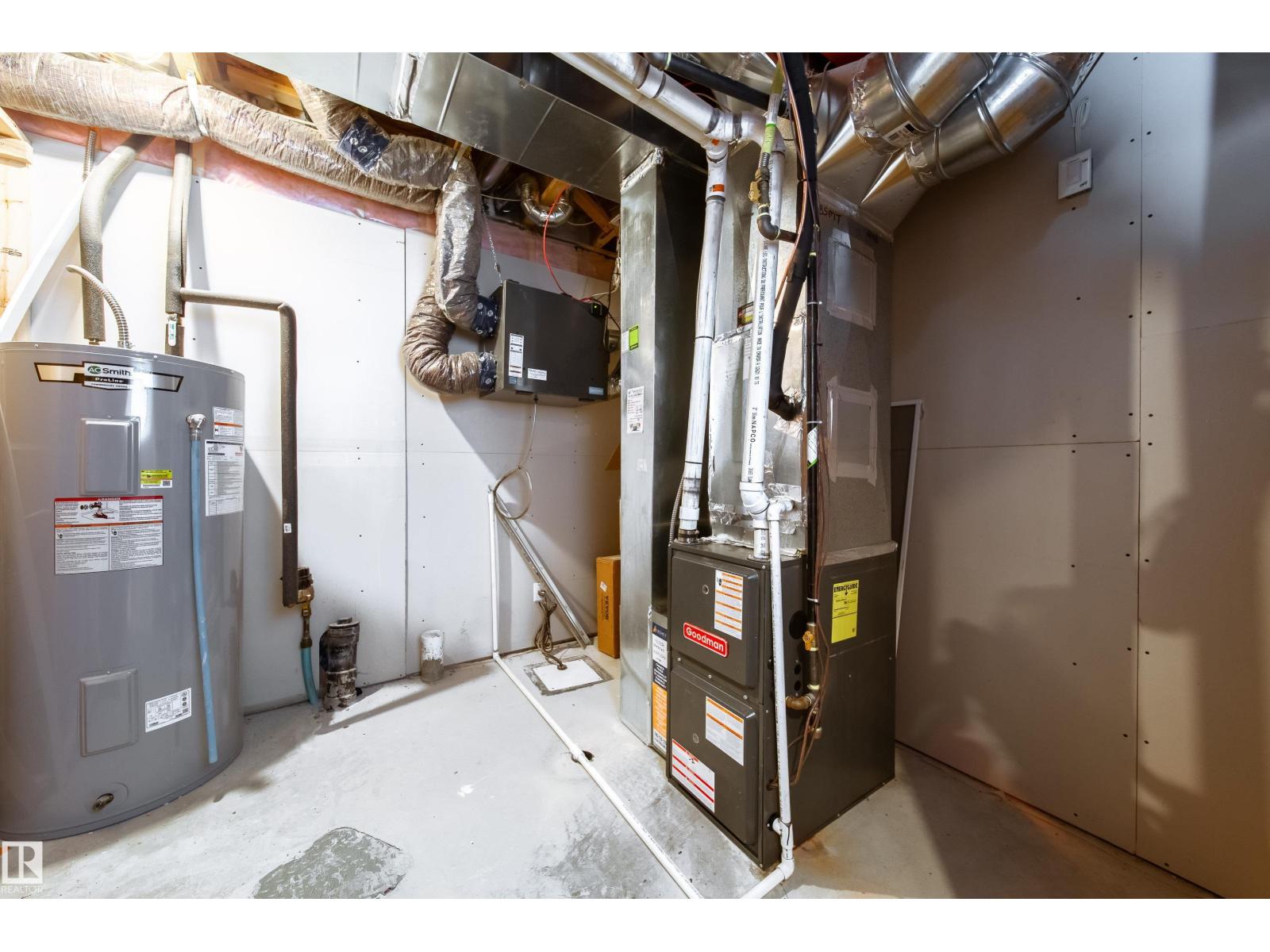 Welcome to this exceptional Secord home offering over 2,140 sq.ft. plus a fully finished basement—where thoughtful design meets everyday comfort. Soaring 9’ ceilings on the main and basement levels create a bright, open feel, while the expansive living room with feature wall & fireplace invites you to relax and gather. The chef-inspired kitchen features quartz countertops, gas stove with hood fan & a large pantry—perfect for entertaining. Upstairs offers a spacious bonus room, 2 generous bedrooms, a 5-pc bath with double vanity & convenient laundry. The primary retreat includes a walk-in closet & spa-like 5-pc ensuite. The fully finished basement—with separate entry—adds flexibility with a bedroom, ensuite, den & large rec room. Enjoy a sunny south-facing yard with full-width deck & gazebo. Complete with A/C, solar panels for long-term savings, glass railings, high-efficiency furnace, HWT & 8’ garage door. Steps to a K–9 school, parks, rec centre & shopping. Quick access to Anthony Henday & Whitemud. (id:63190)