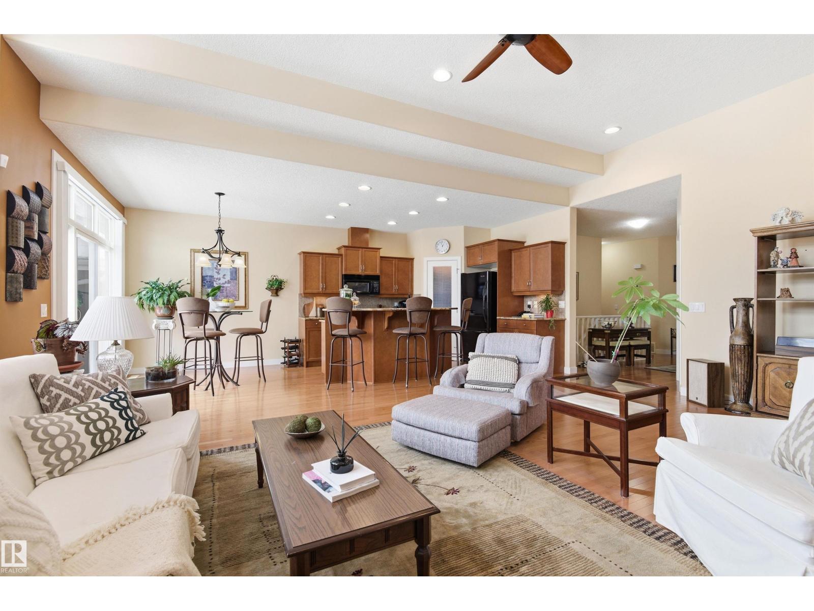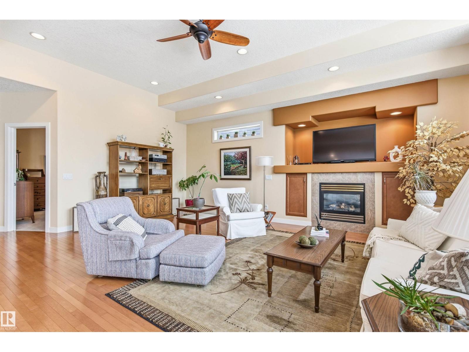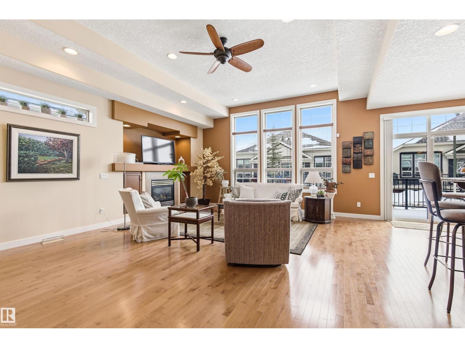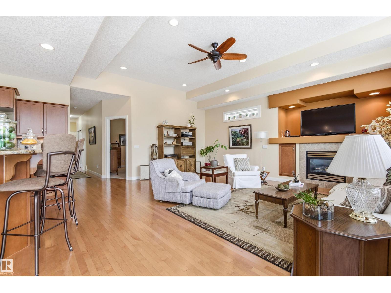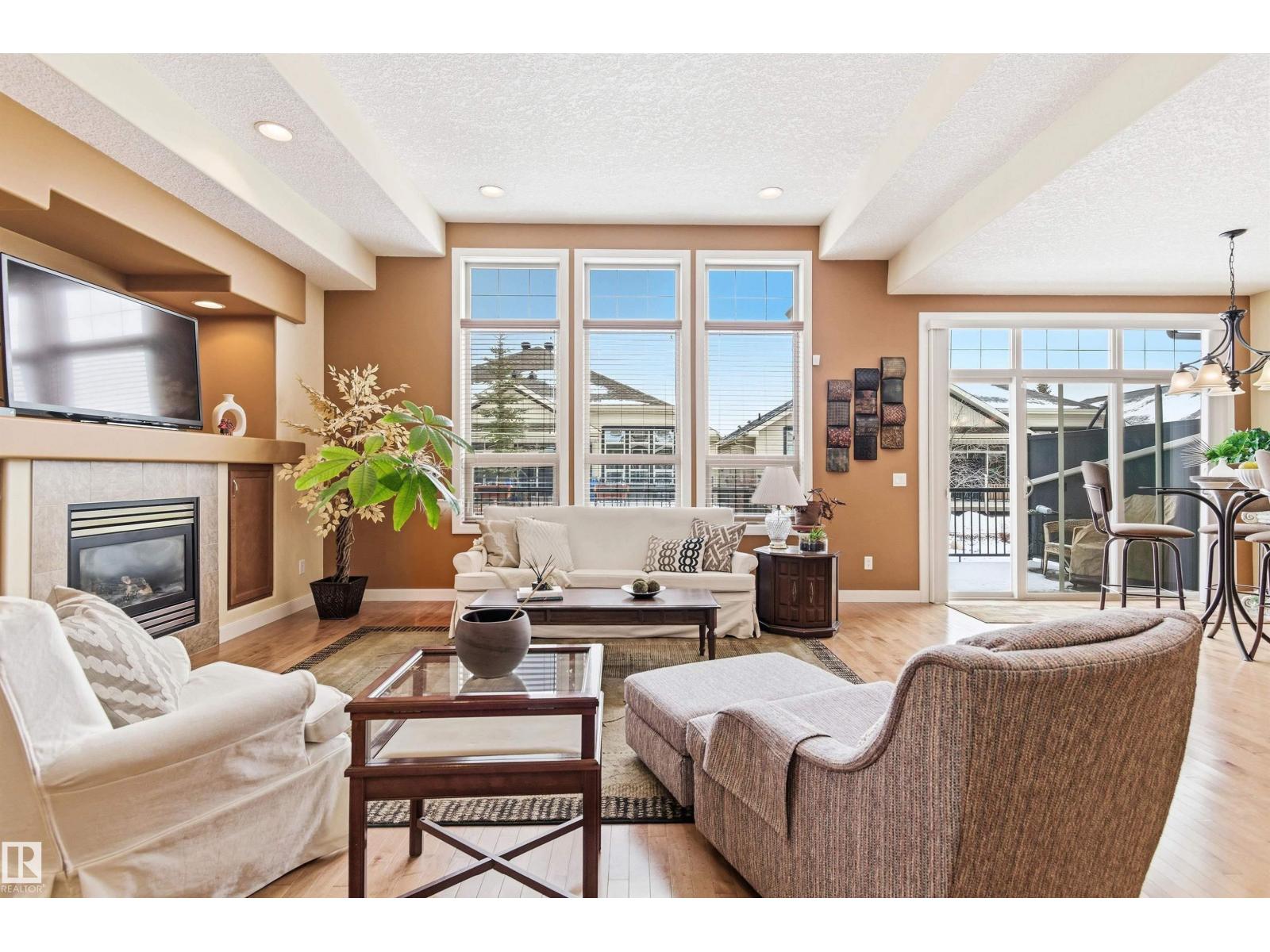 Beautiful bungalow-style condo in a quiet, low-maintenance complex designed for easy living. Offering over 2,200 sq ft of living space, this executive home features 11 ft ceilings, floor-to-ceiling windows, and a bright open-concept layout. The spacious kitchen showcases granite countertops and updated appliances, flowing seamlessly into the living and dining areas—perfect for entertaining. The main floor includes a large primary suite, additional bedroom or office, and convenient laundry. The fully finished basement adds incredible flexibility with a rec room, games area, wet bar, double-sided fireplace, guest bedroom, and full bath. Recent upgrades include a newer roof and air conditioning for year-round comfort. Complete with a double attached garage and located near walking trails, amenities, and transit—this is low-maintenance luxury living at its finest. (id:63190)