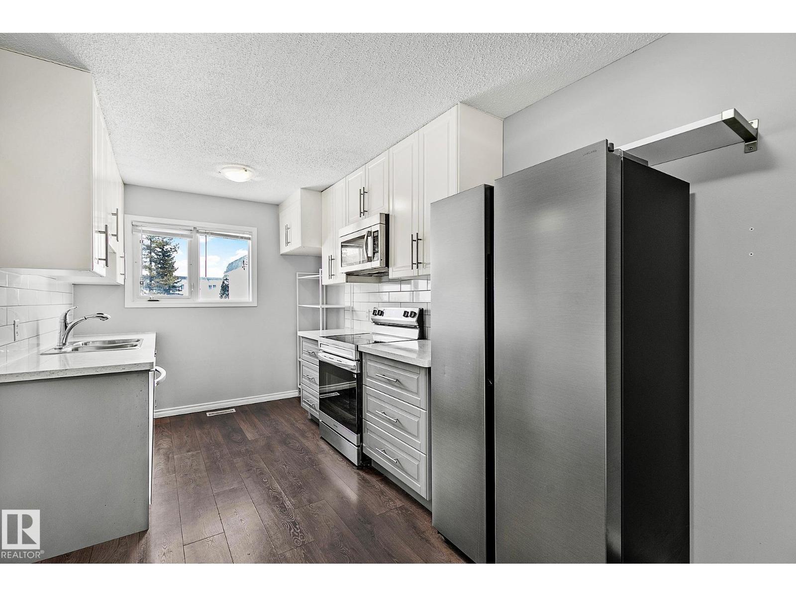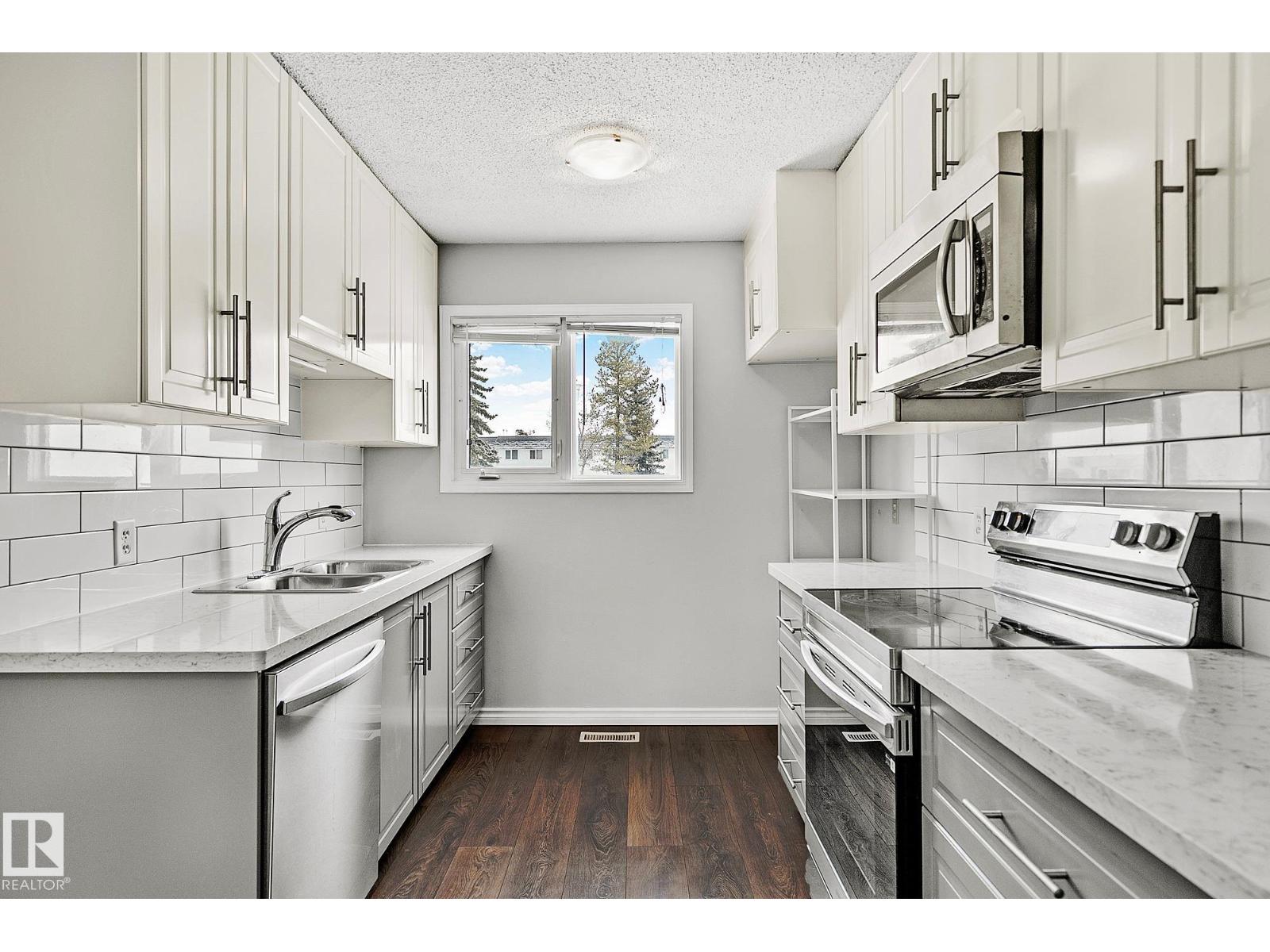 CUTE AS A BUTTON! IDEAL LOCATION! OVERLOOKING GREENSPACE! This renovated 3+1 bedroom 2 storey townhouse is a place you will be proud to call home! The contemporary galley kitchen has modern cabinetry spanning to the ceiling, quartz counters, subway style backsplash & an adjacent eating area. Generous size living room with large picture window & 2pce powder room complete this level. Upstairs offers 3 bedrooms including a spacious primary with double closets plus an updated 4pce main bath. Finished basement has a fourth bedroom, recreation space, laundry room & storage. Bright south facing entrance has tons of natural light & built-in cabinetry for more storage. Private fully fenced backyard has low maintenance vinyl fencing. Other upgrades include furnace, water tank, windows, roofing, durable laminate flooring, paint, carpet & appliances. Well managed complex with reasonable condo fees. Close to ravine and trails! Quick access to Whitemud, Henday & Calgary Trail. MOVE IN! (id:63190)
