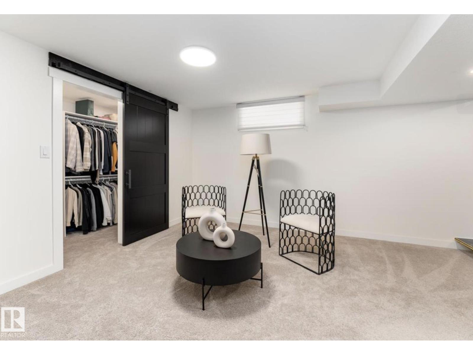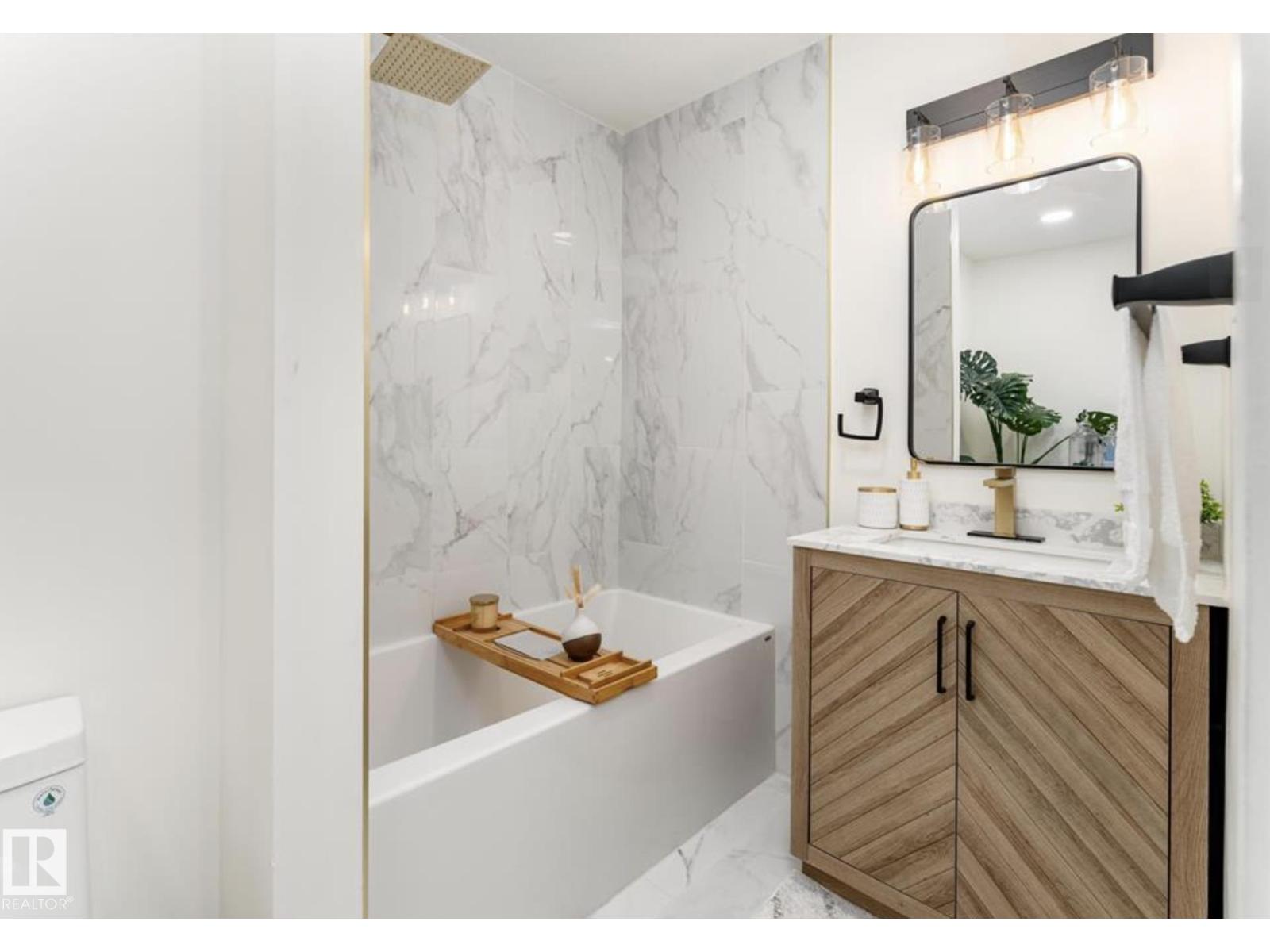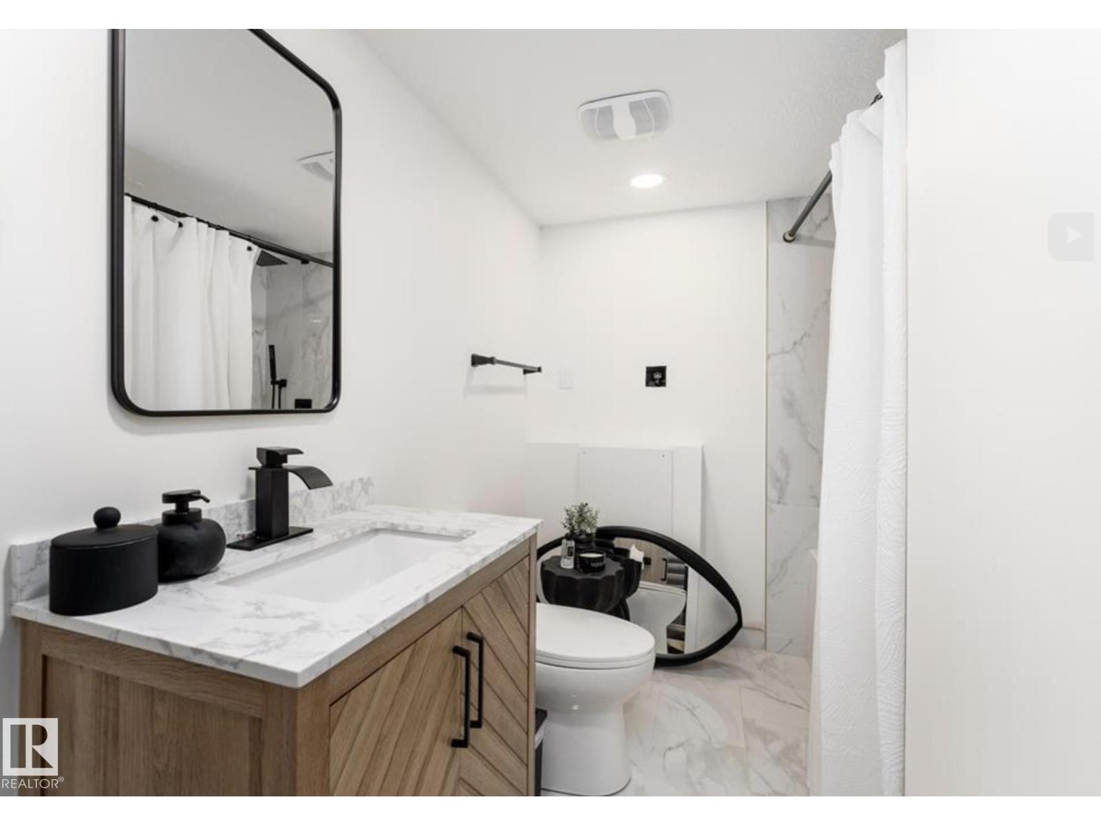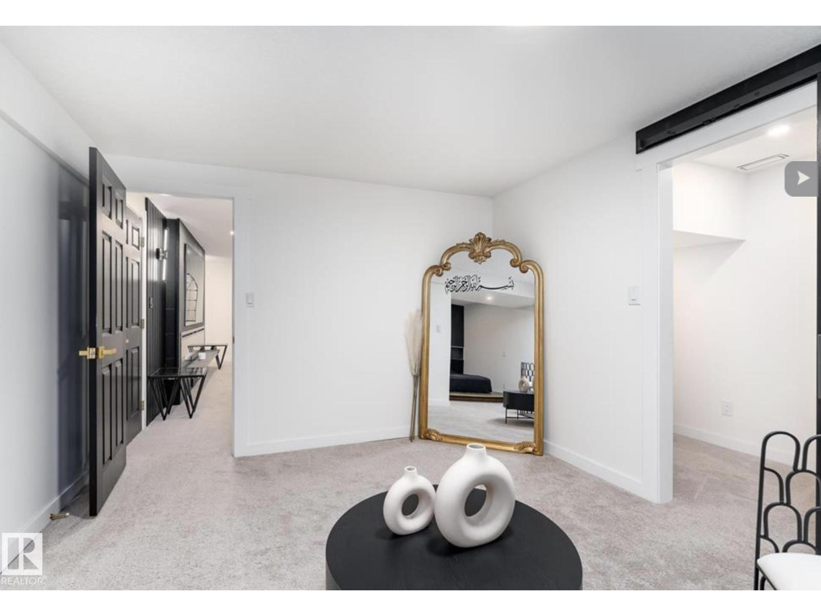 Discover the newest standout in Baturyn... a home that redefines modern living in an established community. This isn't just a renovation; it’s a contemporary masterpiece featuring a striking designer porcelain feature wall and sleek glass railings that immediately set a sophisticated tone. The chef-inspired kitchen is the heart of the main floor, equipped with premium appliances and flowing seamlessly into a sunlit dining space designed for hosting. The main floor offers three spacious bedrooms, including a primary retreat with a chic private ensuite. The wow factor continues in the fully finished basement, which features a custom fireplace media wall and a layout designed for extended family or guests. The lower level includes two additional bedrooms, one of which is a true VIP retreat with its own private lounge and ensuite bath. Situated on a commanding corner lot with an oversized double garage and expansive deck, this home offers the perfect blend of luxury finishes and functional family living. (id:63190)