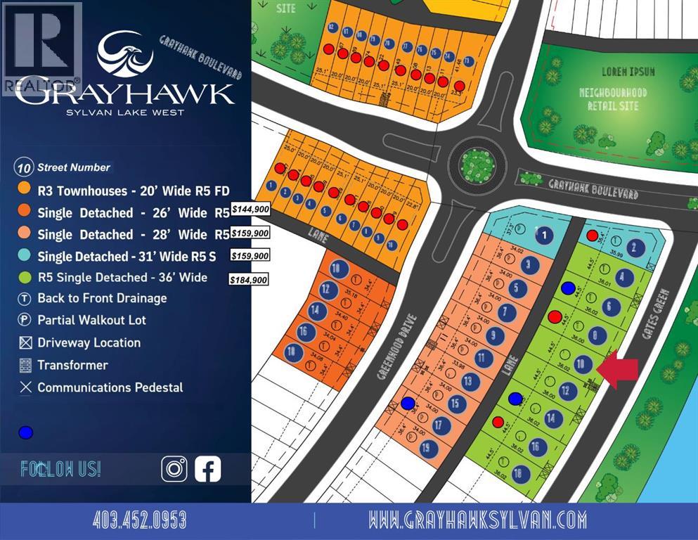 Welcome to Grayhawk—Sylvan Lake’s newest thoughtfully designed community, where flexibility, lifestyle, and location come together to create the perfect place to call home.Here, you have the freedom to build your dream your way. Purchase a lot directly through Grayhawk and bring your own preferred builder, or simplify the process by partnering with one of our showhome exclusive preferred builders to secure your lot and select from a variety of expertly designed home plans tailored to your lifestyle.Grayhawk has been carefully planned to appeal to a wide range of homeowners—from growing families to retirees, downsizers, and those relocating to be closer to children and grandchildren. Many buyers are embracing the opportunity to transition from acreage living to a more manageable, low-maintenance home without sacrificing comfort, community, or quality of life.This vibrant neighbourhood offers a dynamic mix of housing options including single-family homes, semi-detached properties, and townhomes—ensuring there’s something for every stage of life. Families will appreciate the future elementary school site, nearby Pogadl Park Spray Park and Playground, and the exciting addition of a playground and off-leash dog park coming in 2026. Meanwhile, retirees and downsizers will value the peaceful surroundings, walkability, and close-knit community feel.Enjoy the beauty of a landscaped storm pond, proximity to the golf course, and the convenience of a future neighbourhood retail centre with local shops and services just steps away. Best of all, you’re only minutes from Sylvan Lake’s vibrant town centre and waterfront—offering year-round recreation, dining, and entertainment.Whether you're starting fresh, simplifying your lifestyle, or looking to stay connected to family while enjoying a lower cost of living, Grayhawk offers a rare opportunity to build not just a home—but the life you’ve been waiting for. (id:63190)