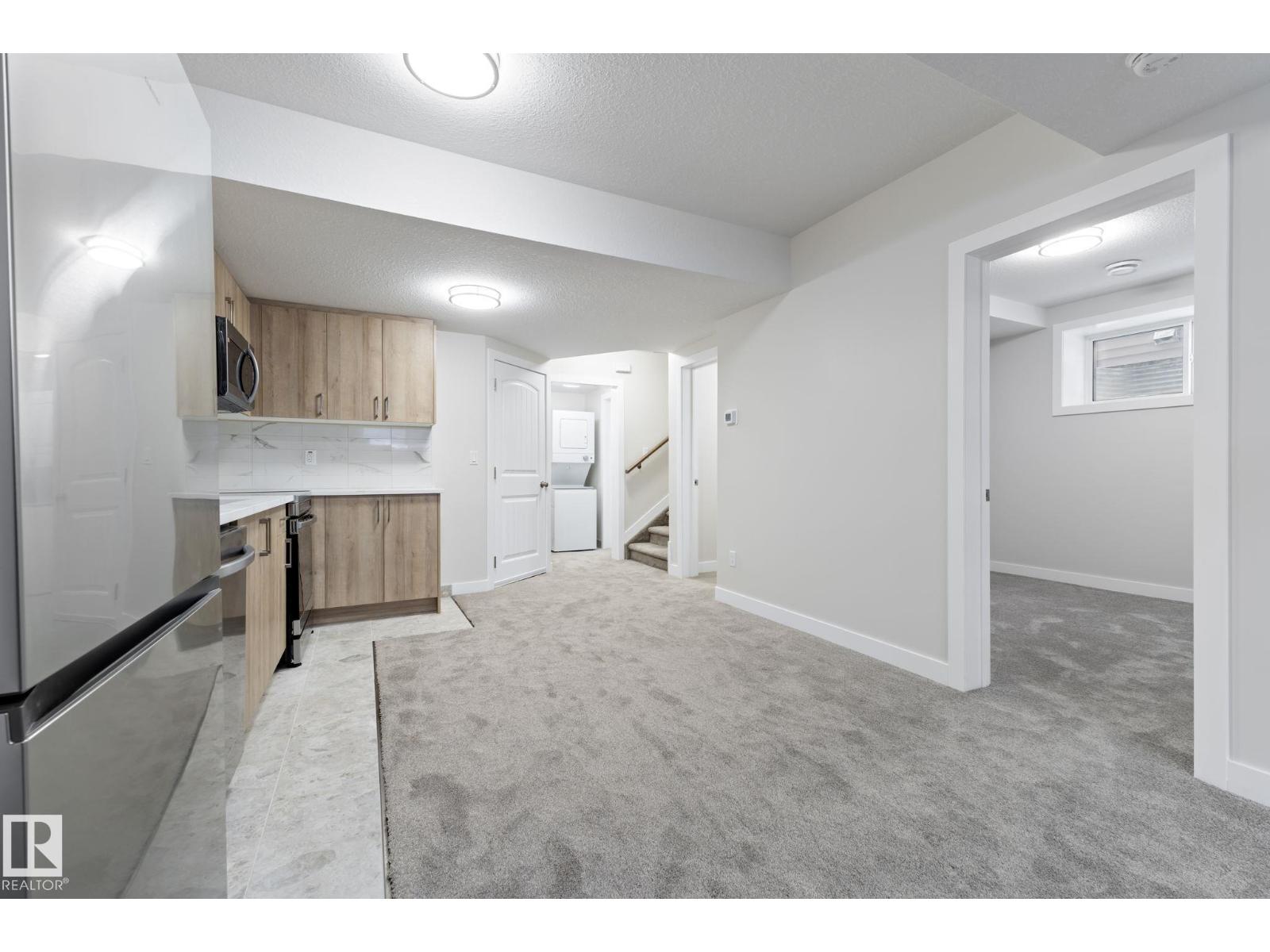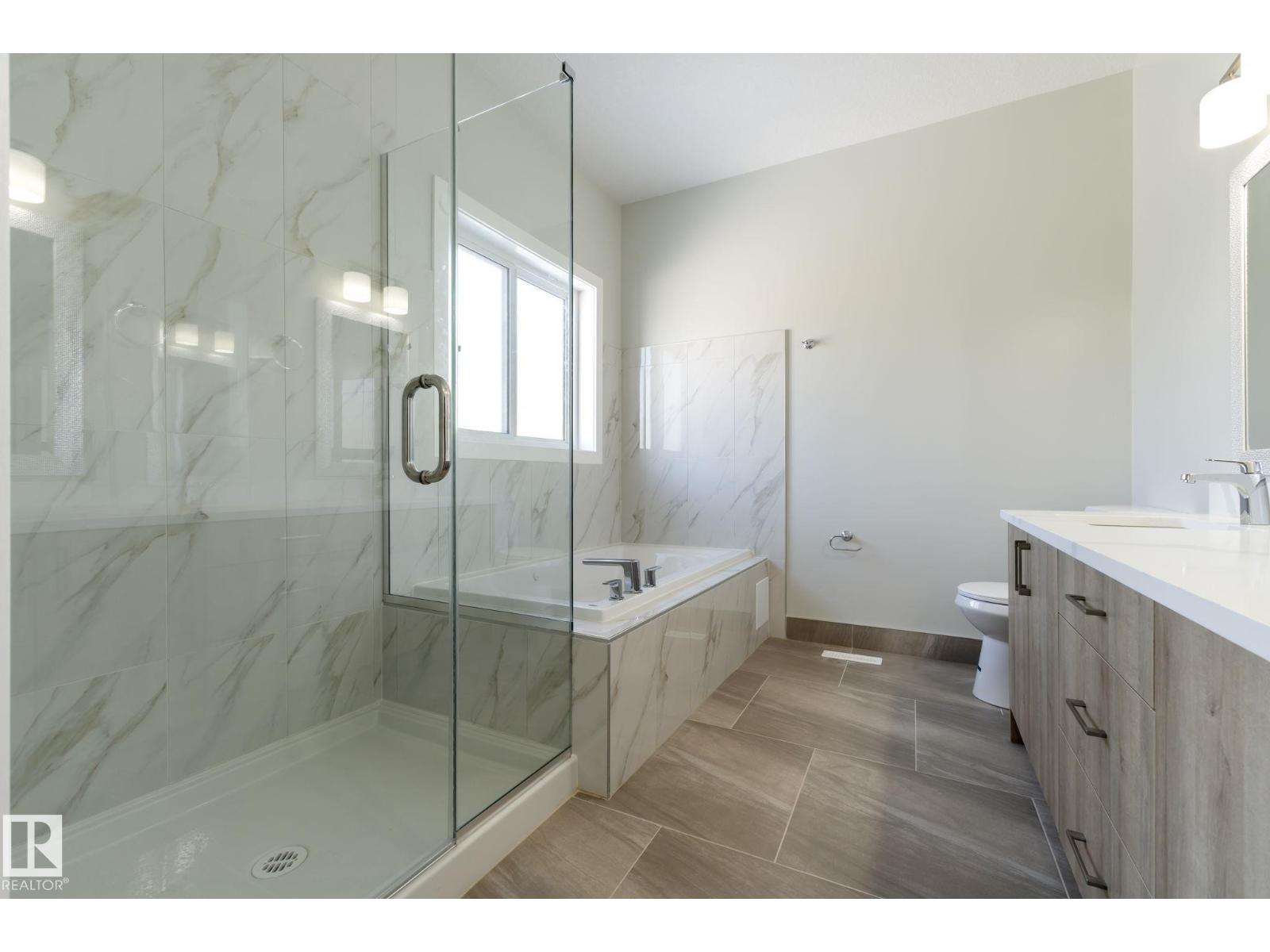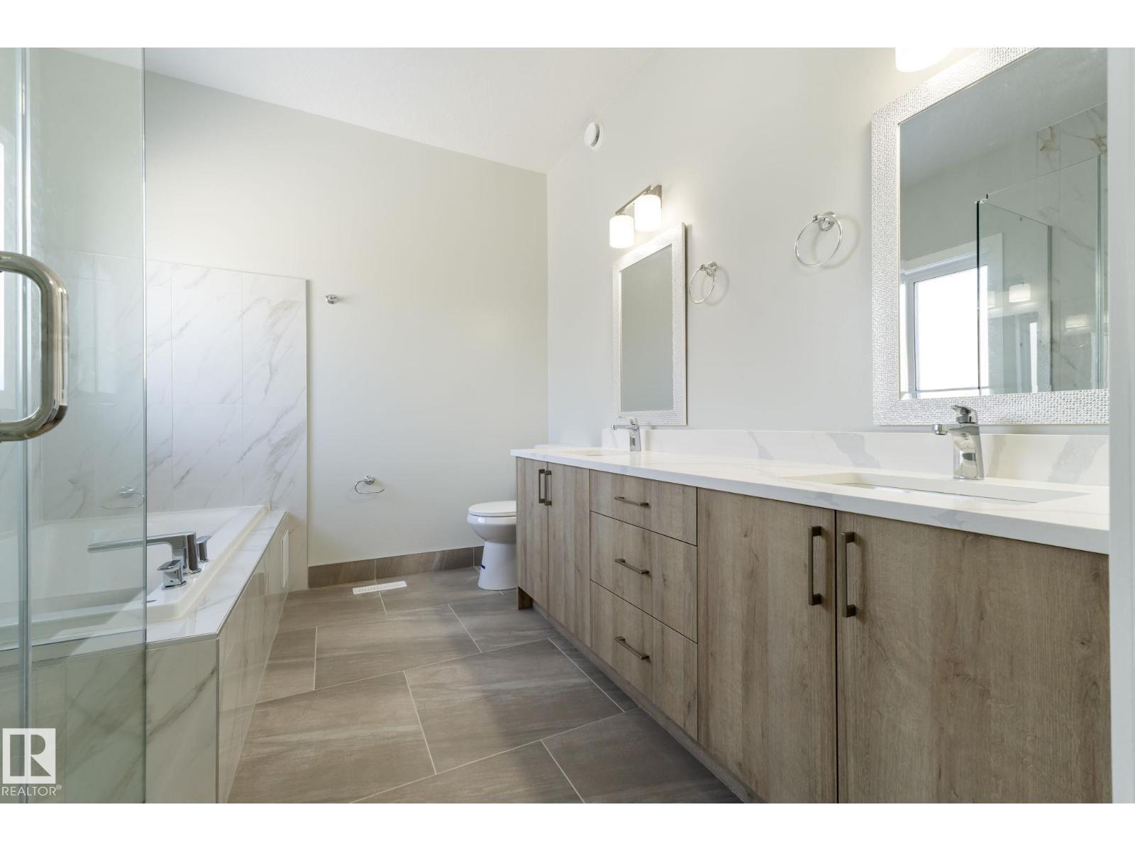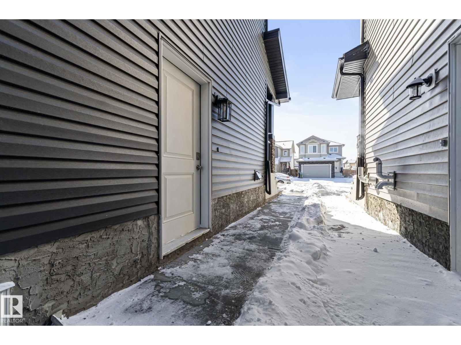 LEGAL SUITE! BRAND NEW! Class w/ distinction in McConachie. STUNNING curb appeal w/ contrasting siding & STONE accents. Upon entry you are welcomed to wide plank HARDWOOD flooring & a BRIGHT, open, SOARING CEILING. A RARE full bath & ample bedroom w/ walk-in closet w/ a door for a faux ensuite experience is exquisite. Cook in the contrasting ISLAND KITCHEN w/ QUARTZ counters, HERRING BONE backsplash, stainless appliances, & CORNER PANTRY. Eat in the GENEROUS dining area w/ access to the DECK or entertain in the living room w/ a vertical SLATE FEATURE WALL & FIREPLACE for that cozy feel. Upper floor has a generous den, 3 family friendly bedrooms w/ walk-in closets, a full bath plus a LUXURY 6 piece ENSUITE in the Primary to relax in at days end. BASE-MINT w/ SEPARATE ENTRY! No compromises, 2 bedrooms, insuite laundry, a living room & lovely kitchen w/ quartz & stainless appliances. Yard is landscaped & FULLY FENCED. Tiled floors & quartz in all baths. This builder is a craftsman! See it, you'll LOVE it! (id:63190)
