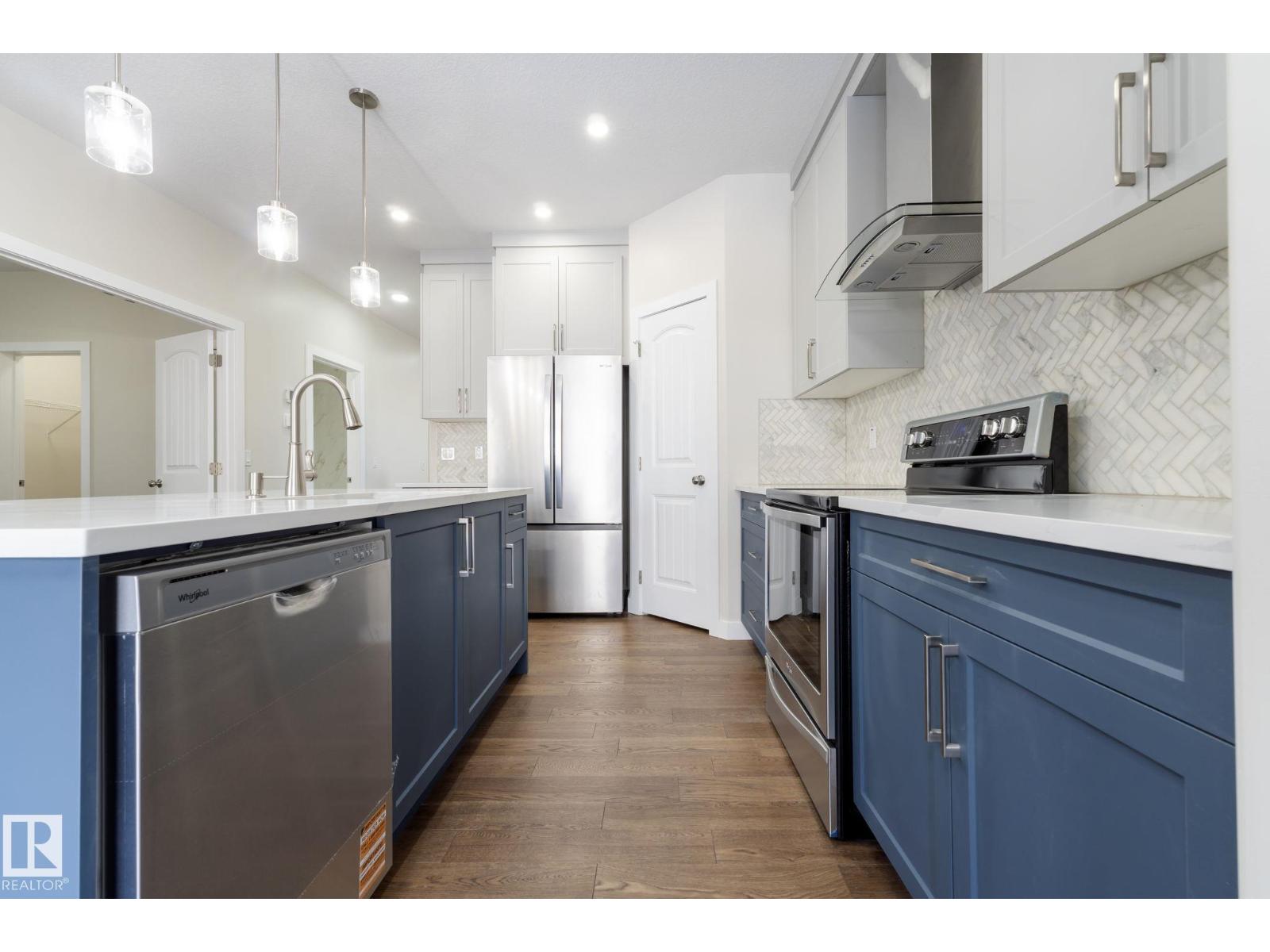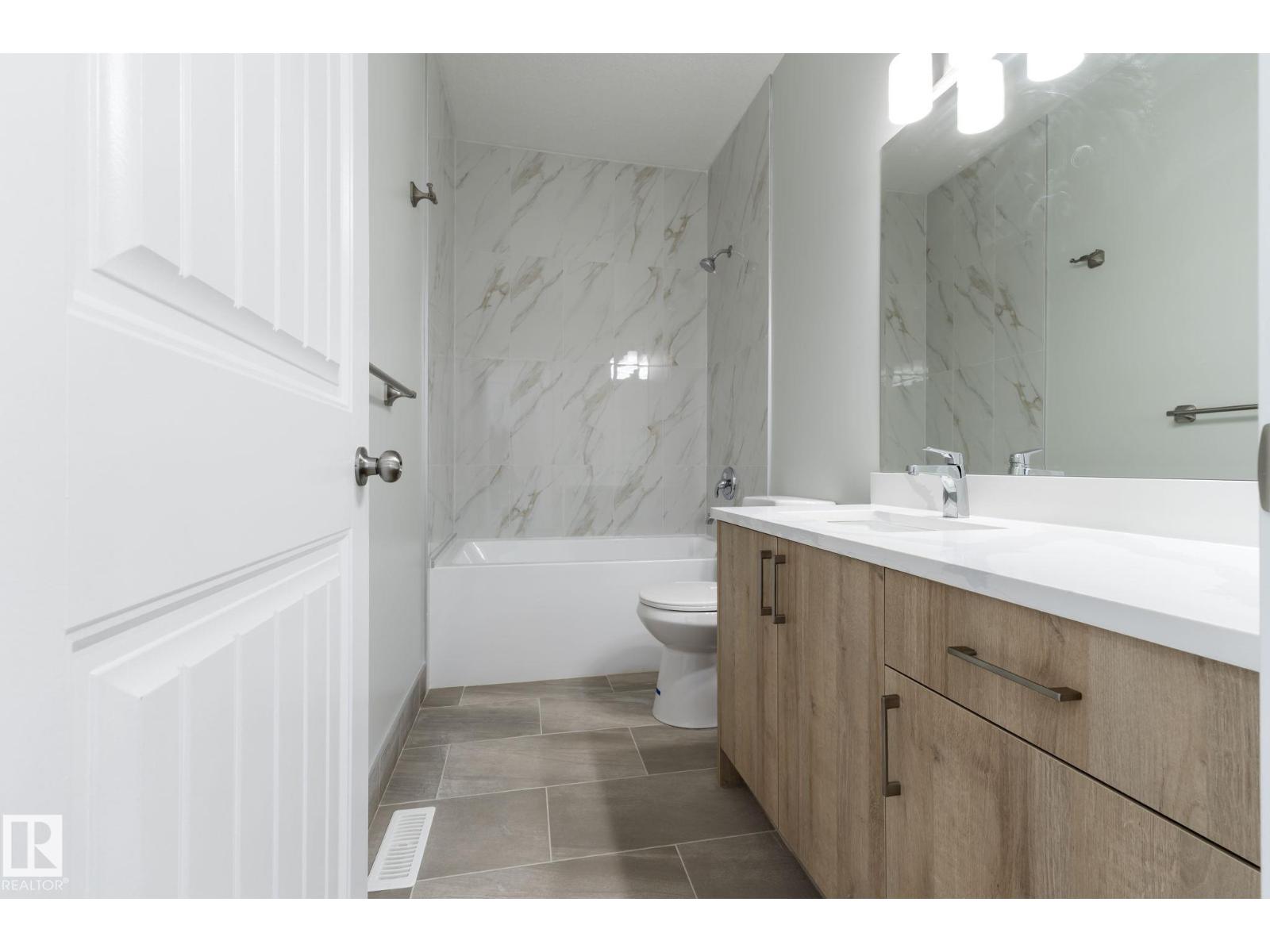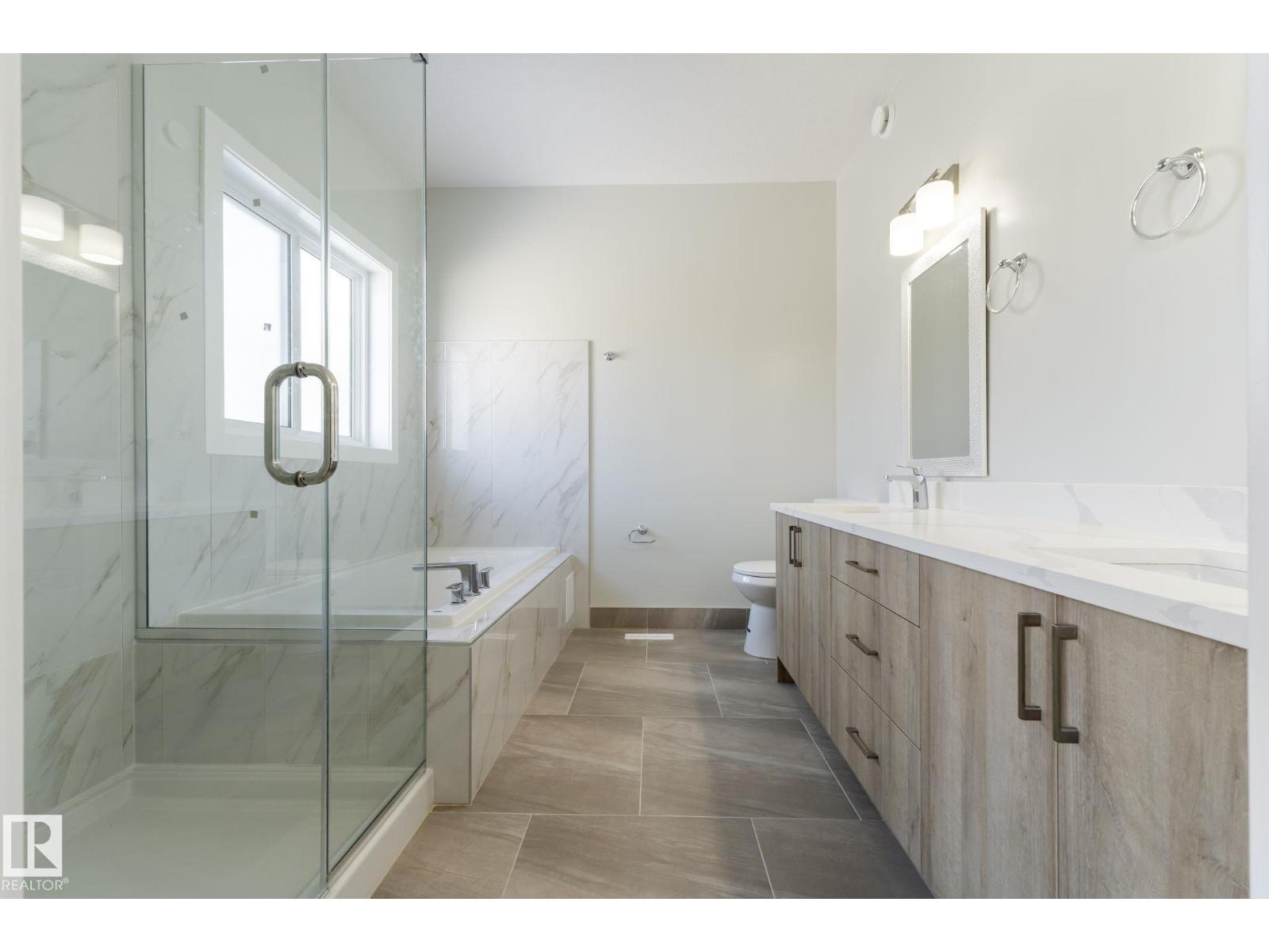 LEGAL SUITE! BRAND NEW! Class w/ distinction in McConachie. STUNNING curb appeal w/ contrasting siding & STONE accents. Upon entry you are welcomed to wide plank HARDWOOD flooring & a BRIGHT, open, SOARING CEILING. A RARE full bath & ample bedroom w/ walk-in closet w/ a door for a faux ensuite experience is exquisite. Cook in the contrasting ISLAND KITCHEN w/ QUARTZ counters, HERRING BONE backsplash, stainless appliances, & CORNER PANTRY. Eat in the GENEROUS dining area w/ access to the DECK or entertain in the living room w/ a vertical SLATE FEATURE WALL & FIREPLACE for that cozy feel. Upper floor has a generous den, 3 family friendly bedrooms w/ walk-in closets, a full bath plus a LUXURY 6 piece ENSUITE in the Primary to relax in at days end. BASE-MINT w/ SEPARATE ENTRY! No compromises, 2 bedrooms, insuite laundry, a living room & lovely kitchen w/ quartz & stainless appliances. Yard is landscaped & FULLY FENCED. Tiled floors & quartz in all baths. This builder is a craftsman! See it, you'll LOVE it! (id:63190)