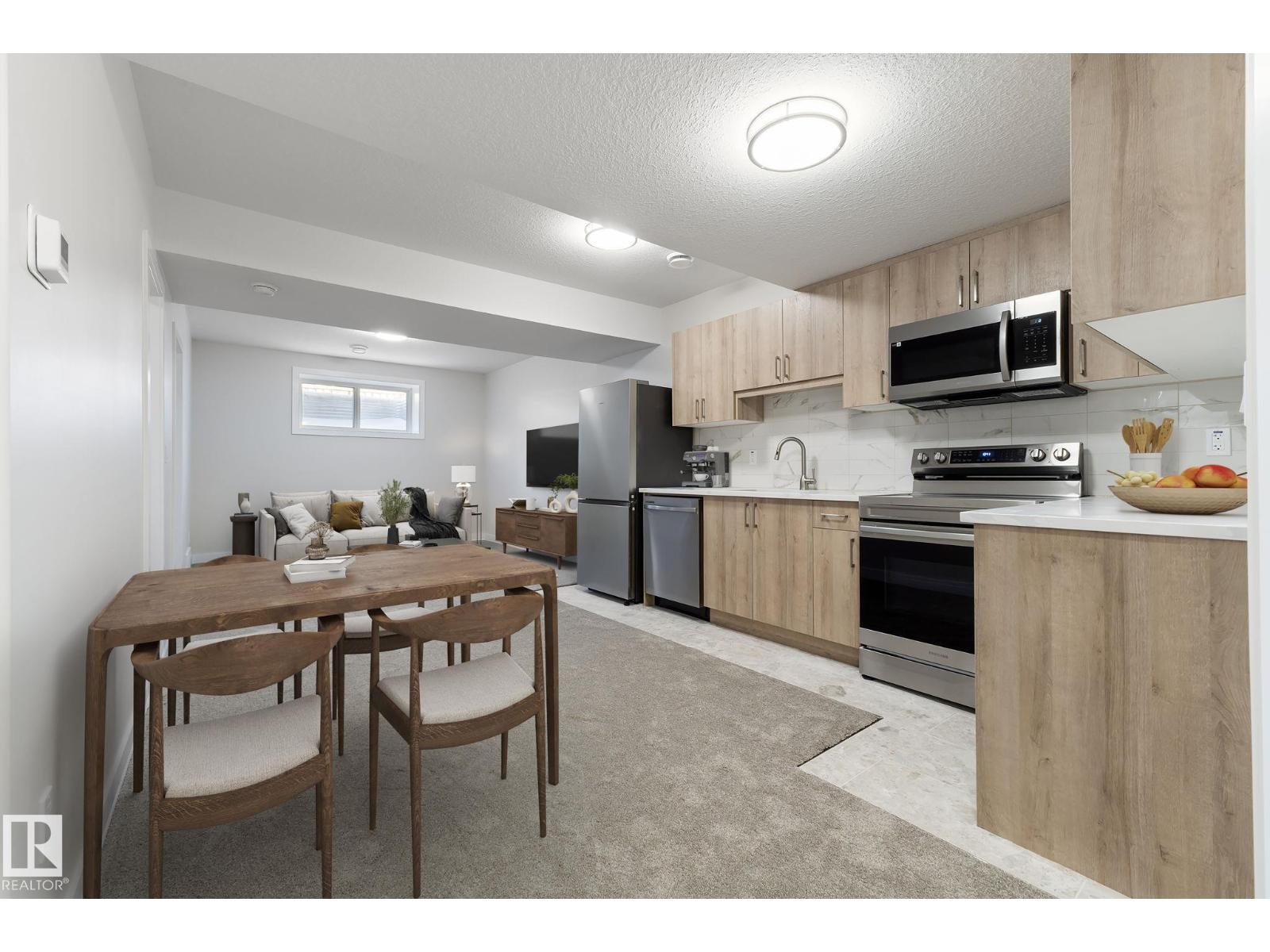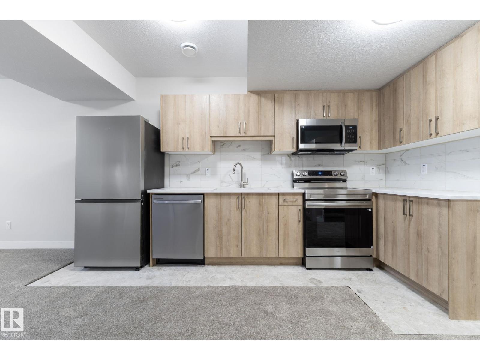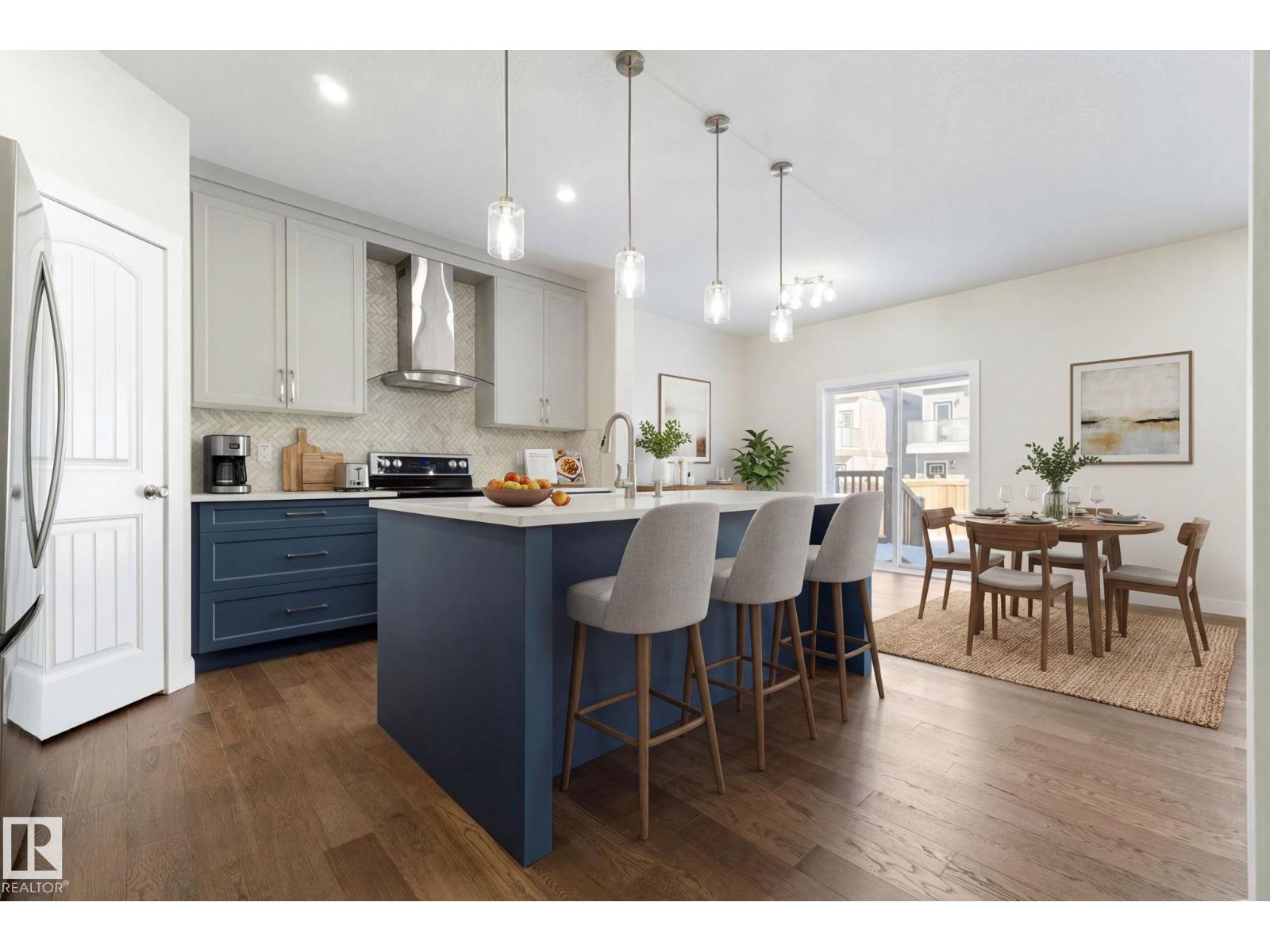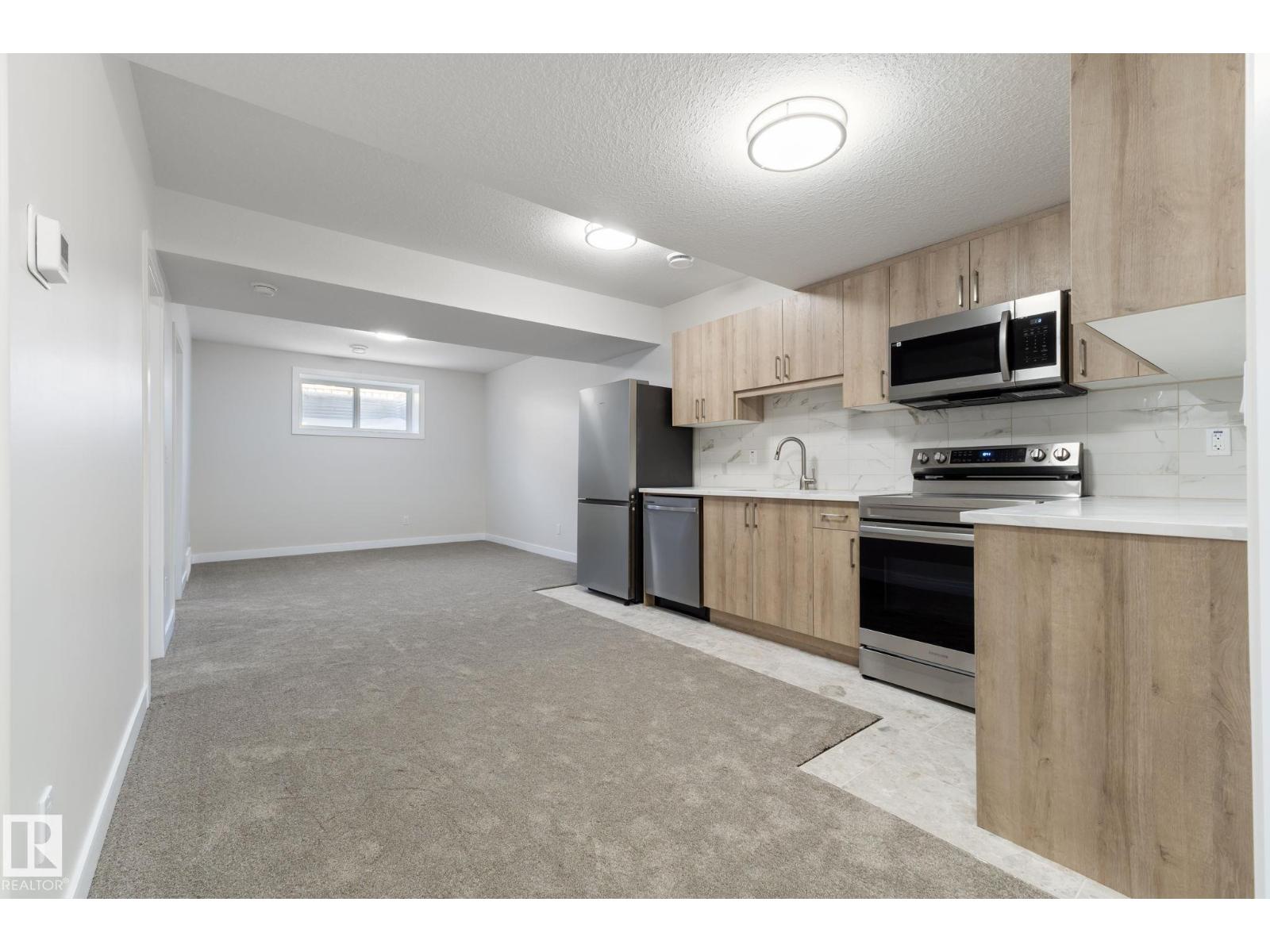 LEGAL SUITE! BRAND NEW! Class w/ distinction in McConachie. STUNNING curb appeal w/ contrasting siding & STONE accents. Upon entry you are welcomed to wide plank HARDWOOD flooring & a BRIGHT, open, SOARING CEILING. A RARE full bath & ample bedroom w/ walk-in closet w/ a door for a faux ensuite experience is exquisite. Cook in the contrasting ISLAND KITCHEN w/ QUARTZ counters, HERRING BONE backsplash, stainless appliances, & CORNER PANTRY. Eat in the GENEROUS dining area w/ access to the DECK or entertain in the living room w/ a vertical SLATE FEATURE WALL & FIREPLACE for that cozy feel. Upper floor has a generous den, 3 family friendly bedrooms w/ walk-in closets, a full bath plus a LUXURY 6 piece ENSUITE in the Primary to relax in at days end. BASE-MINT w/ SEPARATE ENTRY! No compromises, 2 bedrooms, insuite laundry, a living room & lovely kitchen w/ quartz & stainless appliances. Yard is landscaped & FULLY FENCED. Tiled floors & quartz in all baths. This builder is a craftsman! See it, you'll LOVE it! (id:63190)