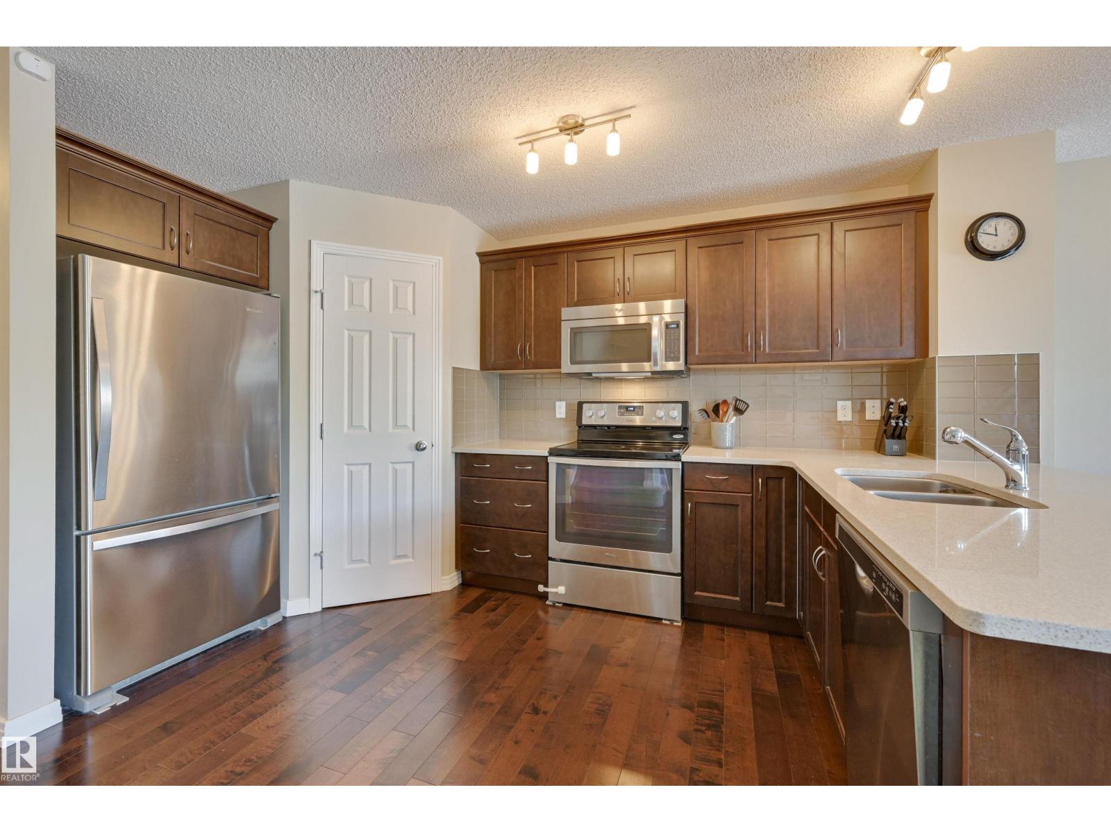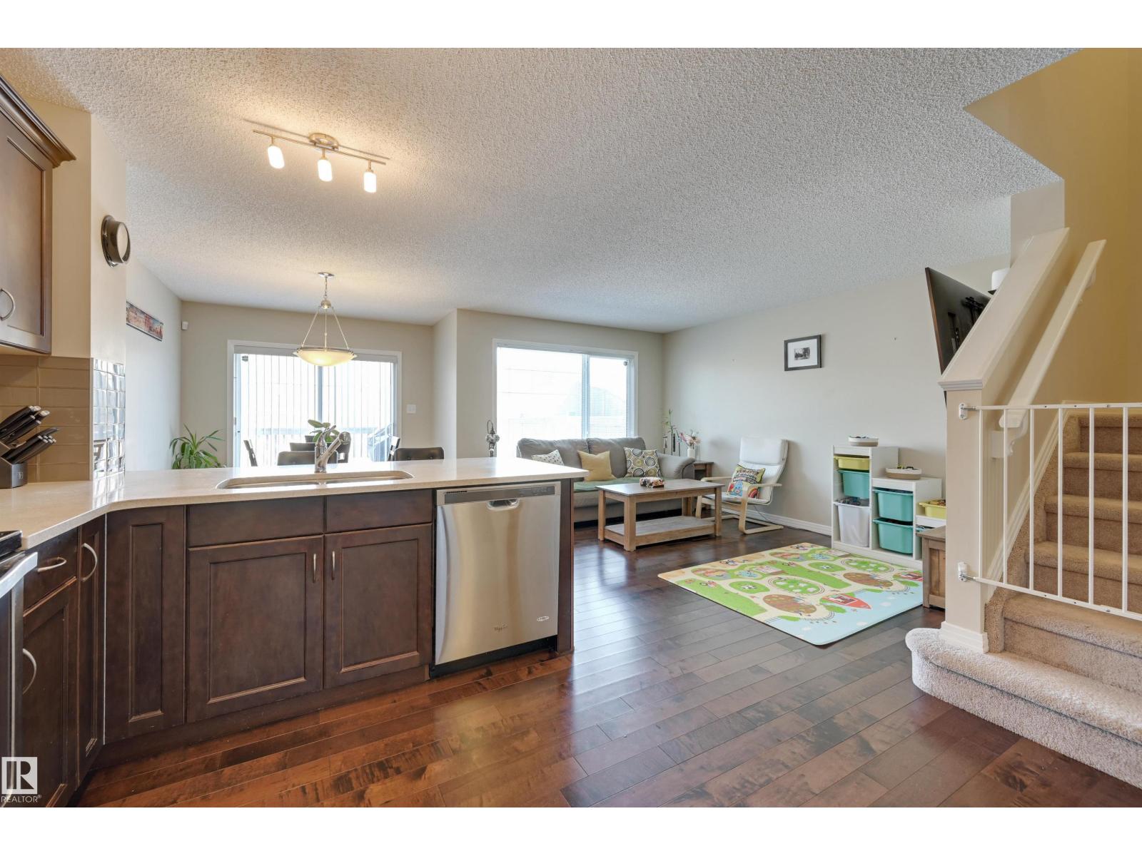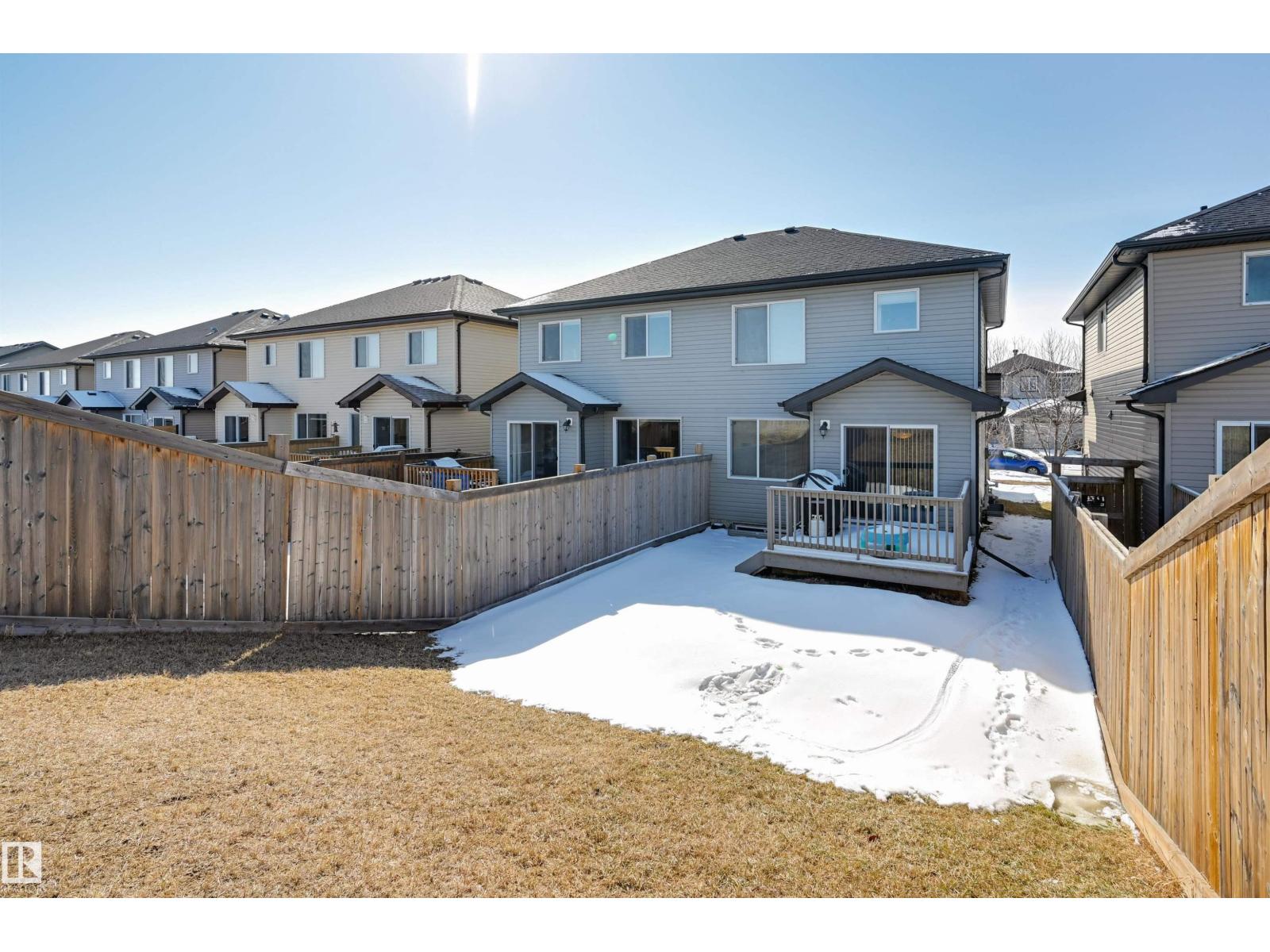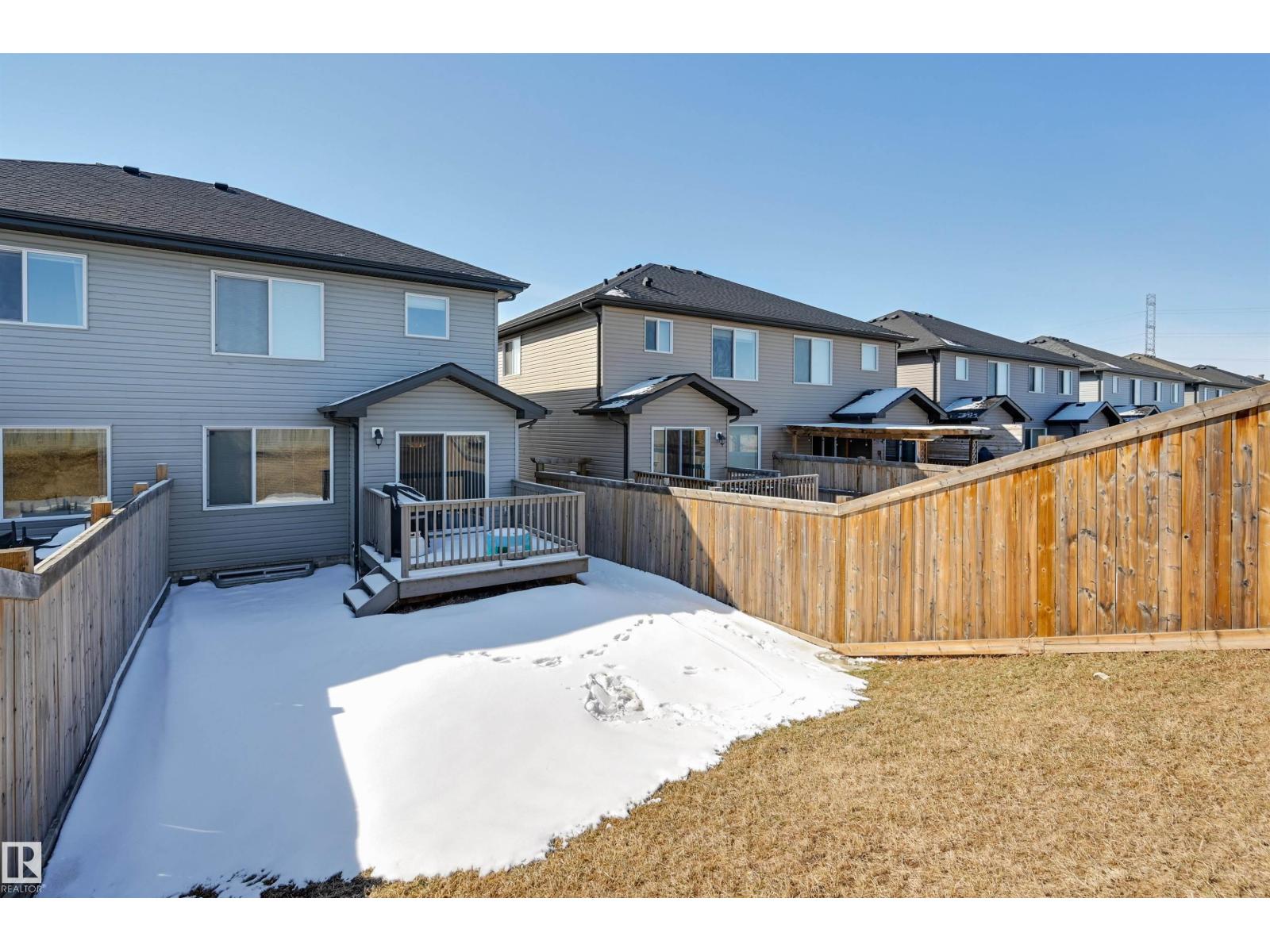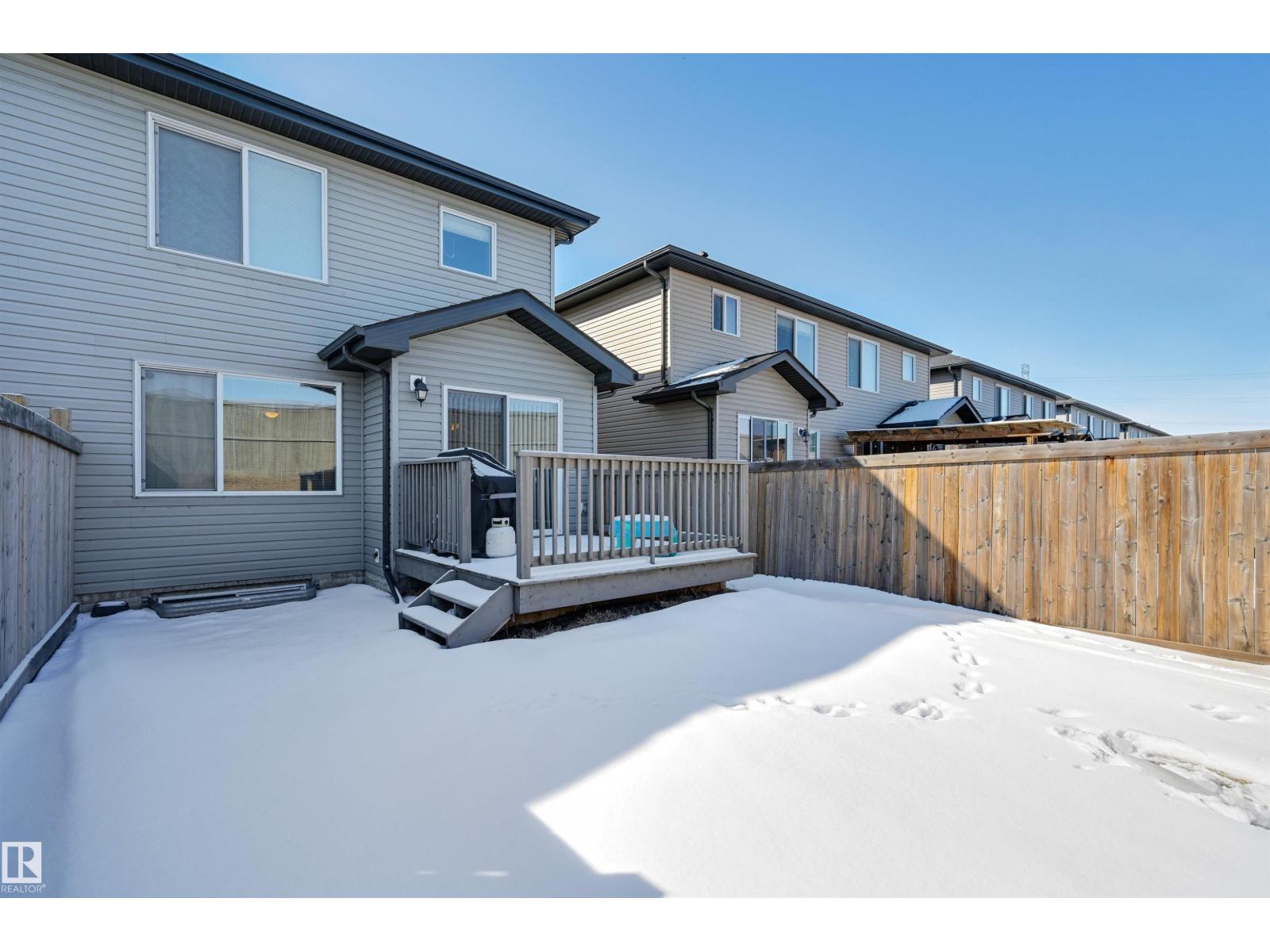 This 2-storey home in Fraser Vista offers 3 bedrooms, 2.5 baths, & over 1,400 sq ft of thoughtfully designed living space—ideal for families. Hardwood flooring welcomes you into the bright open-concept main floor, where the kitchen flows seamlessly into the living & dining areas. The kitchen features S/S appliances, ample solid maple cabinetry, quartz counter tops, a walk-in pantry, & breakfast bar for quick meals. Plus a dining nook with room for a family-size table & entertaining. Patio doors lead to a deck & overlook a fully fenced yard—perfect for summer fun & slip-and-slide season. A 2-piece bath & mudroom completes the main level. Upstairs you’ll find three generous bedrooms, a 4-piece bath, & a convenient laundry room. The primary suite includes a walk-in closet & private 3-piece ensuite. The full, open basement offers excellent storage or future development (roughed in plumbing). Silence shared wall & Single attached garage. Steps to Fraser Park, river valley trails, schools, transit, & shopping. (id:63190)