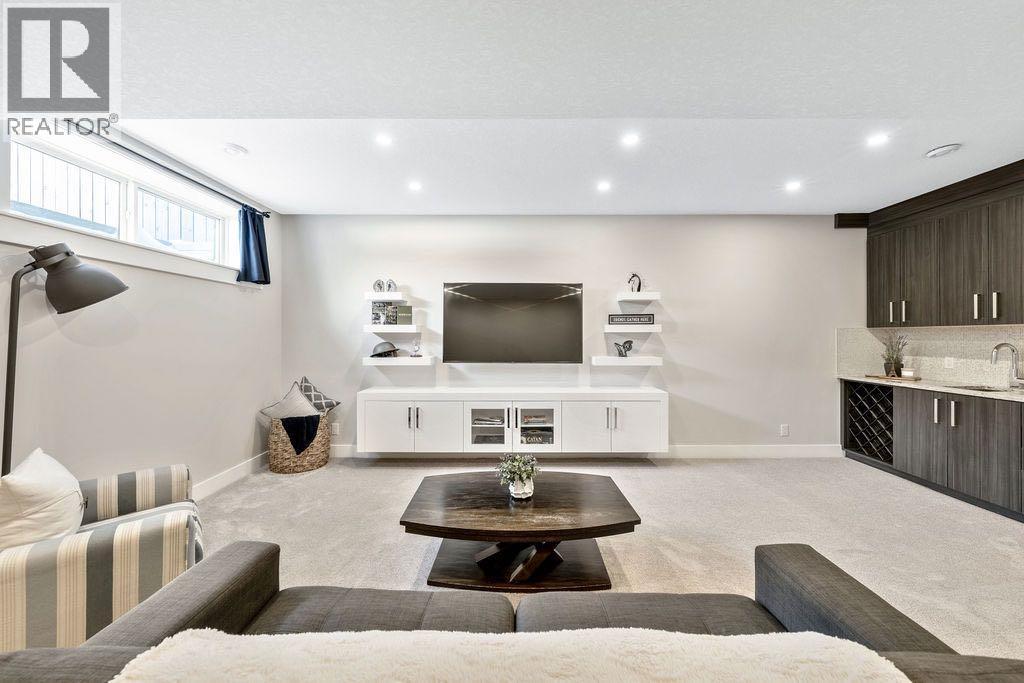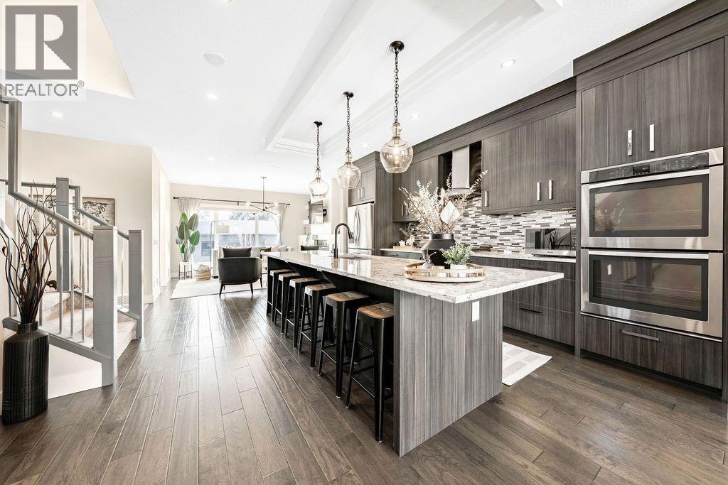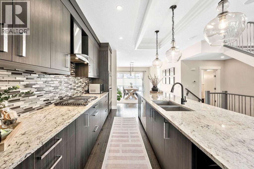 Refined Living, Inner-City! Nestled in the thriving district of Rosscarrock, this meticulously maintained, contemporary two-storey home offers over 3,000 sq. ft. of thoughtfully planned living space. Upon arrival, you’ll notice elevated design and tasteful inclusions. Oversized windows flood the home with natural light, creating a bright, uplifting atmosphere. The free-flowing floorpan transitions from the spacious front dining area to the gourmet kitchen. Here you’ll find high-end finishings including premium engineered hardwood flooring, smooth granite countertops, custom cabinetry, a gas range, double wall oven, Blomberg dishwasher (2025) and French Door refrigerator with in-door-ice + water and an exterior beverage drawer. The eatery flows effortlessly into the inviting family room, complete with custom built-ins, a linear gas fireplace and a practical flex area and 2 piece powered room. Ideal for relaxing and entertaining inside or out on the patio for summer BBQs with a gas hookup in your fully landscaped, private, fenced back yard this home is comfortable through all seasons. The upper level is well appointed with soaring vaulted ceilings that give the stunning primary bedroom a truly upscale feel, complete with a luxurious 5-piece ensuite boasting a stand alone soaker tub, dual vanity and rainfall shower. Two more sizeable bedrooms, and an additional 4-piece bathroom, a dedicated upper level laundry room featuring granite countertops, custom cabinetry and a sink complete the upper level. A highly practical, thoughtfully laid out, fully developed lower level, open to the floor above, continues to impress with 9-foot ceilings, a spacious fourth bedroom, full 4-piece bathroom, a new 50 gallon hot water tank (2025), additional built-ins, including a wet bar and a spacious entertainment room have fully finished this basement. Throughout the home, you’ll appreciate elegant inclusions and attention to detail, with:* Ceiling flush-mounted speakers;* In-floor heati ng in the primary ensuite and lower level bath;* Central Air;* Designer light fixtures,* Upgraded kitchen & bathroom taps & faucets;* Abundant storage and spacious walk-in closets;* Additional storage under the stairs;* A truly elevated primary + ensuite retreat;* Mature landscaping with a Brandon elm, cluster of columnar aspens in the front, and a red rocket maple out back;* Double detached garage and much more.This property offers exceptional value for buyers, investors, and those seeking more space with unmatched convenience. Positioned on a comfortable lot mere minutes from downtown, you’ll enjoy quick access to major routes, public transit, shopping, great schools, and pleasant parks. Nearby amenities along 17th Avenue SW, local restaurants, and green spaces make everyday living easy and enjoyable here. WELCOME HOME! (id:63190)