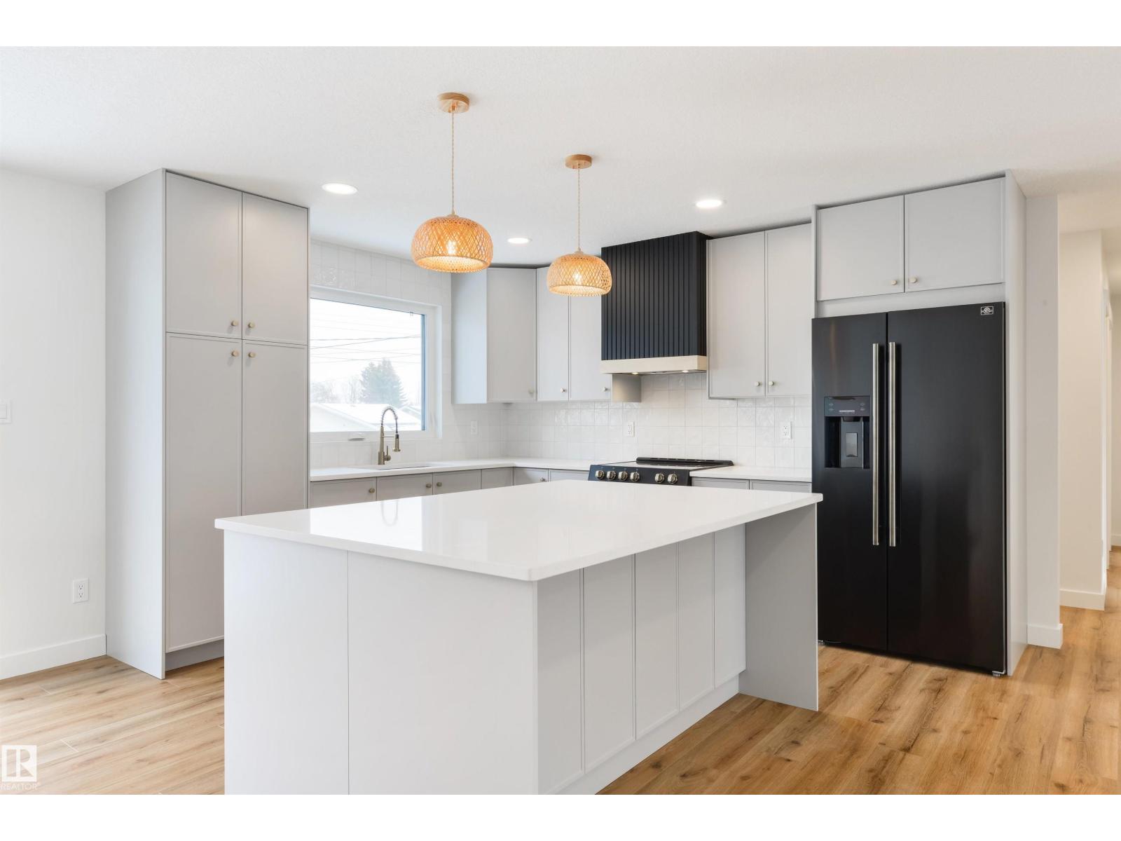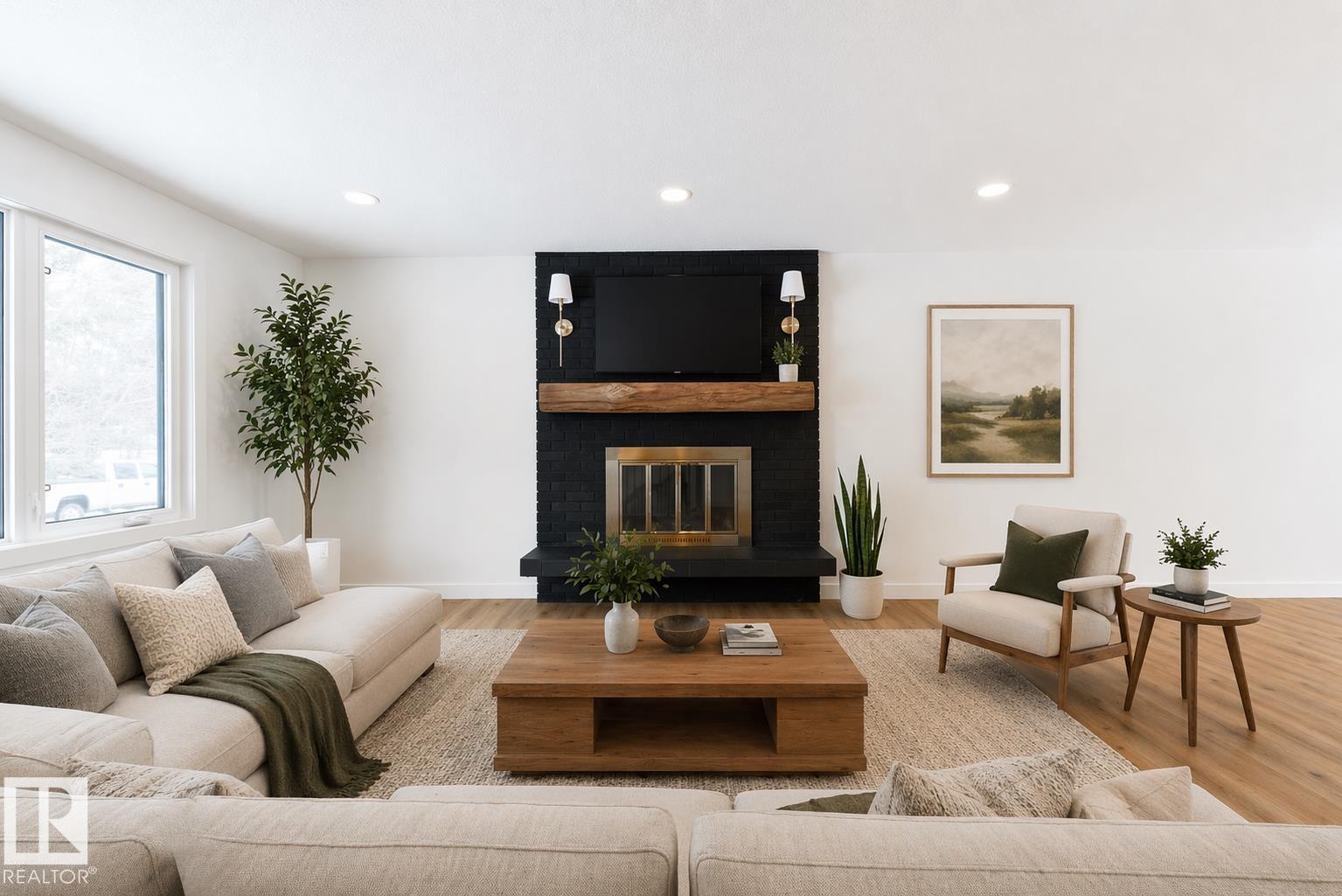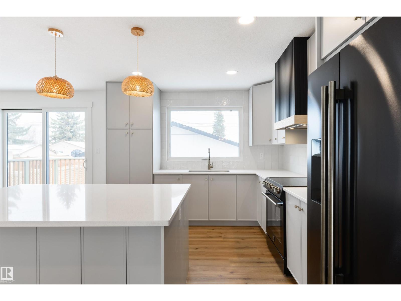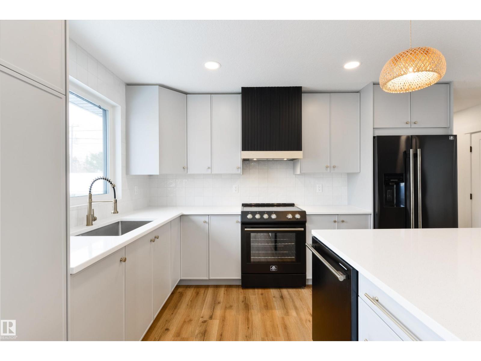Some homes get updated - this one was rebuilt from the inside out. Set on a mature street in Broxton Park, this fully transformed bi-level delivers what new builds can't: space, character & craftsmanship finished to a standard that's setting a new bar for the area. The exterior stops traffic - modern farmhouse board & batten, bold black windows & trim, and natural timber entry gable. On the main floor you’ll find an open concept layout with brick-facing wood-burning fireplace, LVP throughout, Chef's kitchen with centre island, quartz countertops & stainless appliances, 4pc bath, and 2 bedrooms including a king-sized primary with walk-in closet & 3pc ensuite. The lower level boasts front & rear access and includes a 2nd wood-burning fireplace, large rec room, 2 additional bedrooms, 3pc bath & laundry. New shingles, triple-pane windows, pot lighting, oversized double detached garage, deck, landscaped & fenced yard, walking distance to schools, playgrounds & trails - this is the one you’ve been waiting for! (id:63190)