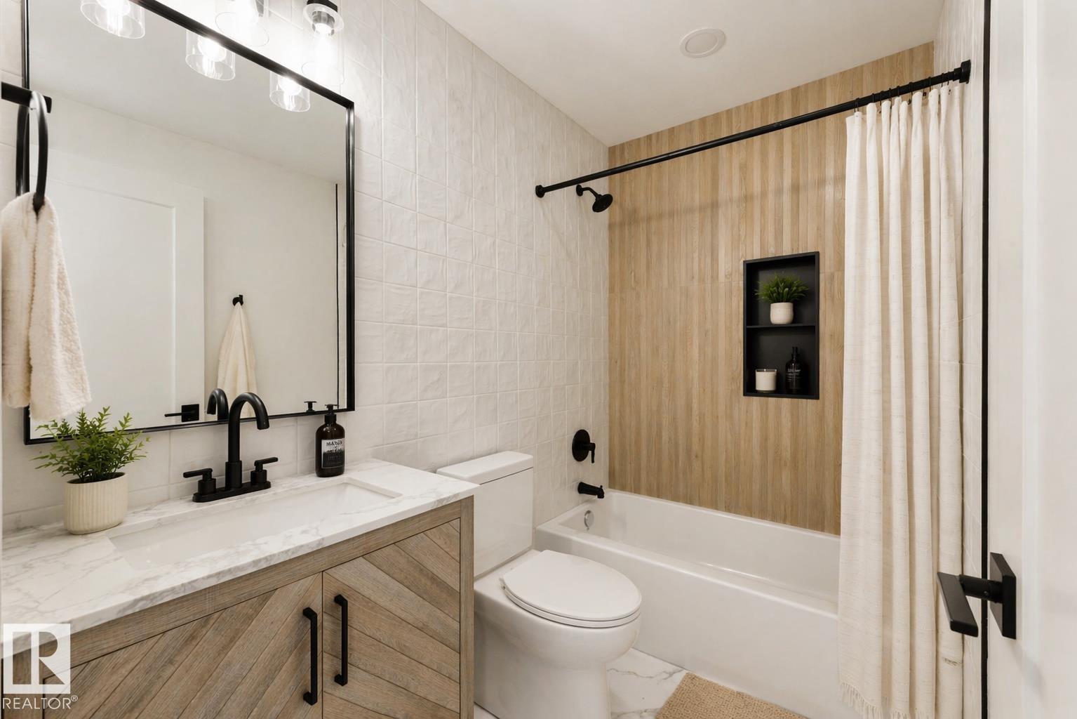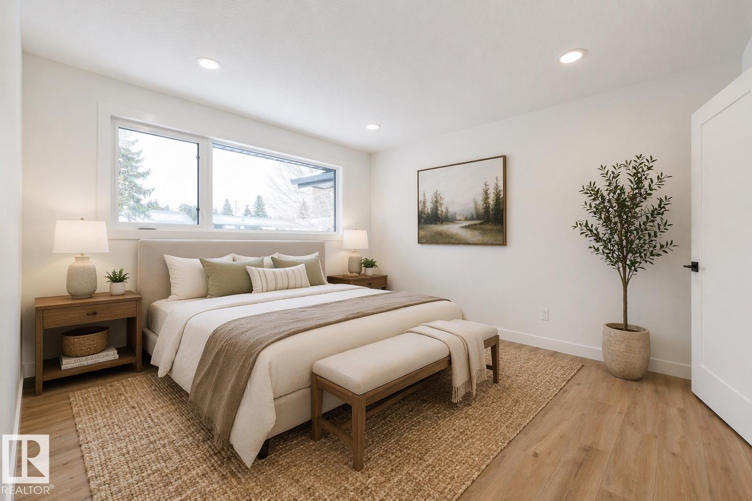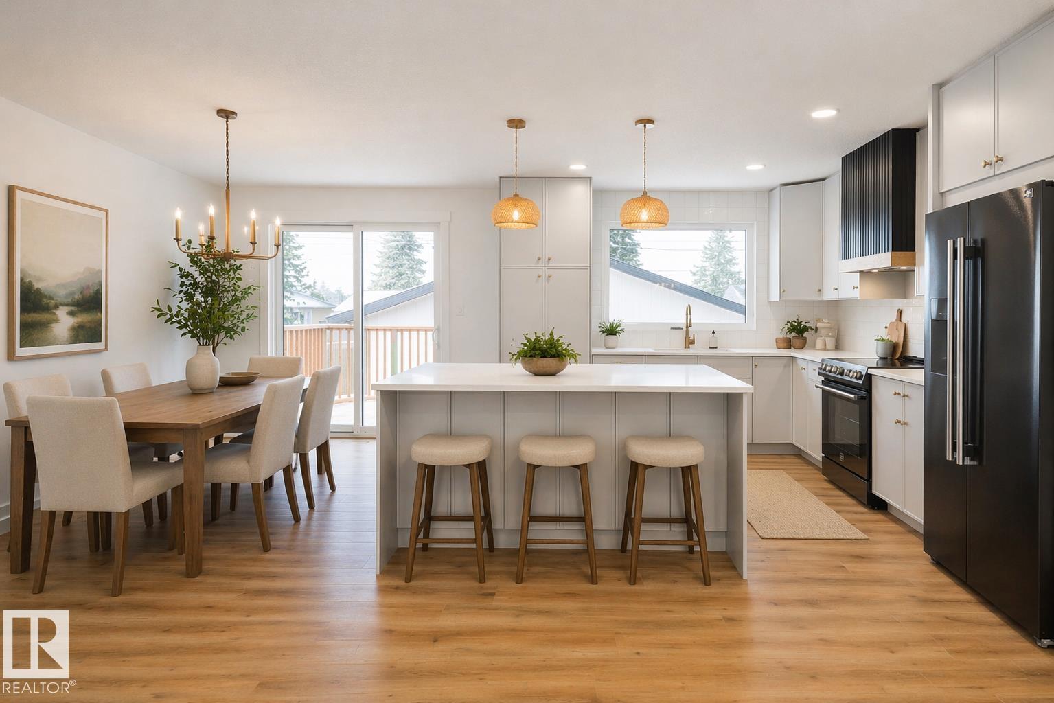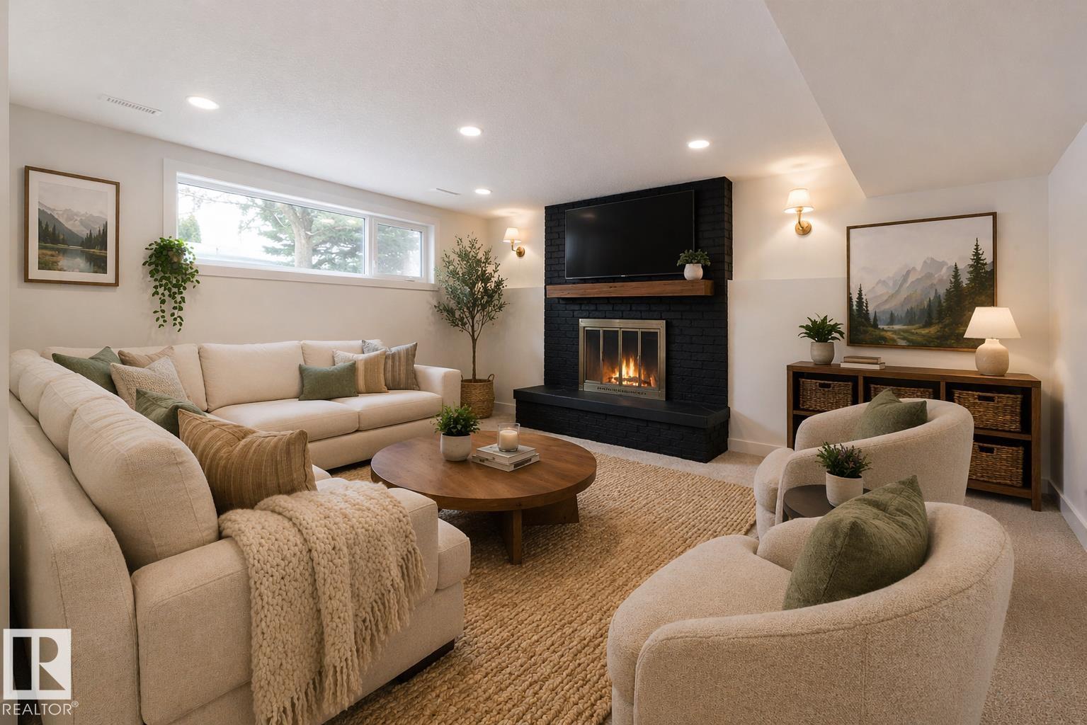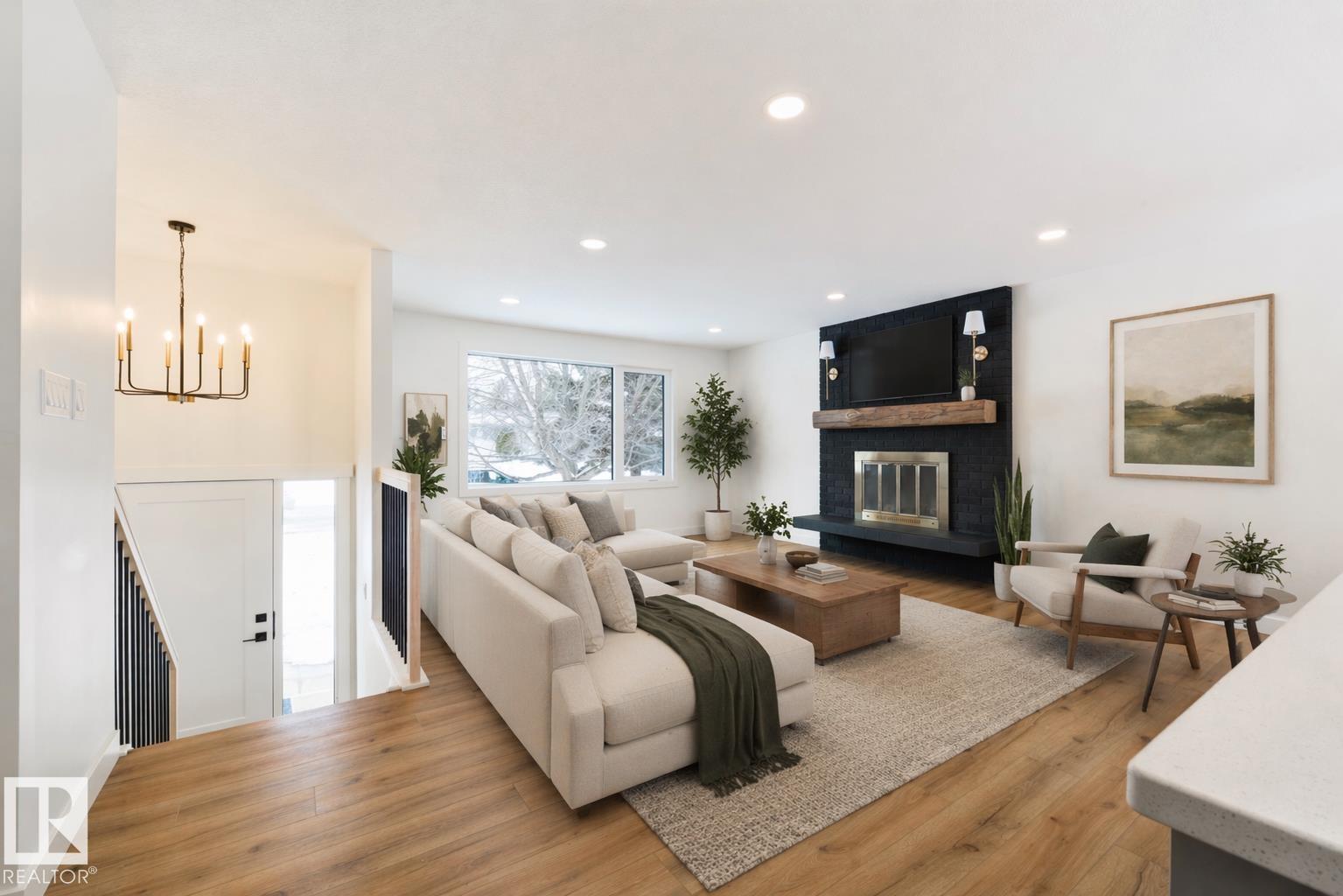 Some homes get updated - this one was rebuilt from the inside out. Set on a mature street in Broxton Park, this fully transformed bi-level delivers what new builds can't: space, character & craftsmanship finished to a standard that's setting a new bar for the area. The exterior stops traffic - modern farmhouse board & batten, bold black windows & trim, and natural timber entry gable. On the main floor you’ll find an open concept layout with brick-facing wood-burning fireplace, LVP throughout, Chef's kitchen with centre island, quartz countertops & stainless appliances, 4pc bath, and 2 bedrooms including a king-sized primary with walk-in closet & 3pc ensuite. The lower level boasts front & rear access and includes a 2nd wood-burning fireplace, large rec room, 2 additional bedrooms, 3pc bath & laundry. New shingles, triple-pane windows, pot lighting, oversized double detached garage, deck, landscaped & fenced yard, walking distance to schools, playgrounds & trails - this is the one you’ve been waiting for! (id:63190)