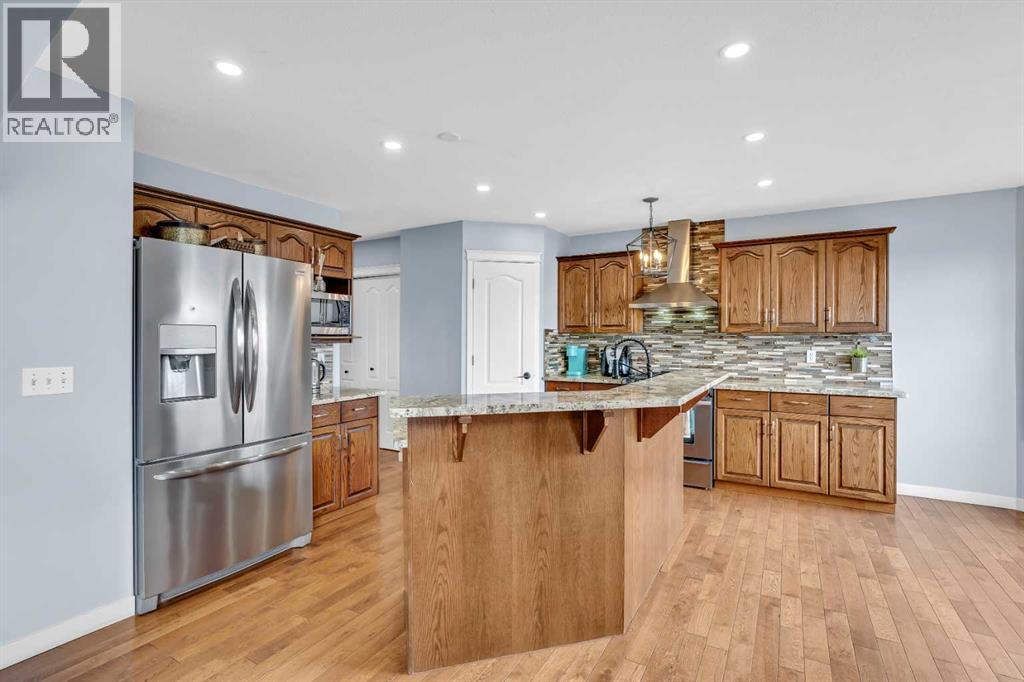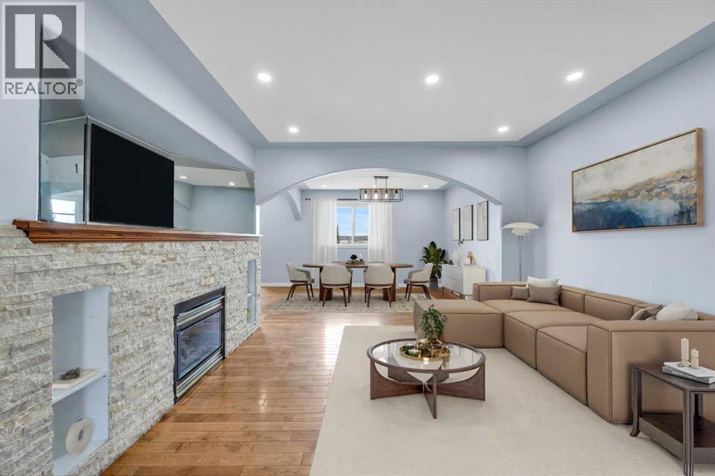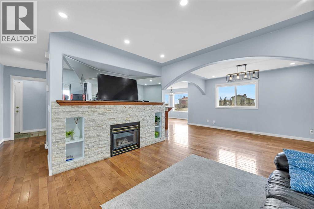 Elegance meets Practicality in this thoughtfully designed home. For the discerning buyer, this home has nice curb appeal, sits on an elevated lot with sunshine basement, has a wider double garage to easily accomodate 2 automobiles. The main floor features a living room with stone-facing gas fireplace to cozy up on chilly nights, while the south facing kitchen and dining room are so bright they will just light up every day and you will get to WITNESS THE STUNNING MOUNTAIN VIEWS EVERYDAY! The upgraded kitchen cabinets feature solid oak doors, granite countertops, sleek stainless appliances, and a sizeable pantry. With its nicely appointed finishings and elegant hardwood flooring throughout the main floor living areas, this home is designed to SATIATE ALL YOUR FAMILY NEEDS. Upstairs you have a KING SIZED FAMILY ROOM with nice open views, 3 good sized bedrooms (master has separate closet from bathroom and a privacy door for the ensuite washroom). The details matter and this home has many curated details so all your needs are fulfilled! The basement is developed with 2 bedrooms (windows may not pass egress with current code), and a full 4-piece bathroom, large family room so you can watch movies or chill out on hot summer days. The EXPANSIVE REAR YARD HAS A MASSIVE DECK FOR YOUR SUMMER PARTIES AND OUTDOOR ENTERTAINMENT! Relax and soak up the sun on the south-facing deck, where you will find TRUE RELAXATION WITH THE PICTURESQUE MOUNTAIN AND VALLEY VIEWS to the south and west. WALKING DISTANCE TO THE PARKS, TUSCANY SHOPPING DISTRICT WHERE YOU WILL FIND STARBUCKS, SOBEY'S AND A SELECTION OF LOCAL AMENITIES. THIS IS THE PERFECT LOCATION FOR QUICK AND EASY ACCESS IN OR OUT FROM THE NEIGHBORHOOD. Come and become the newest member in one of Calgary's Premier neighborhoods. Quick access to the Tuscany C-TRAIN station, schools and community bicycle trails which connect to Calgary's regional pathway system. (id:63190)