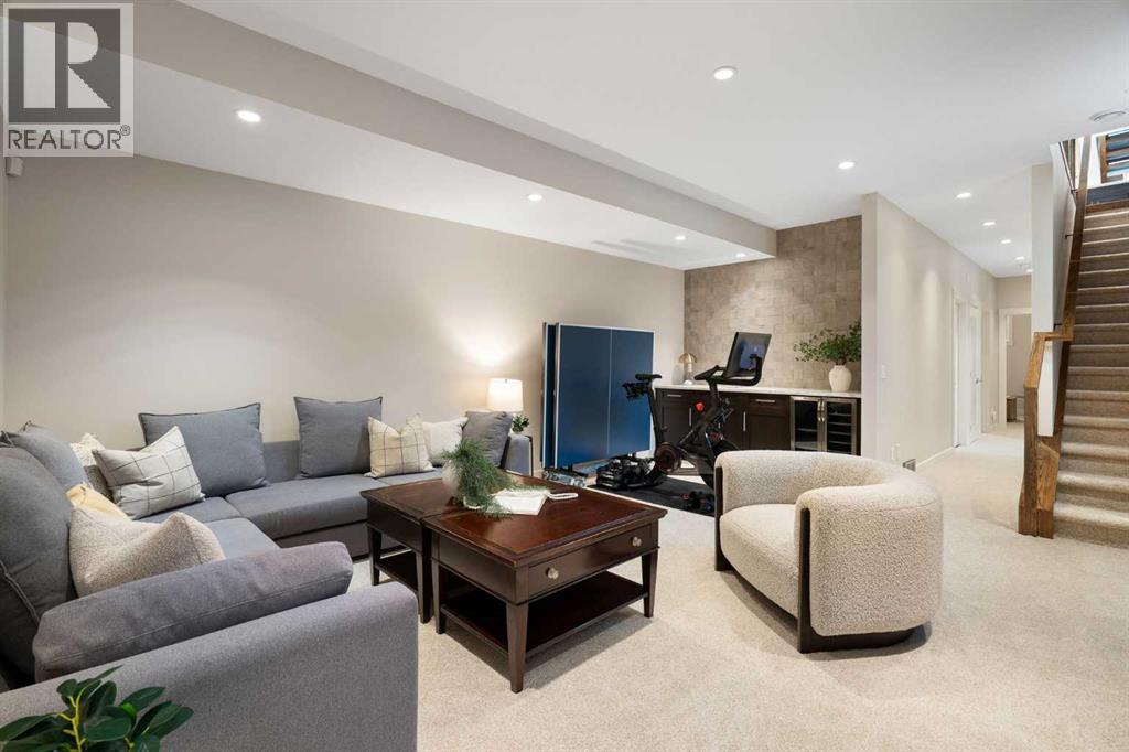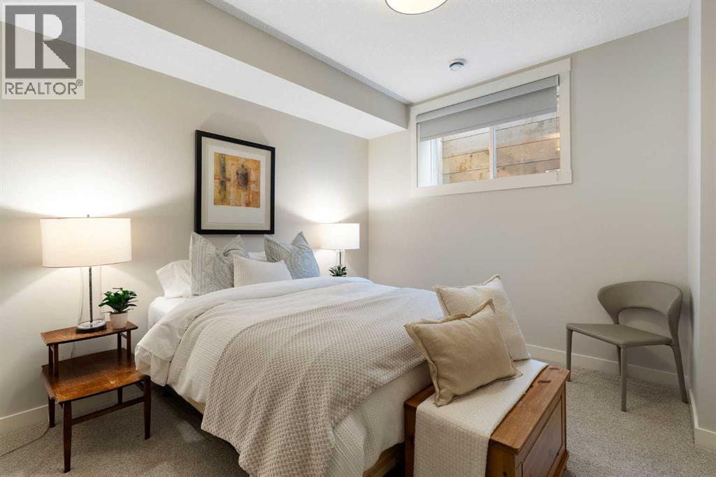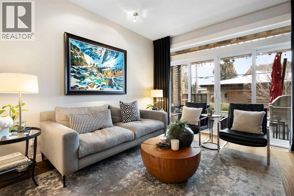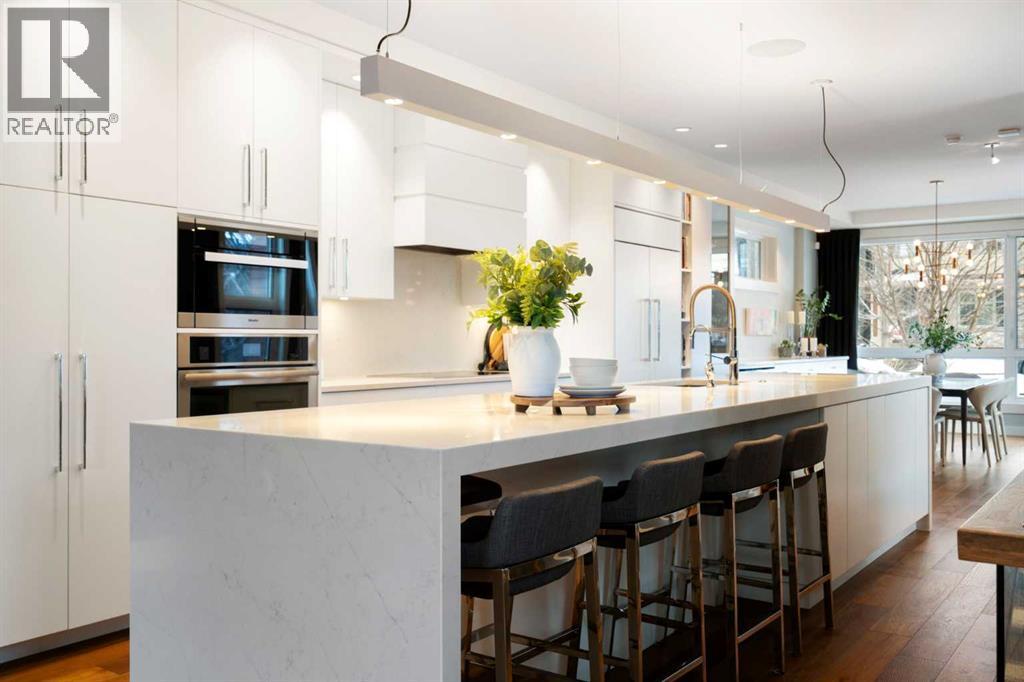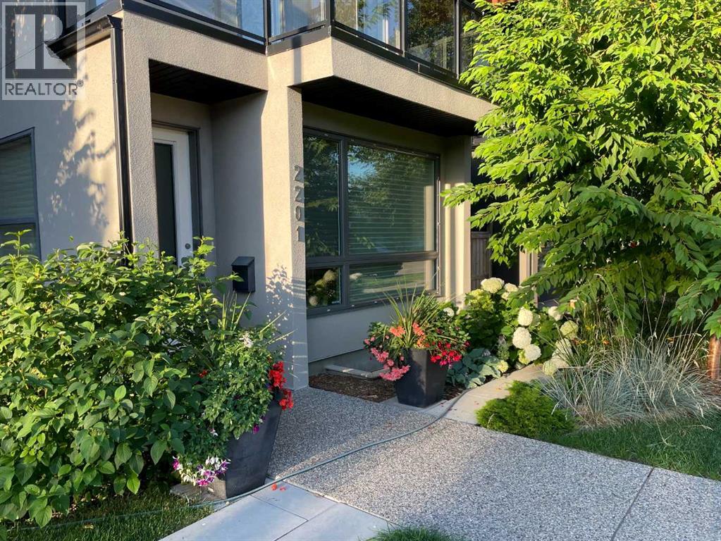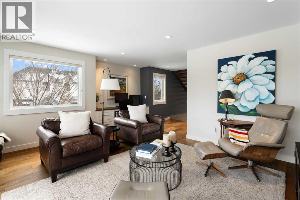 Welcome to 2201 Bowness Road NW, a rare and beautifully curated four-level home in one of West Hillhurst’s most sought-after pockets. Situated on a prime corner lot, this exceptional residence offers stunning downtown views, a sunny south-facing backyard, and over 3,700 sq. ft. of thoughtfully designed living space. Natural light pours through strategically placed oversized windows across every above-grade level, creating a bright and inviting atmosphere throughout. The main floor is a true showpiece, featuring engineered hardwood, striking open-riser wood staircases, and a statement raw metal gas fireplace. At the heart of the home is a nearly 16-foot waterfall island with built-in storage and integrated seating, perfectly paired with a chef-inspired kitchen complete with premium Sub-Zero, Miele, and JennAir appliances, custom cabinetry, and designer lighting. Sliding doors open seamlessly to the pergola-covered patio, extending the living space outdoors. The second level is ideal for family living, offering spacious secondary bedrooms, custom closet built-ins, a rare 6-piece bath with heated floors, a flexible bonus/family room, and access to the first upper deck. One of the bedrooms enjoys beautiful south-facing downtown views. The entire third level is dedicated to an exceptional primary retreat — a true private sanctuary. Enjoy your own covered balcony, wet bar and coffee station, custom open closet, and a luxurious 5-piece ensuite with heated tile floors, freestanding tub, and a stunning two-way fireplace. The fully developed basement offers 9-foot ceilings, a large recreation room with full wet bar, guest bedroom, full bathroom, and rough-in for in-floor heat. Outdoor spaces have been professionally curated with composite decking, pergola, mature landscaping, lighting, and rebuilt upper decks with vinyl decking and metal cladding. Additional features include air conditioning, zoned heating and cooling, Hunter Douglas blinds, built-in speakers, Vacuflo, Kineti co water system, security system, and insulated garage with Gladiator storage. A truly exceptional inner-city offering just minutes to downtown, Kensington, the Bow River pathways, and some of Calgary’s best amenities. (id:63190)