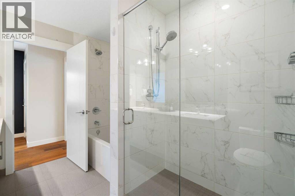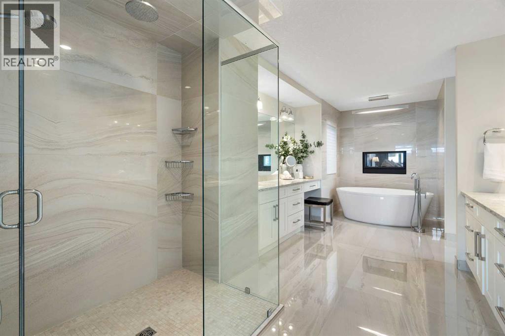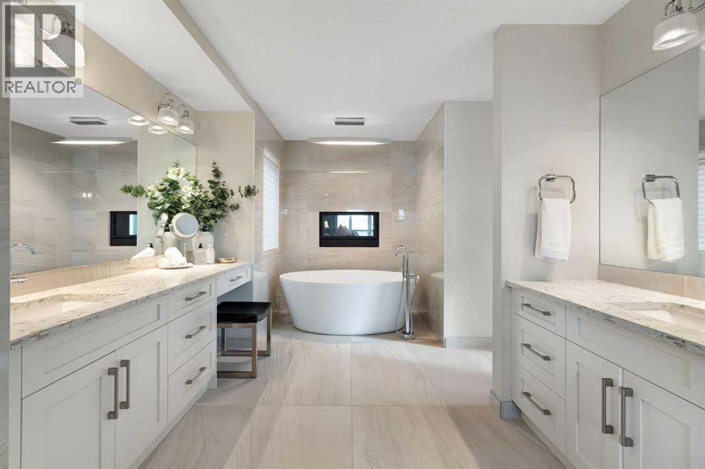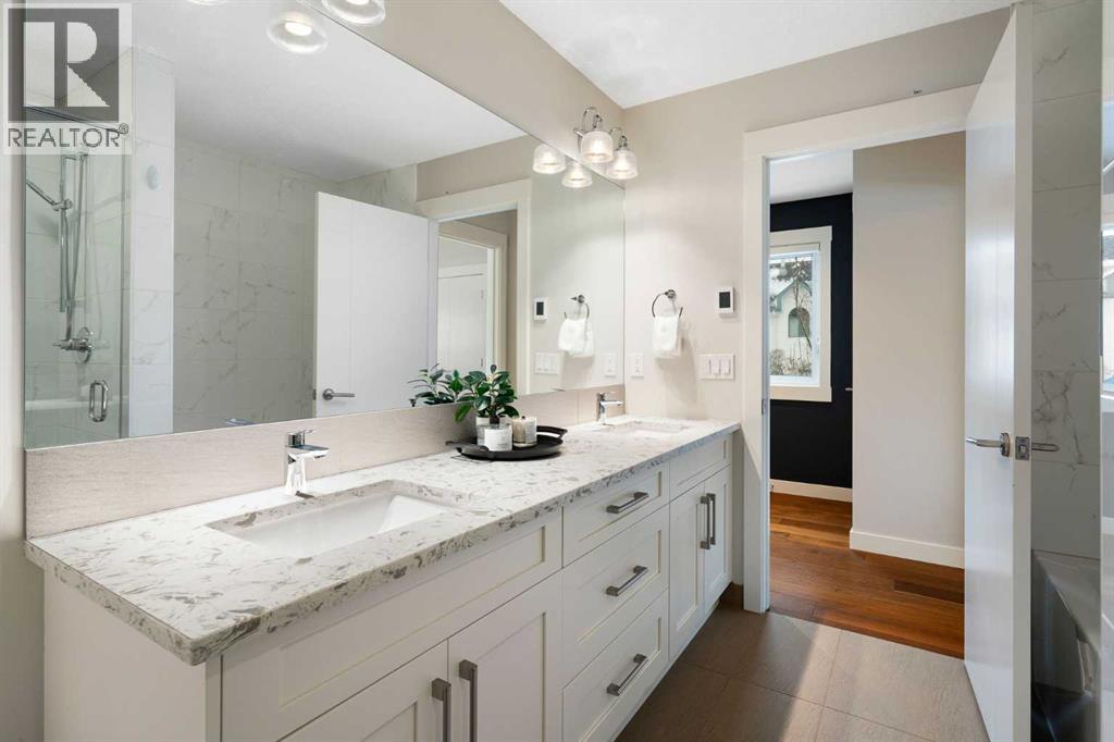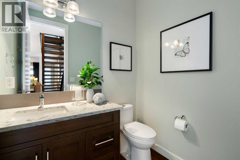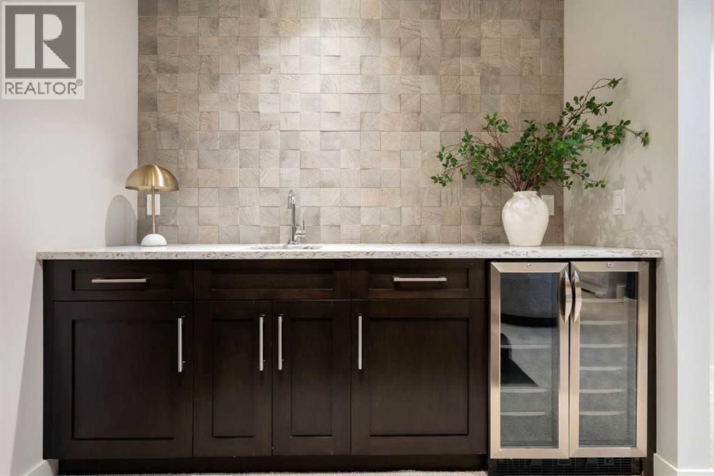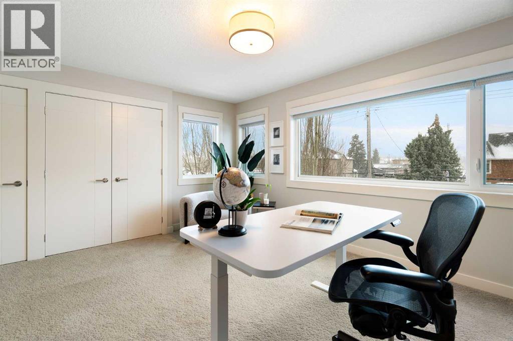 Welcome to 2201 Bowness Road NW, a rare and beautifully curated four-level home in one of West Hillhurst’s most sought-after pockets. Situated on a prime corner lot, this exceptional residence offers stunning downtown views, a sunny south-facing backyard, and over 3,700 sq. ft. of thoughtfully designed living space. Natural light pours through strategically placed oversized windows across every above-grade level, creating a bright and inviting atmosphere throughout. The main floor is a true showpiece, featuring engineered hardwood, striking open-riser wood staircases, and a statement raw metal gas fireplace. At the heart of the home is a nearly 16-foot waterfall island with built-in storage and integrated seating, perfectly paired with a chef-inspired kitchen complete with premium Sub-Zero, Miele, and JennAir appliances, custom cabinetry, and designer lighting. Sliding doors open seamlessly to the pergola-covered patio, extending the living space outdoors. The second level is ideal for family living, offering spacious secondary bedrooms, custom closet built-ins, a rare 6-piece bath with heated floors, a flexible bonus/family room, and access to the first upper deck. One of the bedrooms enjoys beautiful south-facing downtown views. The entire third level is dedicated to an exceptional primary retreat — a true private sanctuary. Enjoy your own covered balcony, wet bar and coffee station, custom open closet, and a luxurious 5-piece ensuite with heated tile floors, freestanding tub, and a stunning two-way fireplace. The fully developed basement offers 9-foot ceilings, a large recreation room with full wet bar, guest bedroom, full bathroom, and rough-in for in-floor heat. Outdoor spaces have been professionally curated with composite decking, pergola, mature landscaping, lighting, and rebuilt upper decks with vinyl decking and metal cladding. Additional features include air conditioning, zoned heating and cooling, Hunter Douglas blinds, built-in speakers, Vacuflo, Kineti co water system, security system, and insulated garage with Gladiator storage. A truly exceptional inner-city offering just minutes to downtown, Kensington, the Bow River pathways, and some of Calgary’s best amenities. (id:63190)