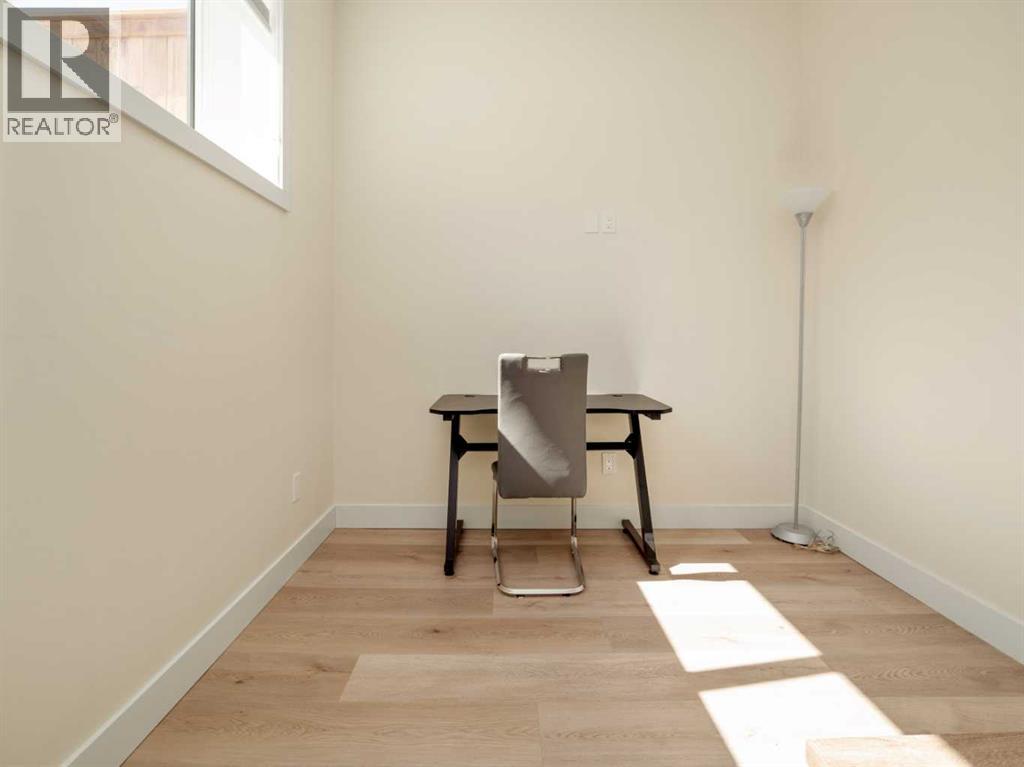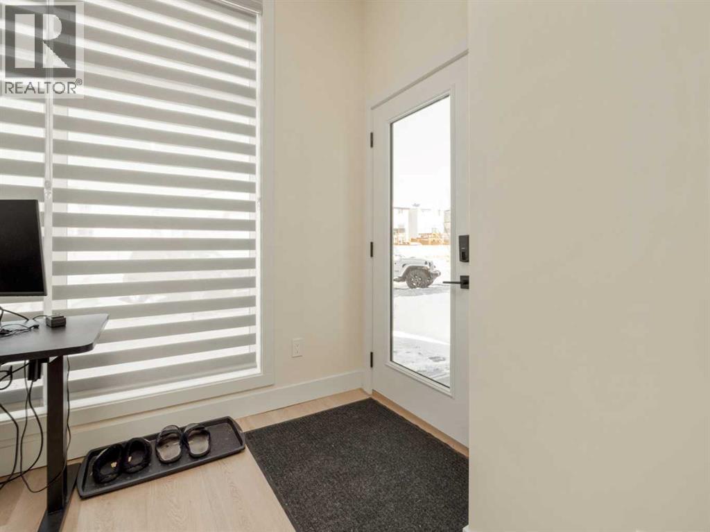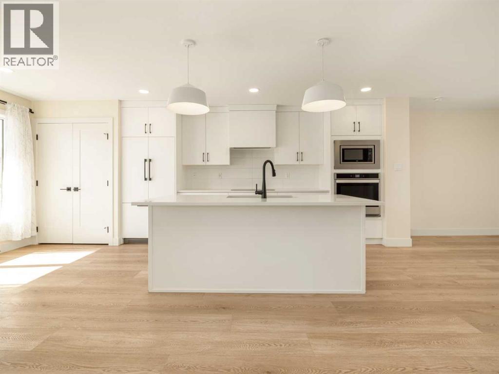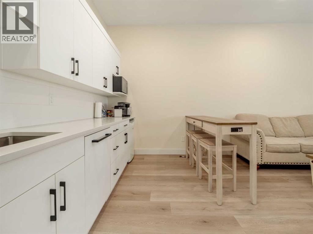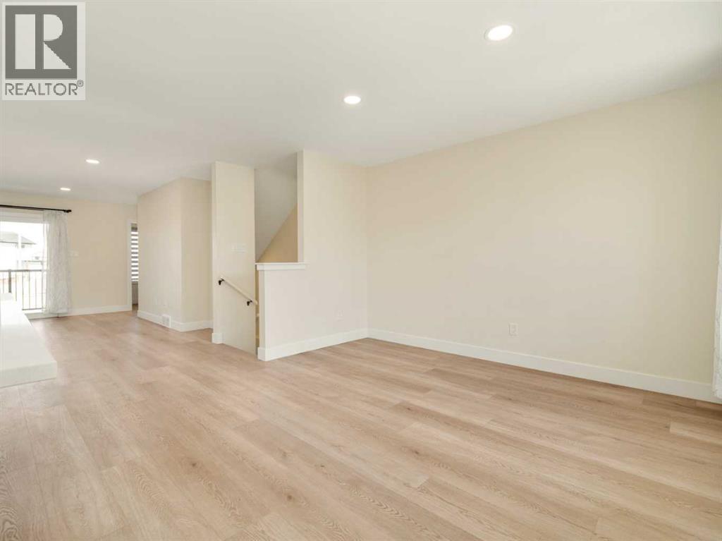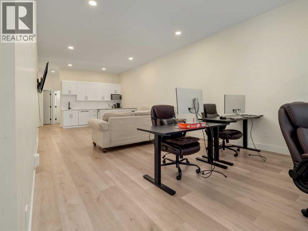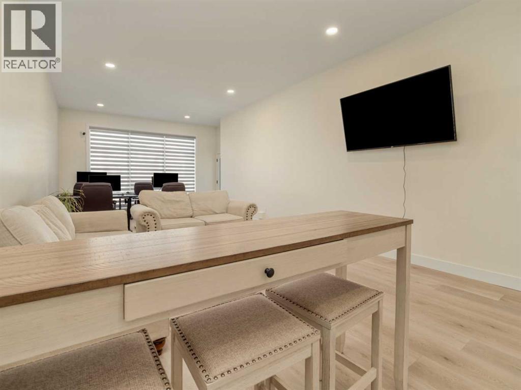 RARE OPPORTUNITY! First time one of these units have come up for sale since all sold to original buyers when they were built...and this one has a detached double garage! Built in 2023 by Stranville Living Master Builder, this is a 3 level end unit townhouse zoned U-I(Urban Innovation) for Limited Commercial Use on the main floor and residential living above on the 2nd and 3rd floor. There is even a completely separate entrance to the office area on the main. Main Floor commercial space has open office area, kitchen, enclosed office, and 2 piece bathroom. The U-I designation on Coalbrook Gate is designed to support businesses that are compatible with a residential neighbourhood. Examples of approved or intended uses include: Professional Services: Realtor offices, accounting firms, or legal services. Health & Wellness: Massage therapy, specialized fitness studios, or counseling offices. Creative Studios: Photography, graphic design, or architecture firms. Small-Scale Retail: Specialty boutiques or service shops that don't generate heavy industrial noise or traffic. Key Considerations for Owners...Separate Access: The commercial space has a private entrance distinct from the home’s main entrance, allowing for professional client interactions without them entering your personal living space. Parking: There is public parking up front for occasional client visits. Development Permits: Even though the space is "innovation" zoned, you still need a Change of Use or Home Occupation Type D permit from the City of Lethbridge to officially open your doors to the public. Alternatively, you could just use this space as residential for a large family room and second kitchen. Great for parties! The 2nd floor has a beautiful layout with a modern kitchen including cabinet faced dishwasher and fridge, quartz counters, and laminate floors. There is also a door to deck out back with stairs down to pathway to garage. Main level also has a good size dining space, large living room with fr ont balcony, and a 2 piece bathroom. Upper 3rd level houses 3 bedrooms including primary with large walk-in closet and ensuite featuring double sinks and full length walk-in shower. There is also another full bathroom with tub/shower combo, and a laundry closet on this level. Backyard is fenced and awaits your landscaping touches. Double garage for your vehicles. Fantastic Opportunity to live and work from home! (id:63190)