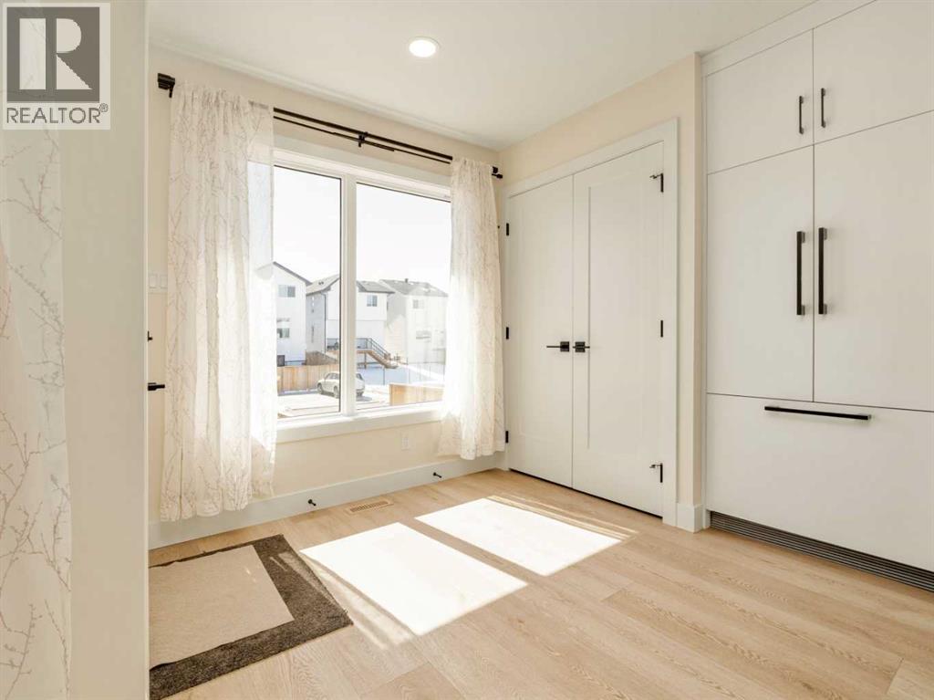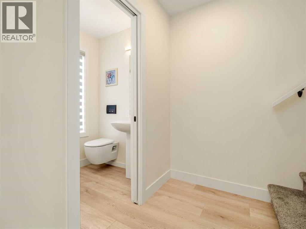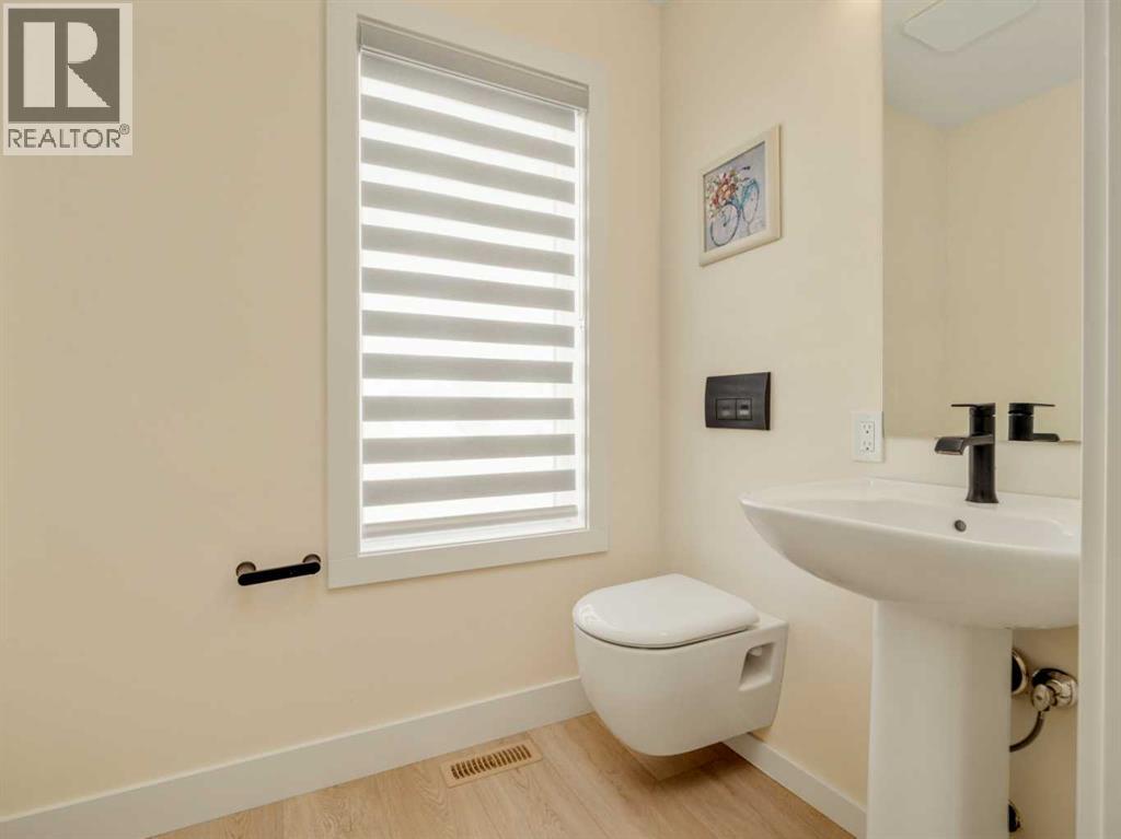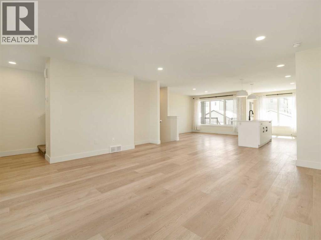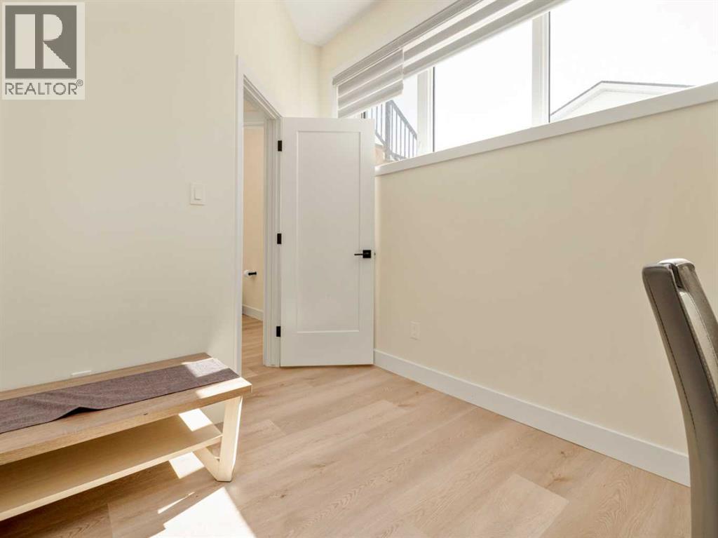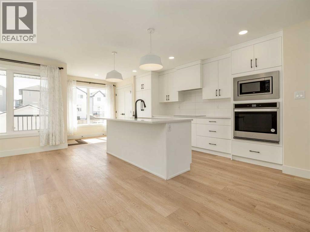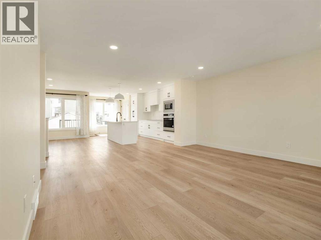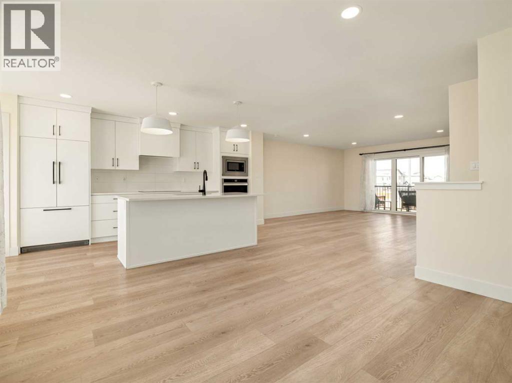 RARE OPPORTUNITY! First time one of these units have come up for sale since all sold to original buyers when they were built...and this one has a detached double garage! Built in 2023 by Stranville Living Master Builder, this is a 3 level end unit townhouse zoned U-I(Urban Innovation) for Limited Commercial Use on the main floor and residential living above on the 2nd and 3rd floor. There is even a completely separate entrance to the office area on the main. Main Floor commercial space has open office area, kitchen, enclosed office, and 2 piece bathroom. The U-I designation on Coalbrook Gate is designed to support businesses that are compatible with a residential neighbourhood. Examples of approved or intended uses include: Professional Services: Realtor offices, accounting firms, or legal services. Health & Wellness: Massage therapy, specialized fitness studios, or counseling offices. Creative Studios: Photography, graphic design, or architecture firms. Small-Scale Retail: Specialty boutiques or service shops that don't generate heavy industrial noise or traffic. Key Considerations for Owners...Separate Access: The commercial space has a private entrance distinct from the home’s main entrance, allowing for professional client interactions without them entering your personal living space. Parking: There is public parking up front for occasional client visits. Development Permits: Even though the space is "innovation" zoned, you still need a Change of Use or Home Occupation Type D permit from the City of Lethbridge to officially open your doors to the public. Alternatively, you could just use this space as residential for a large family room and second kitchen. Great for parties! The 2nd floor has a beautiful layout with a modern kitchen including cabinet faced dishwasher and fridge, quartz counters, and laminate floors. There is also a door to deck out back with stairs down to pathway to garage. Main level also has a good size dining space, large living room with fr ont balcony, and a 2 piece bathroom. Upper 3rd level houses 3 bedrooms including primary with large walk-in closet and ensuite featuring double sinks and full length walk-in shower. There is also another full bathroom with tub/shower combo, and a laundry closet on this level. Backyard is fenced and awaits your landscaping touches. Double garage for your vehicles. Fantastic Opportunity to live and work from home! (id:63190)