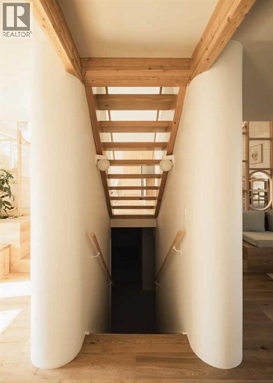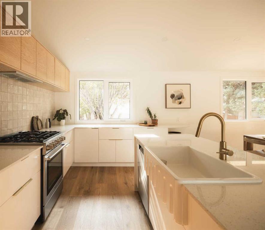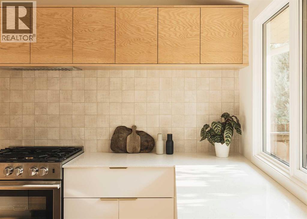 || OPEN HOUSE THIS SATURDAY 2-4 pm || This home is a love letter to design and craftsmanship. Featured on the cover of Western Living Magazine's inaugural Design Award edition.A 1966 split-level in Varsity, reimagined with the kind of craft and intention that becomes obvious the moment you step inside.The interior was stripped to the studs and rebuilt. New insulation, electrical, plumbing, ductwork, flooring, triple pane windows, and roof. This is not a cosmetic renovation. Every element was built with intention and care.The design was led by Studio North, a Calgary-based firm known for creating spaces that are as functional as they are striking. The living area ceiling was vaulted to double height with curved geometry, flooding the home with light. Custom rattan millwork screens are featured throughout the home, beautiful and functional. Built-in planters bring greenery into the everyday. The original brick fireplace was transformed into a sculptural centrepiece. The kitchen is fully renovated with new cabinets and appliances, the primary bedroom has a new ensuite. Douglas fir, golden oak, and brass throughout. Nothing feels like an afterthought.Beauty in a home matters. It slows you down and makes ordinary moments feel better. The split-level layout creates natural separation between spaces, with quiet nooks throughout, the kind of spaces that make working from home something you look forward to.Three bedrooms, 2.5 baths, finished basement, 2,413 sqft total living space on a 55 x 120 foot lot. A new rear deck steps out to a backyard with mature trees, privacy, and landscaping that took decades to grow.Varsity puts you five minutes from Nose Hill Park, Market Mall, the University of Calgary, and a short walk to Dalhousie C-Train station.This is where a life well lived happens. (id:63190)