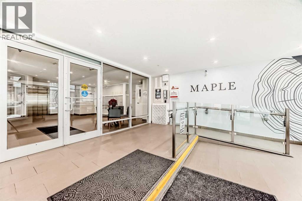 Bright ground-floor 1-bedroom condo in The Maple, a 55+ community in Calgary’s University District. This 537 sq ft open-concept unit features 9’ ceilings, vinyl plank flooring, and large triple-pane windows for abundant natural light. The kitchen offers quartz countertops, stainless steel appliances, and a central island. Enjoy direct access to a private, south-facing patio—no elevator required. The home includes a spacious bedroom, modern 3-piece bathroom, in-suite laundry, and barrier-free design throughout. Titled underground heated parking included. Residents have access to Cambridge Manor amenities, including optional dining, fitness facilities, salon services, and social programming. Conveniently located near shopping, transit, the University of Calgary, and Foothills Hospital. (id:63190)