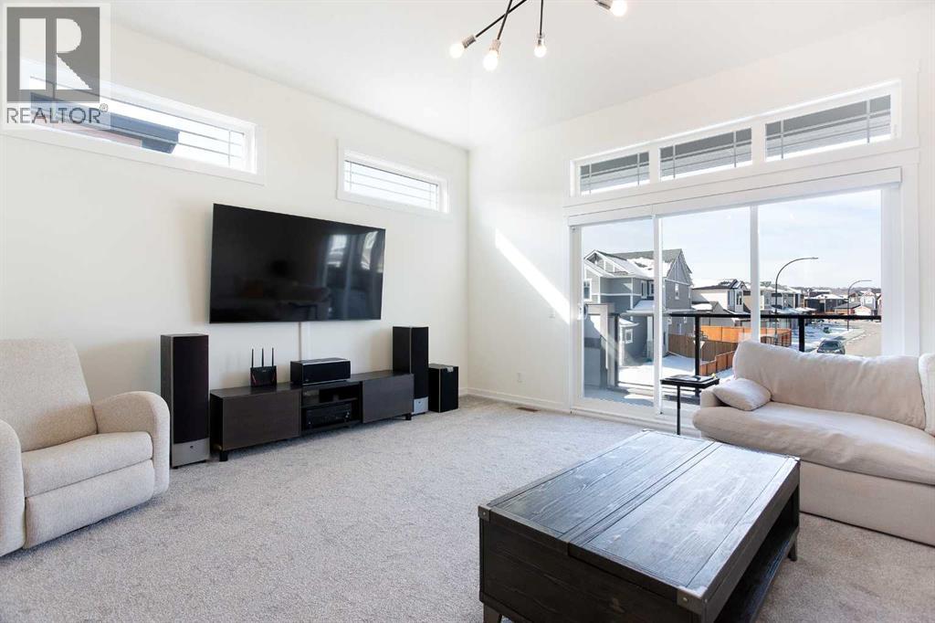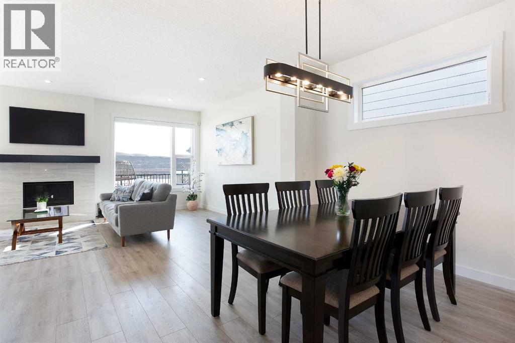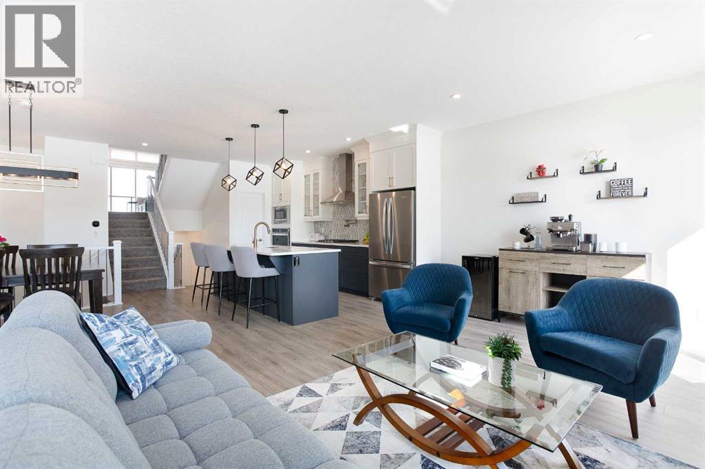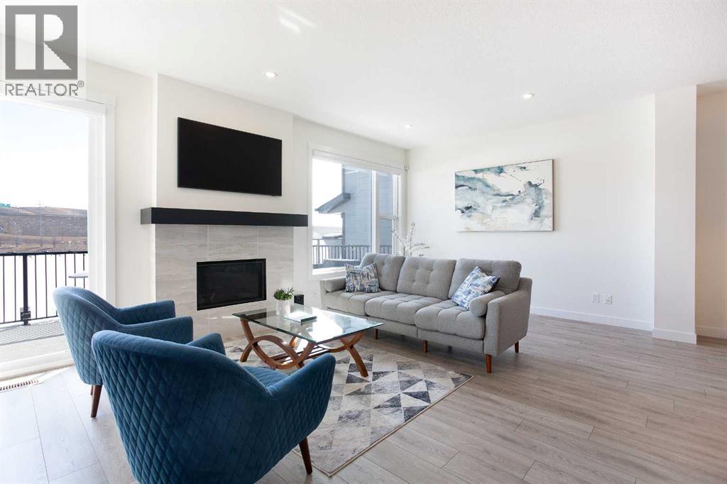 Welcome to an exceptional offering in the prestigious Riverstone community, where refined living meets everyday convenience. Boasting 2,836 SqFt of exquisitely upgraded living space, this 4-bedroom, 3.5-bathroom split-level home is thoughtfully designed for both family life and elevated entertaining.The chef-inspired kitchen is a true centerpiece, featuring quartz countertops, ceiling-height cabinetry, a custom tile backsplash, glass cabinet accents, and a premium built-in gas range with wall oven and microwave. A pot filler and expansive pantry complete the space, making it as functional as it is beautiful.Upstairs, three spacious bedrooms offer oversized closets and expanded windows, while the luxurious 5-piece ensuite impresses with a standalone tub and full tile extended shower.The fully developed basement is bright and inviting with 9.5-foot ceilings, oversized windows, and a large sliding glass door. It includes a generous recreation area, fourth bedroom, office, and a convenient full bathroom with a walk-in tile shower.Outdoors, the extensively landscaped tiered backyard is a private oasis, featuring multiple seating areas, brushed concrete steps, unique hexagonal paving stones, and striking rock walls. A full-width balcony enhances your outdoor living experience.Surrounded by parks, wetlands, and scenic Bow River pathways, and just 3 minutes to Stoney Trail, this home offers the perfect blend of luxury, lifestyle, and location for the discerning buyer. (id:63190)