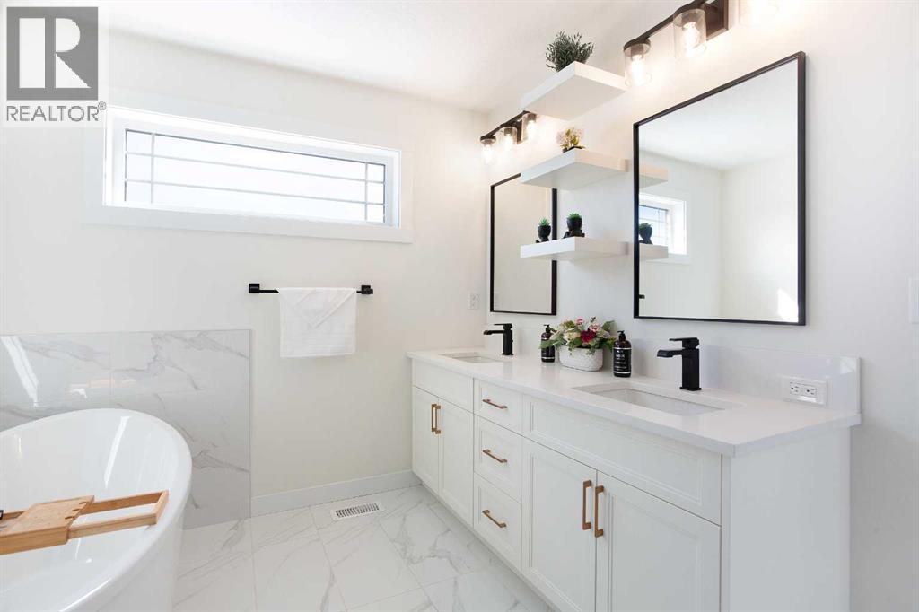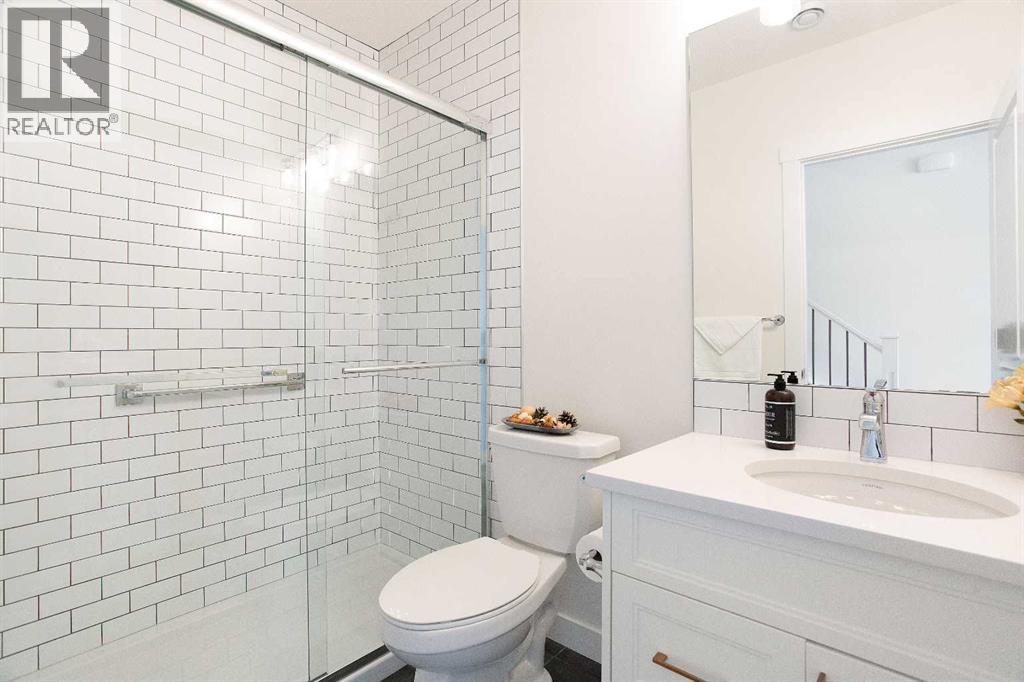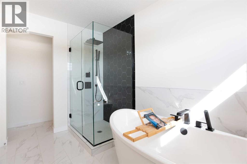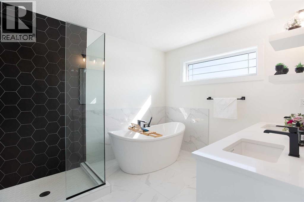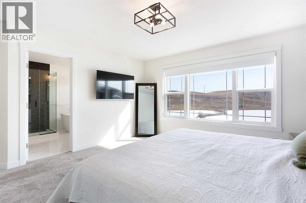 Welcome to an exceptional offering in the prestigious Riverstone community, where refined living meets everyday convenience. Boasting 2,836 SqFt of exquisitely upgraded living space, this 4-bedroom, 3.5-bathroom split-level home is thoughtfully designed for both family life and elevated entertaining.The chef-inspired kitchen is a true centerpiece, featuring quartz countertops, ceiling-height cabinetry, a custom tile backsplash, glass cabinet accents, and a premium built-in gas range with wall oven and microwave. A pot filler and expansive pantry complete the space, making it as functional as it is beautiful.Upstairs, three spacious bedrooms offer oversized closets and expanded windows, while the luxurious 5-piece ensuite impresses with a standalone tub and full tile extended shower.The fully developed basement is bright and inviting with 9.5-foot ceilings, oversized windows, and a large sliding glass door. It includes a generous recreation area, fourth bedroom, office, and a convenient full bathroom with a walk-in tile shower.Outdoors, the extensively landscaped tiered backyard is a private oasis, featuring multiple seating areas, brushed concrete steps, unique hexagonal paving stones, and striking rock walls. A full-width balcony enhances your outdoor living experience.Surrounded by parks, wetlands, and scenic Bow River pathways, and just 3 minutes to Stoney Trail, this home offers the perfect blend of luxury, lifestyle, and location for the discerning buyer. (id:63190)