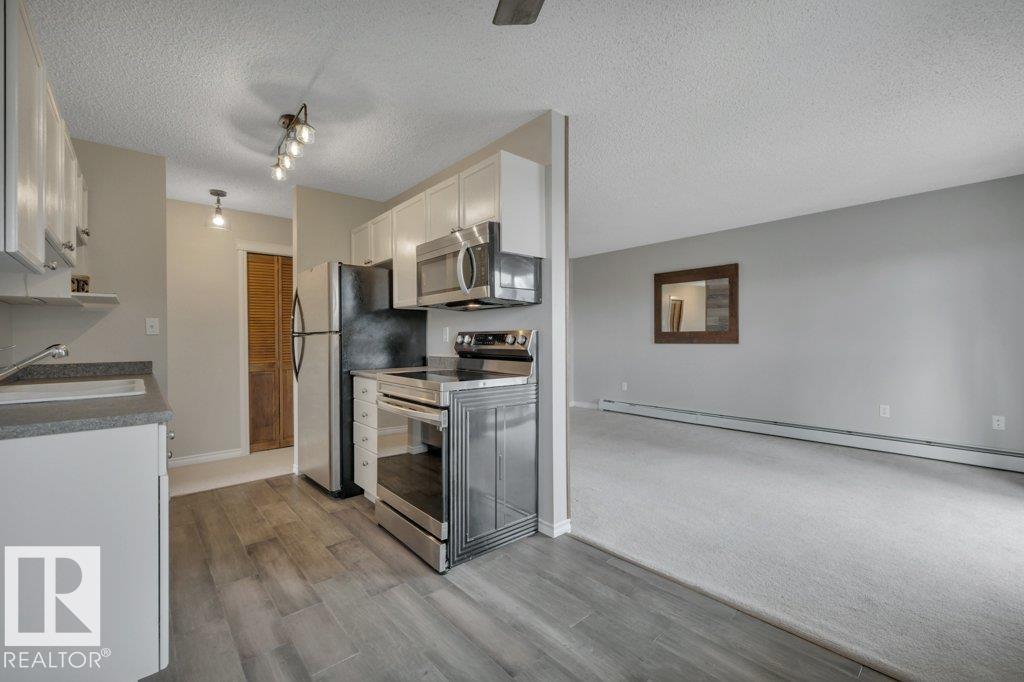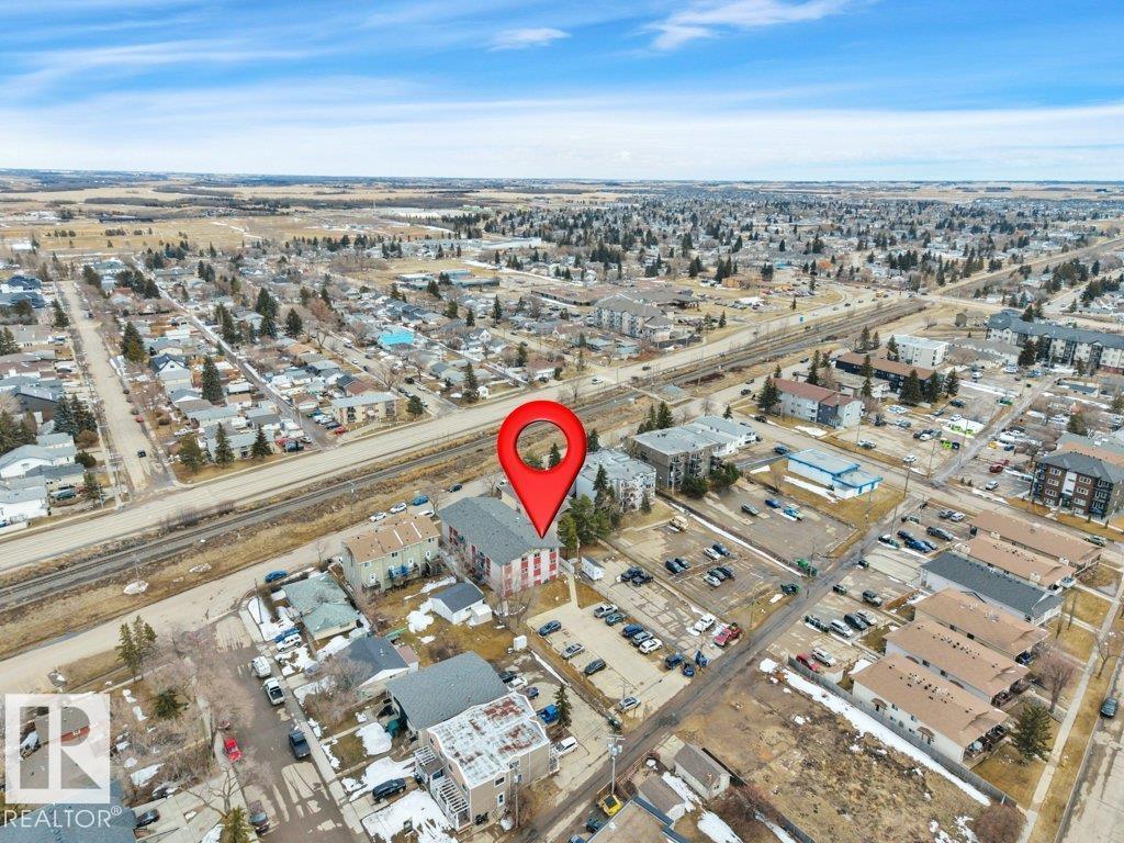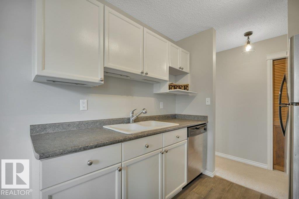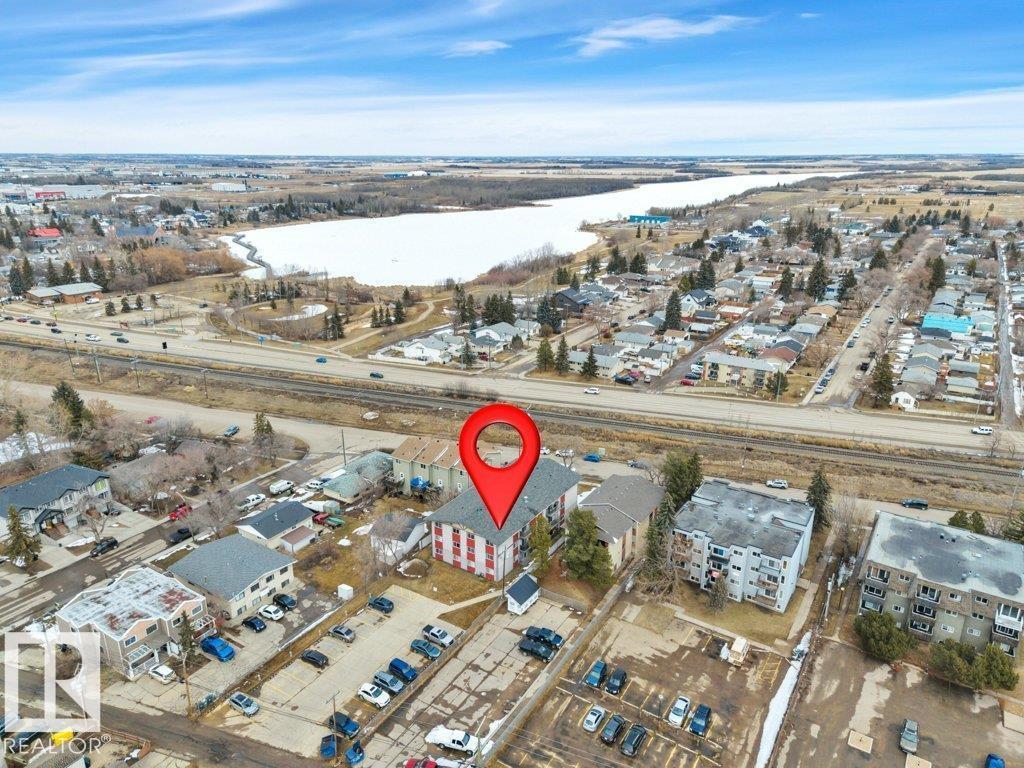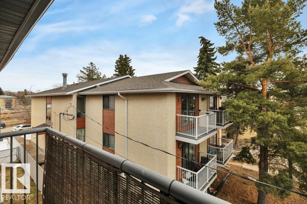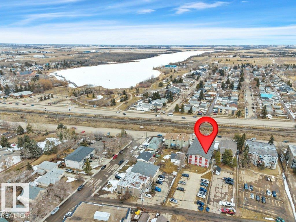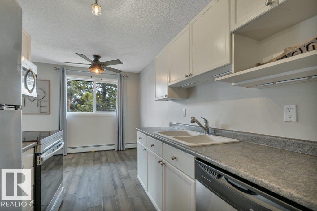 Welcome to this top-floor condo in the desirable Alexandra Park community in the heart of Leduc. Ideally located within walking distance to downtown amenities and Telford Lake, offering birdwatching, 8 km of scenic trails, and non-motorized boating. This well-maintained, quiet building features only 15 units and includes convenient rear parking close to the entrance. Inside, the bright and inviting unit offers a spacious living room, separate dining area, and a functional galley kitchen with under-cabinet lighting and stainless steel appliances. The unit includes two bedrooms, including a generous primary, and a full 4-piece bathroom. Additional features include in-suite laundry, a storage room, and a private balcony to enjoy summer evenings. Stay cool indoors with the included portable A/C. Close to shopping, dining, and all amenities. (id:63190)