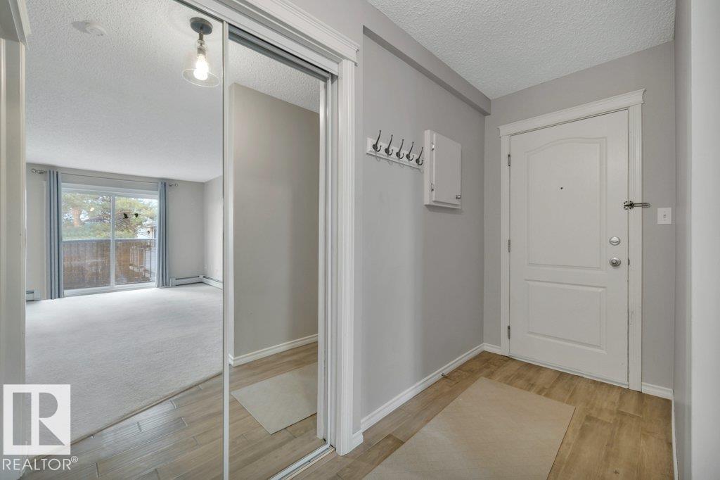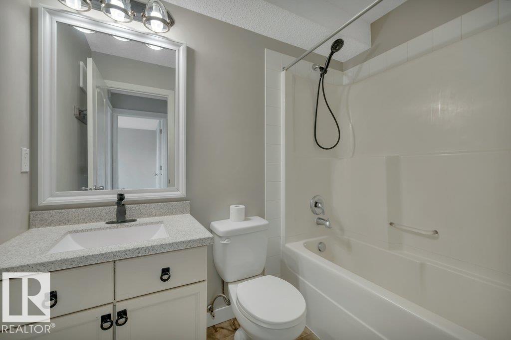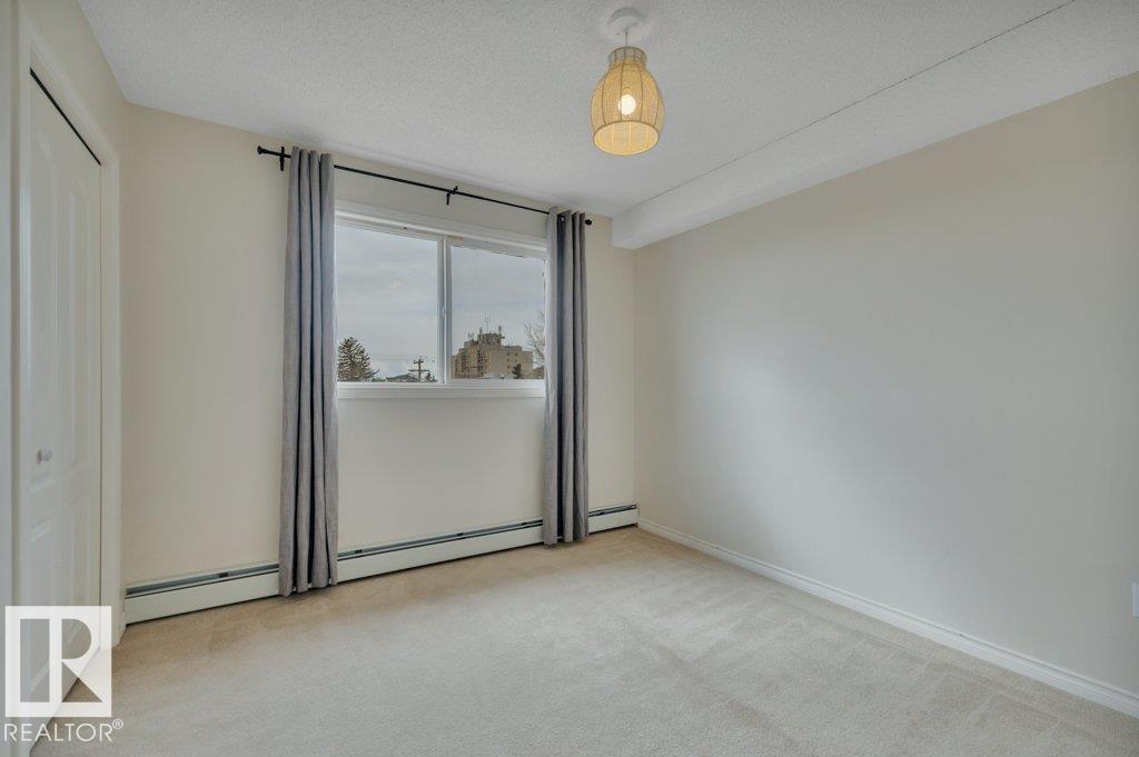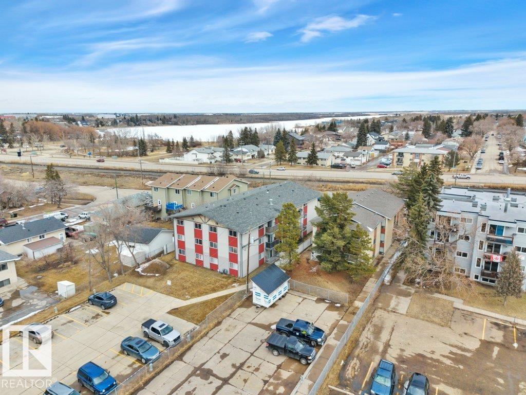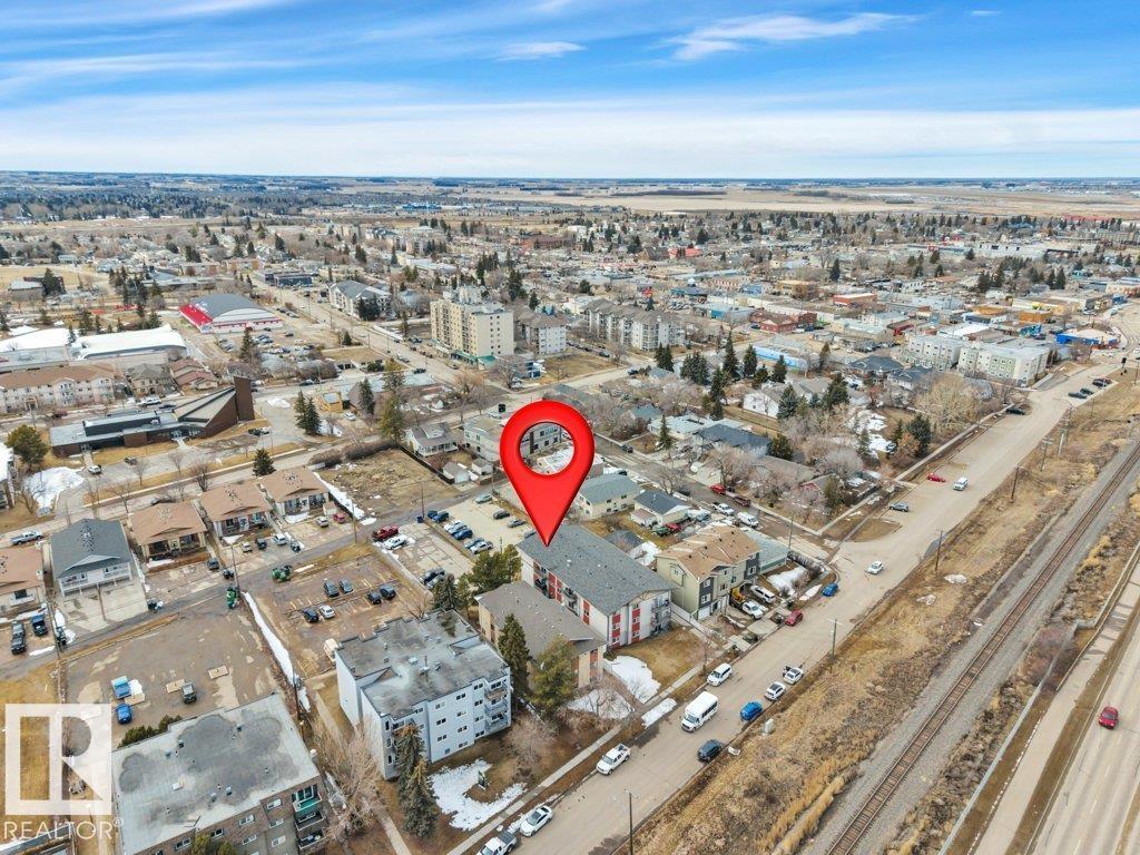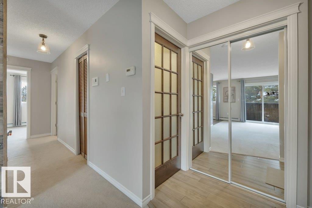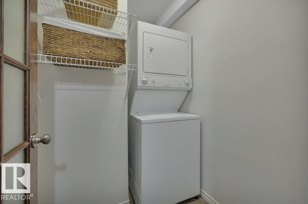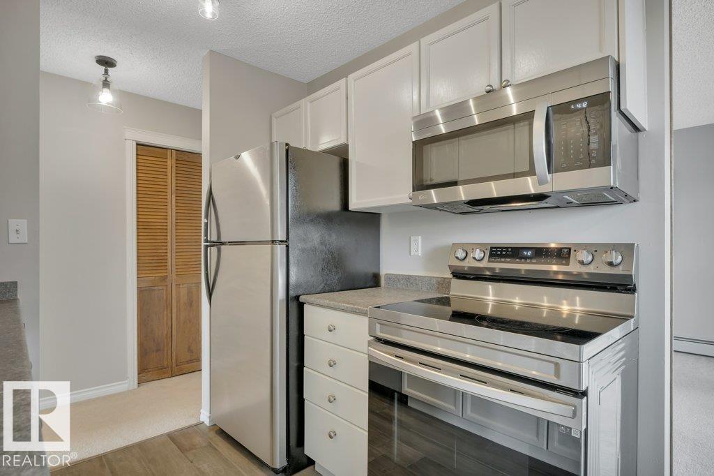 Welcome to this top-floor condo in the desirable Alexandra Park community in the heart of Leduc. Ideally located within walking distance to downtown amenities and Telford Lake, offering birdwatching, 8 km of scenic trails, and non-motorized boating. This well-maintained, quiet building features only 15 units and includes convenient rear parking close to the entrance. Inside, the bright and inviting unit offers a spacious living room, separate dining area, and a functional galley kitchen with under-cabinet lighting and stainless steel appliances. The unit includes two bedrooms, including a generous primary, and a full 4-piece bathroom. Additional features include in-suite laundry, a storage room, and a private balcony to enjoy summer evenings. Stay cool indoors with the included portable A/C. Close to shopping, dining, and all amenities. (id:63190)