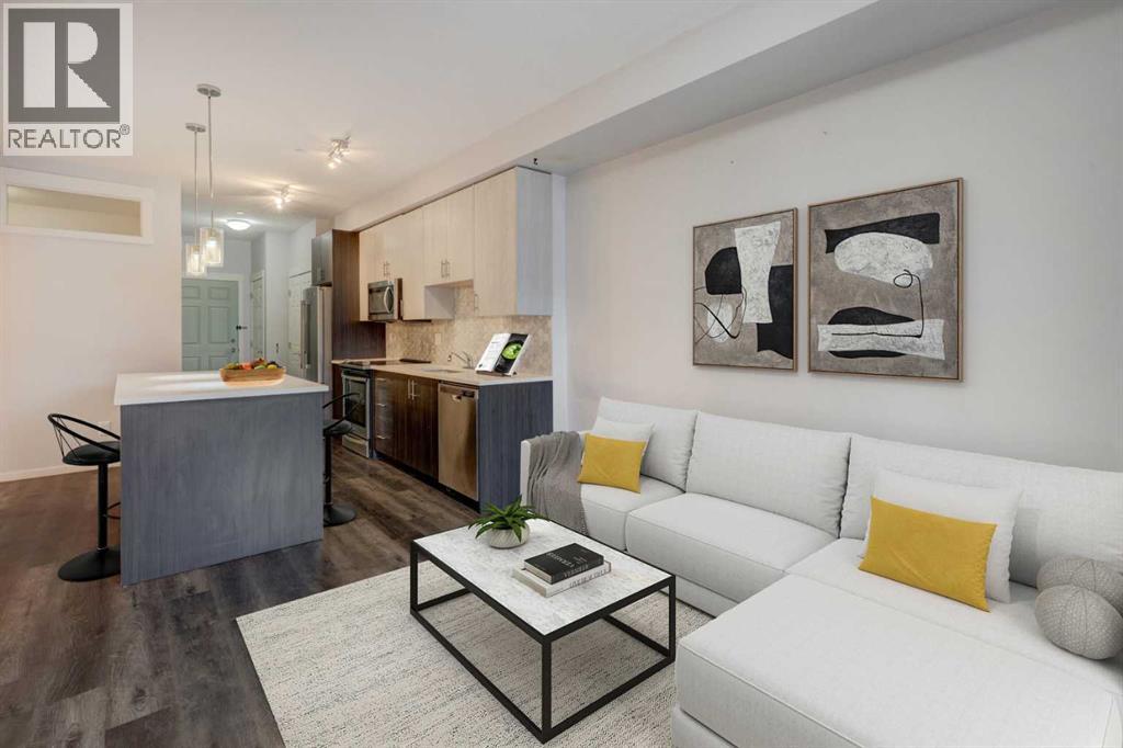 Welcome to modern & convenient living in the heart of Sage Hill – a desirable, family oriented community with every amenity you could want. This very affordable home is ideal for first-time buyers, downsizers or investors. The 2 bedroom/2 bathroom unit offers a very functional open concept layout with 9 foot ceilings throughout. The contemporary style kitchen comes with a generously sized center island, solid quartz countertops, lots of soft close cabinetry & drawers throughout. The spacious, well laid out kitchen also comes with stainless steel appliances including: over-range microwave, stove, fridge and built in dishwasher. If you enjoy cooking, this is an awesome kitchen. The primary bedroom includes a walk-through closet that leads to a 4-piece ensuite bathroom. Asecond bedroom is also very generously sized, great for family or guests. The second bedroom can also easily serve as; an office, a hobby space, storage or a mix. This cozy home also comes with a fenced in walk-out patio, in-suite laundry, titled parking stall out front (very conveniently located), along with an additional storage unit in the parkade for bicycles, skis and other accessories. The unit is smoke free and pet free (although pets are allowed, subject to the condo bylaws). As a final touch, the very reasonable condo fee covers most utilities!The home is located minutes from every amenity imaginable; from shopping, restaurants, fitness centers to the abundant tranquil green spaces that permeate the area. Come check out this very cozy & affordable home today! (id:63190)