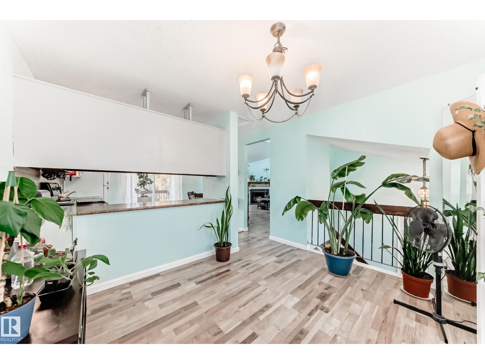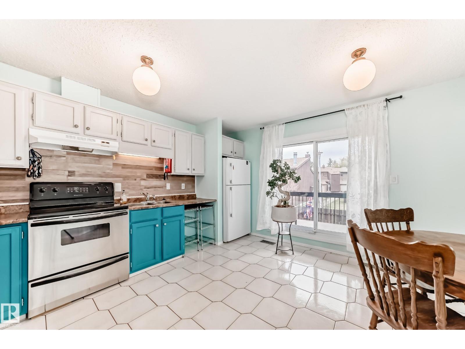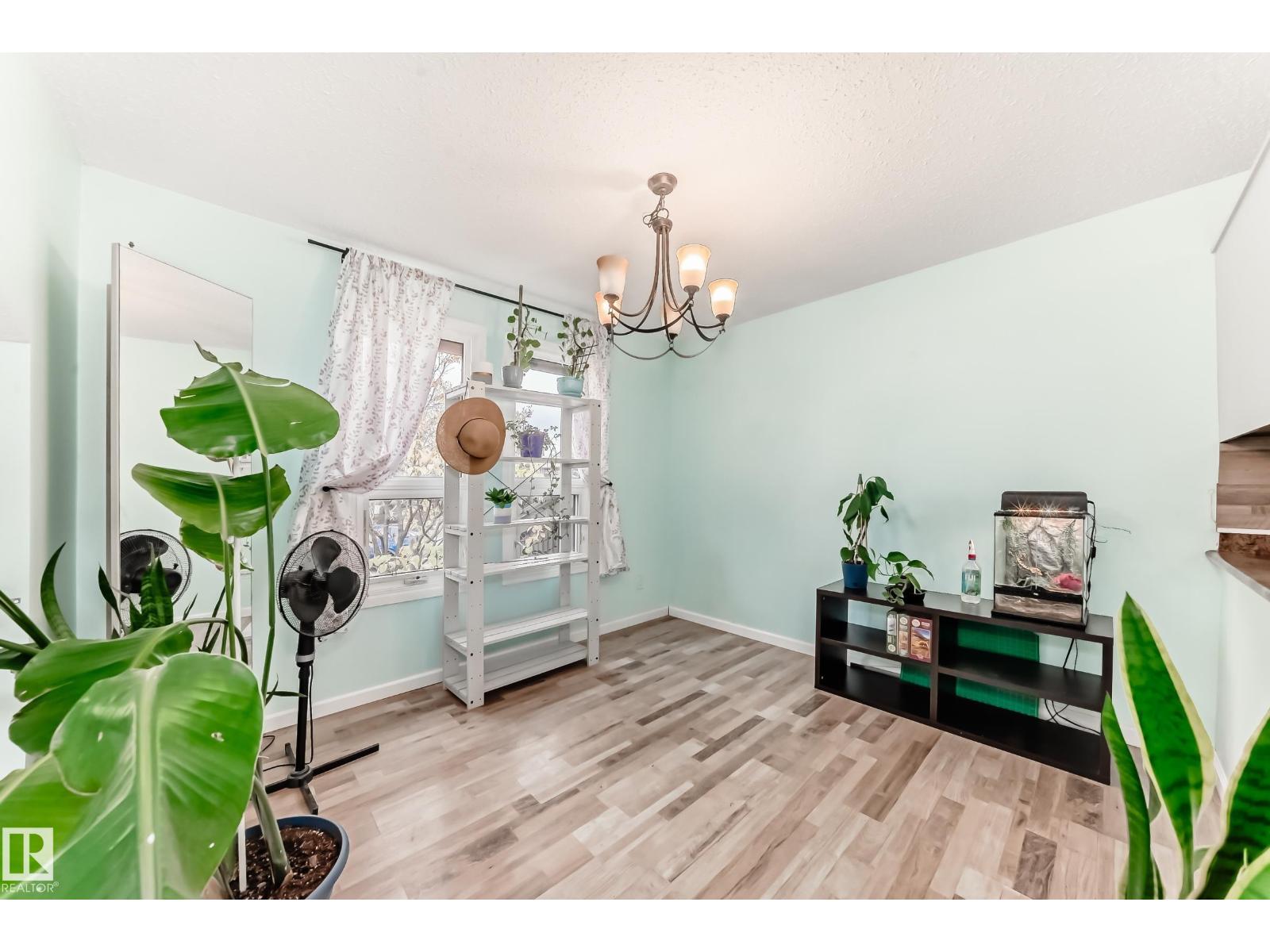 FANTASTIC HOME & COMPLEX! This 3-bedroom bi-level townhouse with an attached garage offers an exceptional layout and bright, welcoming spaces. The main floor features vaulted ceilings, abundant natural light, a spacious kitchen with an eat-in area, and a separate dining room that can easily double as a den or home office. You’ll also find a large living room, a convenient 2-piece bath, and a storage room. The lower level includes three generous bedrooms, a full main bath, laundry/utility area, and large windows that let in plenty of sunlight. Enjoy the south-facing yard backing onto green space — complete with a covered balcony, extra storage, and a concrete patio for relaxing or entertaining. This well-managed complex has seen numerous recent upgrades, including new windows, doors, shingles, parking lot, and roads. It also sides onto Bannerman Park and the local community league — perfect for outdoor activities and community living. Furnace and hot water tank have been updated. (id:63190)