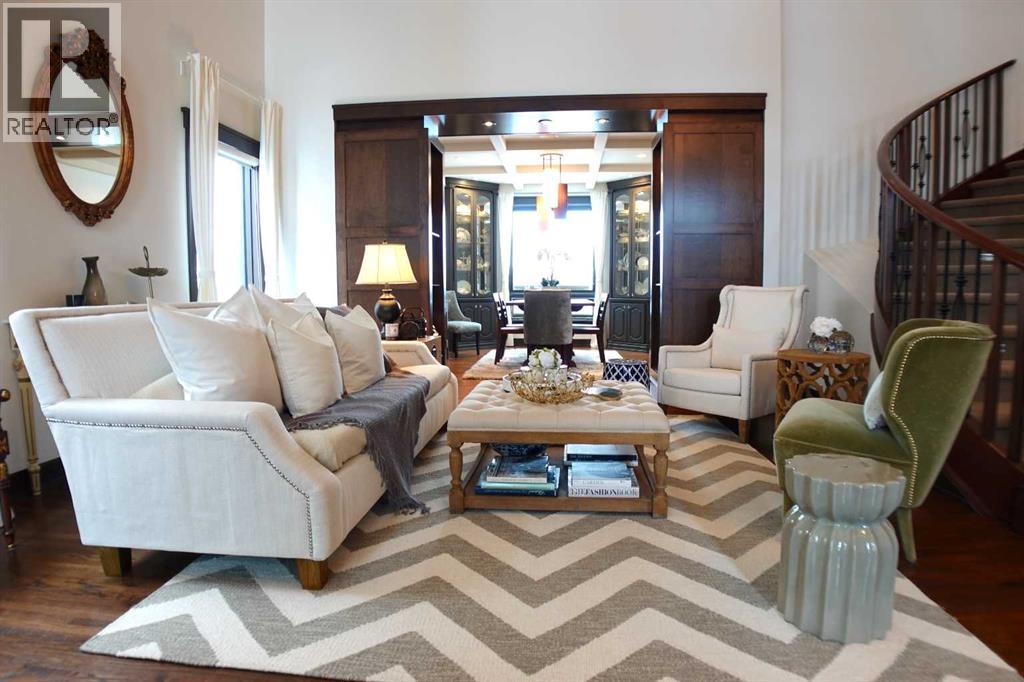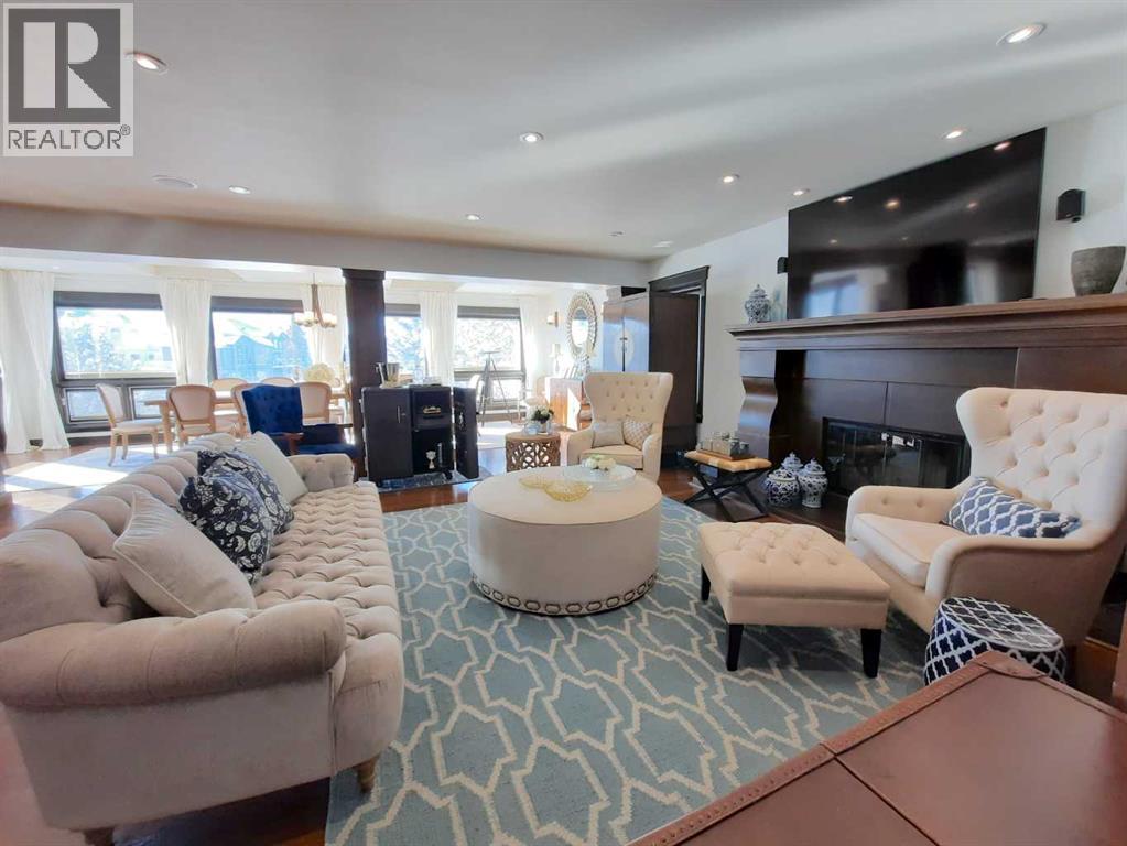 Lakefront 2-storey walkout offers panoramic water views from all levels, 3+2 bedrooms, 4 full and 2 half bathrooms, and a heated triple-car garage. The main level features hardwood floors, 2-storey ceilings in the grand foyer, a formal dining room, with a gourmet kitchen designed and built by Legacy kitchens, along with premium stainless steel appliances. A large breakfast nook leads to the upper deck. A functional main floor laundry room/mudroom offers ample storage. The upper level includes a luxurious primary retreat with a private balcony over looking the lake, 7 piece spa-like ensuite that includes a traditional clawfoot tub and 2 walk in closets. Two over sized additional bedrooms each feature private ensuites and built-in desks. The fully developed walkout basement is built for entertaining with a wine room, recreation room, full wet bar, fireplaces, TV area and 2 additional bedrooms with an ensuite. A oversized back yard that is landscaped with dock access makes this place a dream home. The list of improvements is long and the house has been meticulously maintained, everything still looks brand new. (id:63190)