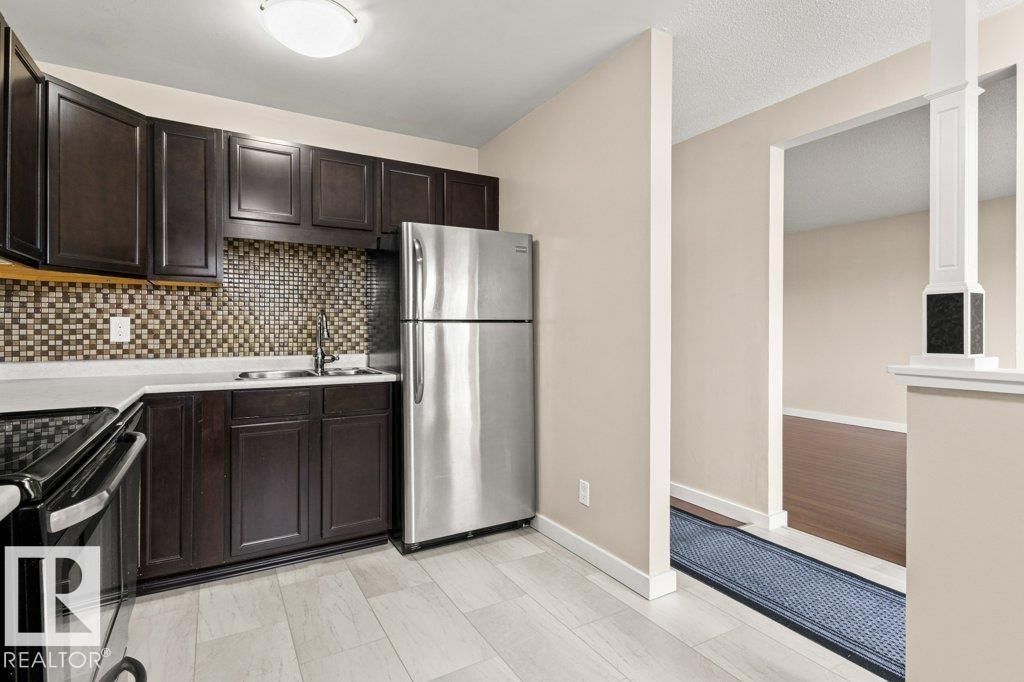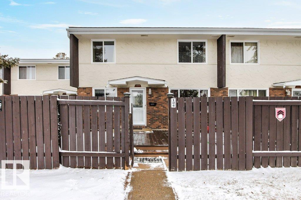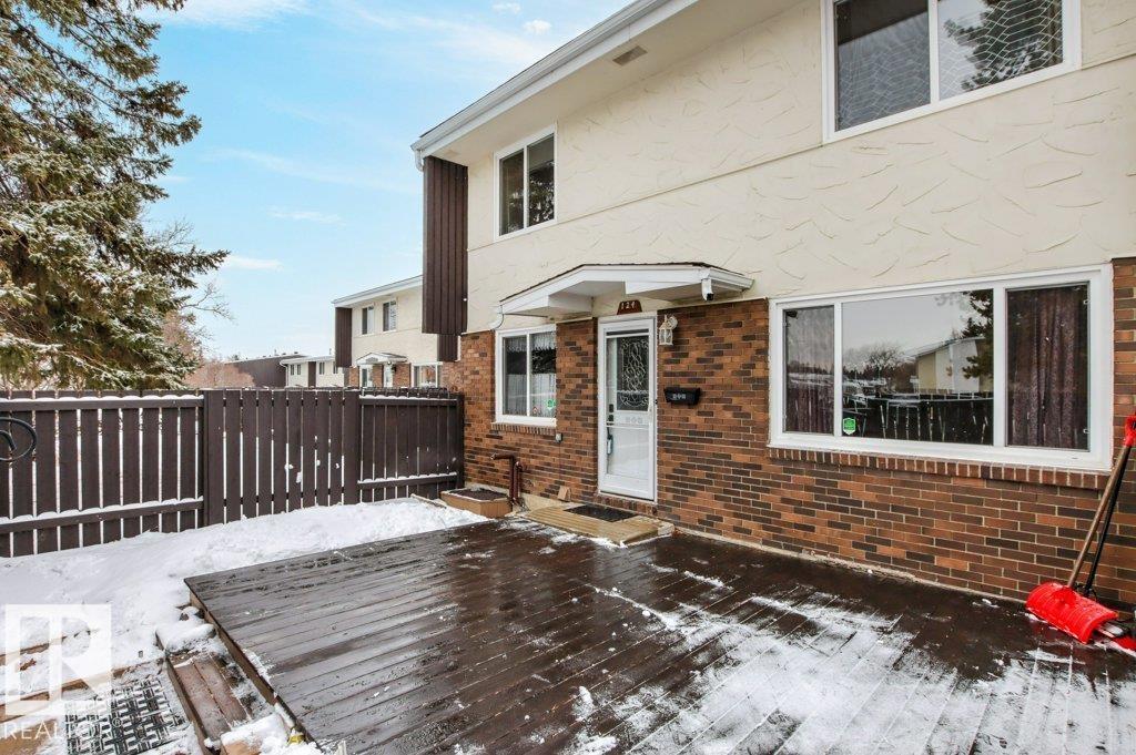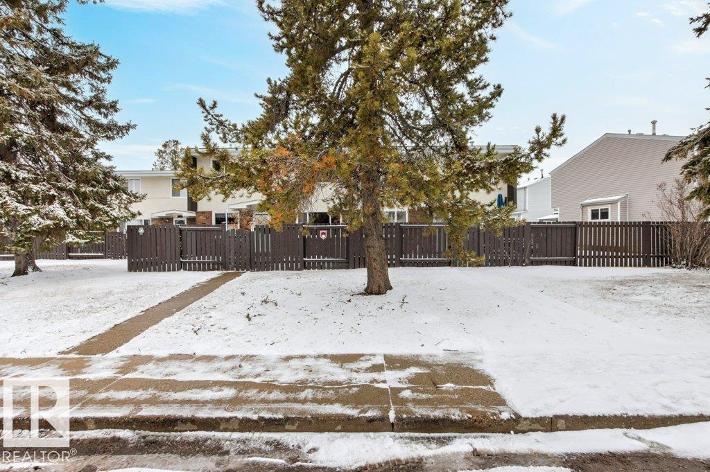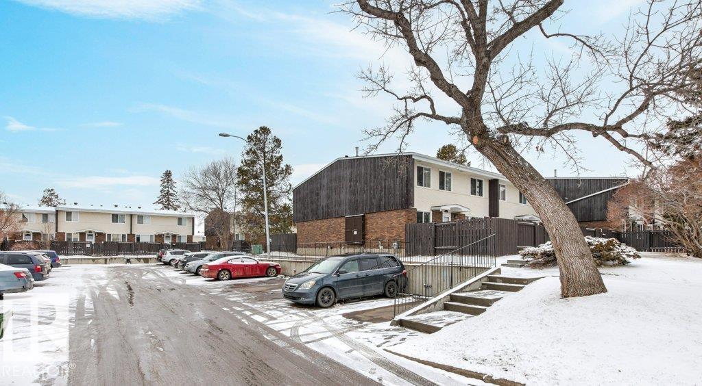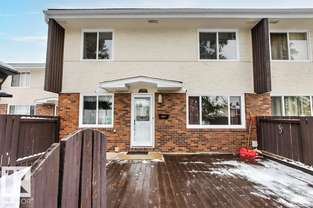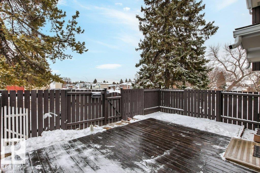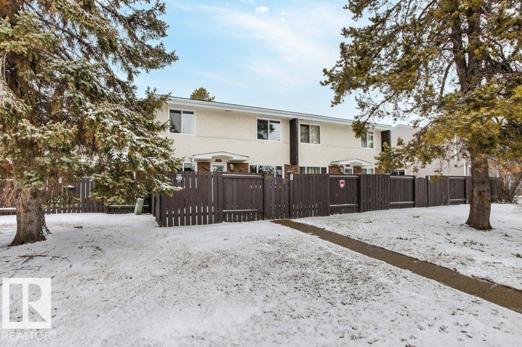 IMMACULATE & MOVE-IN READY! CUTE & CLEAN townhouse checks ALL the BOXES! Freshly painted 2 storey END UNIT in Northmount has a fully fenced yard w/ LG. deck. Impressive condo w/ new luxury vinyl flooring in kitchen & entrance. Kitchen w/ dining nook has loads of cupboards & counter space, stainless steel appliances, trendy backsplash & pantry cabinet gives many options. Adjacent living room/dining room offers big picture window & flooring w/ warm rich tones. 2-piece bath is stylish w/ extra cabinet + more storage space complete main level. Plush carpeting on the stairs leads to upper level; featuring massive primary w/ brand new carpet, oversized double closet & ceiling fan. Another oversized bedroom w/ lg- closet & 4-piece bath w/glamour mirror & lighting plus tile tub surround. FULLY FINISHED basement has endless opportunities; home office, gym, media room or playroom. Utility room w/ workbench & built-in cabinets. Close to Henday, Yellowhead, Downtown, Transit, Shopping & Schools. PLUS LOW CONDO FEES! (id:63190)