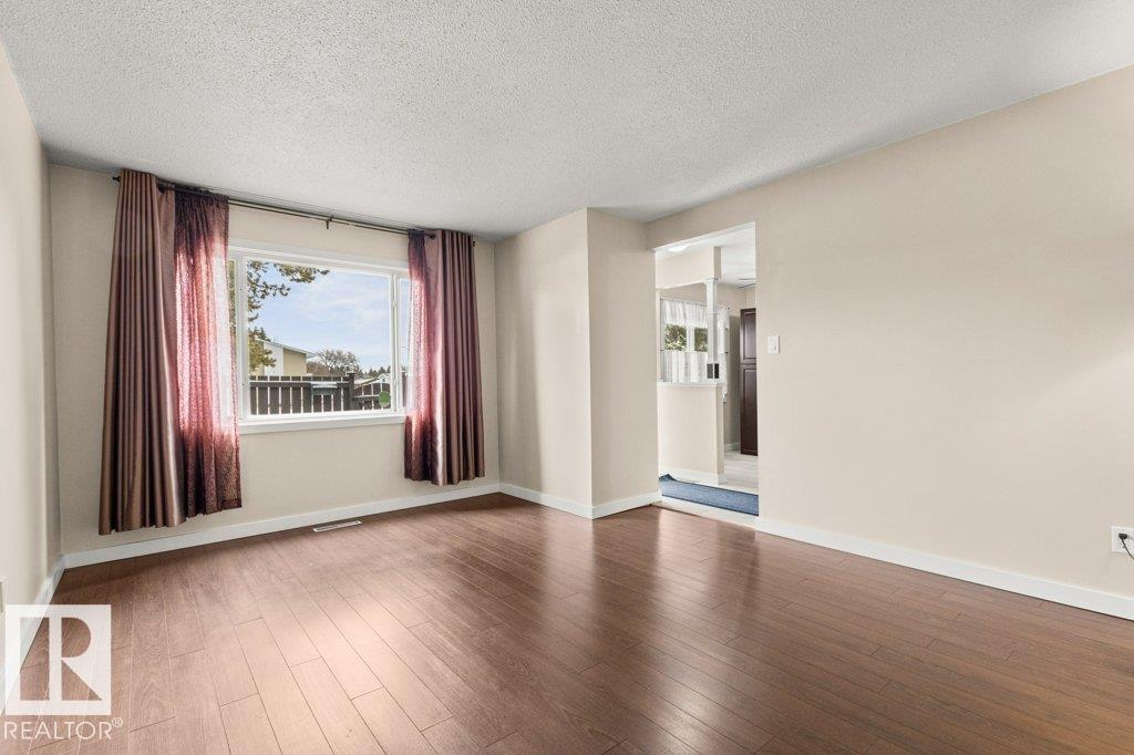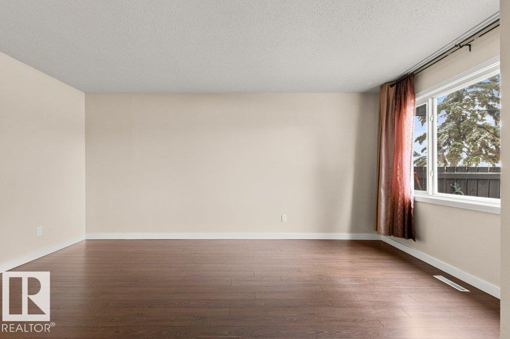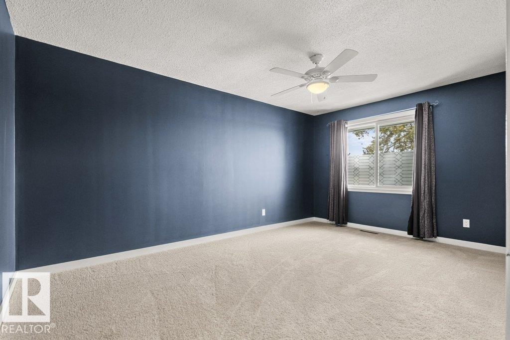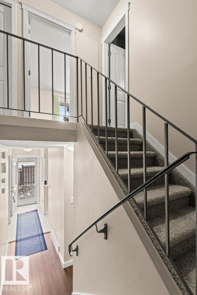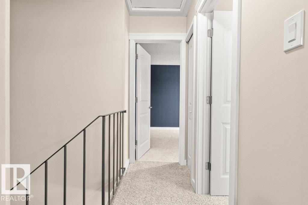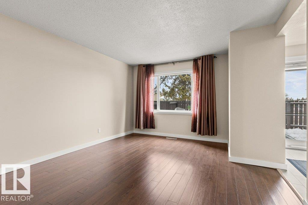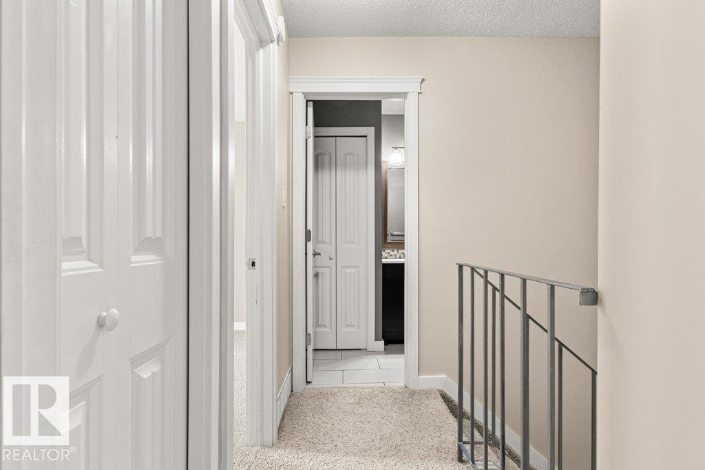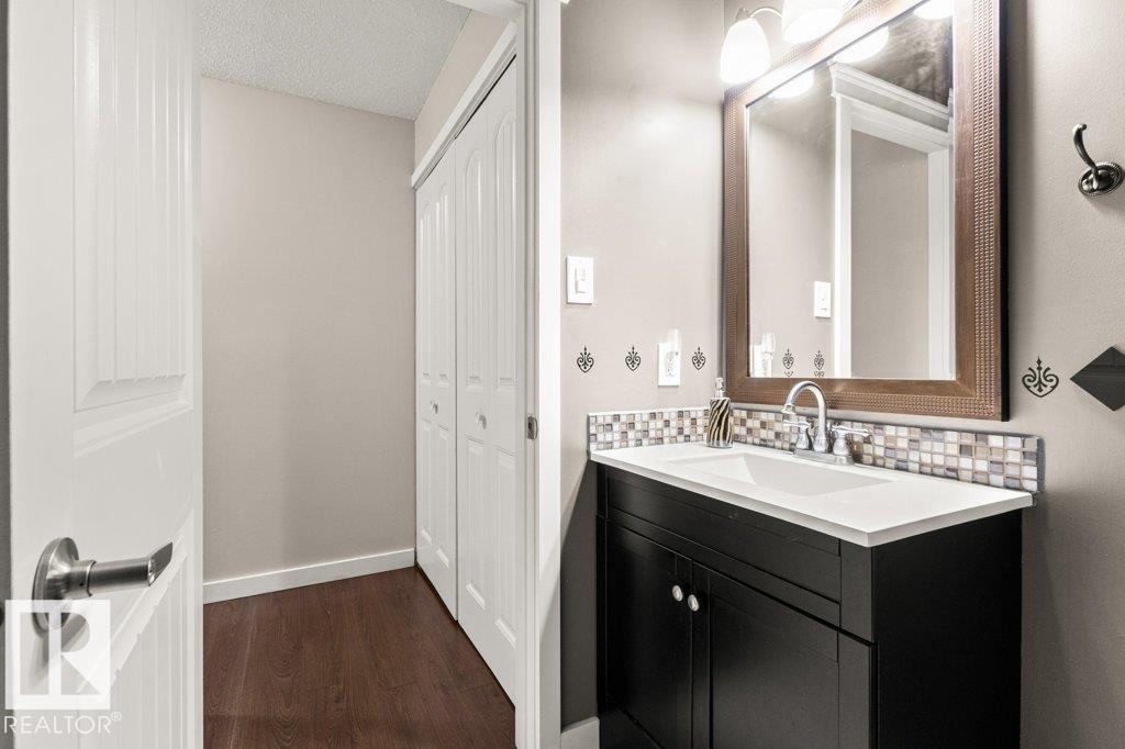 IMMACULATE & MOVE-IN READY! CUTE & CLEAN townhouse checks ALL the BOXES! Freshly painted 2 storey END UNIT in Northmount has a fully fenced yard w/ LG. deck. Impressive condo w/ new luxury vinyl flooring in kitchen & entrance. Kitchen w/ dining nook has loads of cupboards & counter space, stainless steel appliances, trendy backsplash & pantry cabinet gives many options. Adjacent living room/dining room offers big picture window & flooring w/ warm rich tones. 2-piece bath is stylish w/ extra cabinet + more storage space complete main level. Plush carpeting on the stairs leads to upper level; featuring massive primary w/ brand new carpet, oversized double closet & ceiling fan. Another oversized bedroom w/ lg- closet & 4-piece bath w/glamour mirror & lighting plus tile tub surround. FULLY FINISHED basement has endless opportunities; home office, gym, media room or playroom. Utility room w/ workbench & built-in cabinets. Close to Henday, Yellowhead, Downtown, Transit, Shopping & Schools. PLUS LOW CONDO FEES! (id:63190)