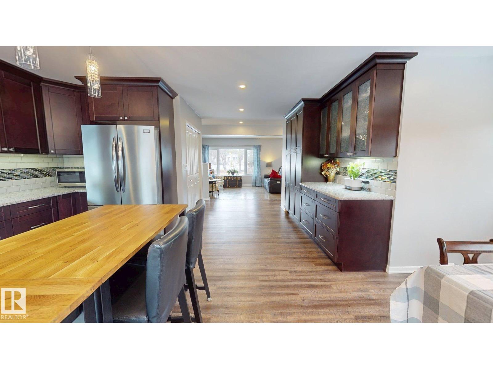 Fully renovated, open concept bungalow in desirable Capilano. Close to schools, river valley, parks, shopping, services, downtown and Anthony Henday Drive. Large well-maintained yard with established flower gardens, raised vegetable planters, zero maintenance vinyl fence and composite deck. Featuring a legal basement suite for additional income potential. Main floor big and bright kitchen with new cabinets, quartz countertops stainless steel appliances is perfect for meal prep and entertaining. Warm and inviting living room with original hardwood floors and tray ceiling. Gas fireplace with live edge reclaimed wood mantel. Remodeled upstairs bathroom has 2 vanities with separate soaker tub and spacious shower. On demand hot water! Large master bedroom with walk-in closet fits a king-sized bed. Third bedroom with separate ensuite, bonus space and shared laundry room downstairs. Legal income suite has a separate entrance and is move in ready with furniture included. (id:63190)