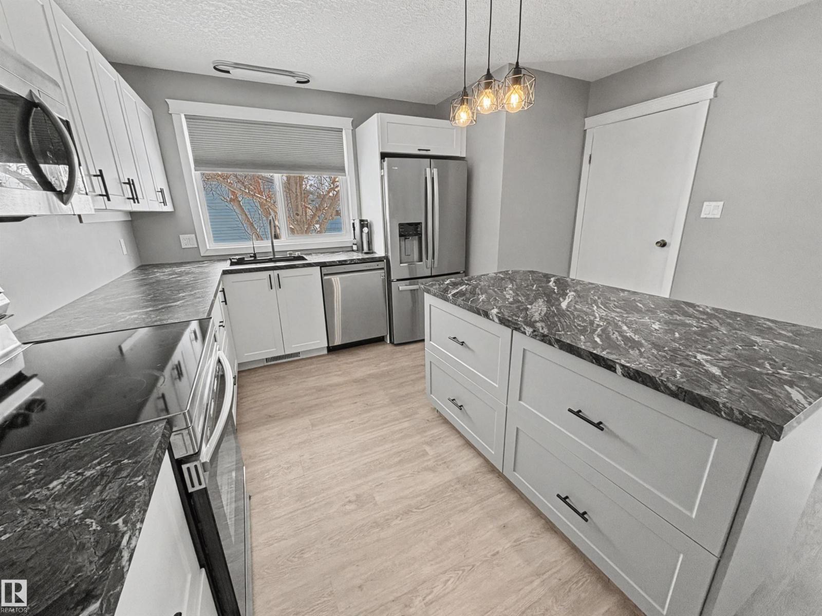 Home Sweet Home! The perfect blend of comfort, convenience & modern living on a lot & a half. Boasting many updates, this bungalow is sure to impress! A spacious living room greets you with large windows & vinyl plank flooring. The dining area features built in storage unit, while the well-designed kitchen offers an eat-at island & stainless steel appliances. 3 berms & 3 baths, including a primary suite with 3-pc ensuite & large closet. The partially developed basement offers potential for a rec room, office & tons of storage. Enjoy the extras: main floor laundry & central A/C. Most upgrades have been completed within the last 6 years, including main flooring/paint/light fixtures, kitchen cabinets, appliances, furnace, shingles & most windows. Step outside to a huge landscaped, fenced yard with a gate for back alley access. An attached single garage & extra-long concrete driveway! Situated in a great neighborhood close to parks, lakeshore walking/ biking trail & hospital! Welcome to Your New Happy Place! (id:63190)