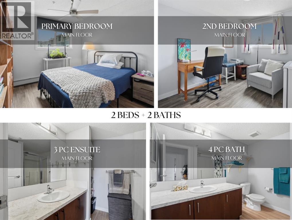 This beautifully maintained 2 bedroom, 2 bathroom condo on the 3rd floor offers a bright and functional open-concept layout with 848 Sq Ft of comfortable living space.Step inside to a spacious living area filled with natural light from large windows, seamlessly connecting to the dining space and kitchen—perfect for everyday living and entertaining. The kitchen is both practical and inviting, featuring a central island with extendable design and counter-height seating, laminate countertops, newer stainless steel appliances, and a modern induction/convection stove, along with ample cabinetry and pantry storage.The well-designed floor plan separates the bedrooms with the living area in between, providing added privacy. The primary bedroom includes a walk-through closet leading to a private 3-piece ensuite with built-in shelving. The second bedroom is generously sized and positioned near the 4-piece main bathroom, ideal for guests, family, or a home office.Additional highlights include recently updated luxury vinyl plank (LVP) flooring throughout, in-suite laundry with extra storage, and window coverings. Stay comfortable year-round with the included A/C unit, a valuable feature for warm summer months. Enjoy your private balcony with gas BBQ hookup, perfect for relaxing or entertaining.This unit also comes with a titled underground parking stall and a separate storage unit (approx. 3.5 ft x 8 ft) conveniently located right beside the parking stall, offering easy access and added functionality.Situated in a prime location, you’re just steps from walking paths, scenic ponds, parks, and everyday amenities, with quick access to shopping, schools, public transit, Vivo Recreation Centre, and major routes including Deerfoot Trail and Stoney Trail.A bright, well-kept home offering comfort, flexibility, and a fantastic lifestyle in the heart of Country Village. (id:63190)