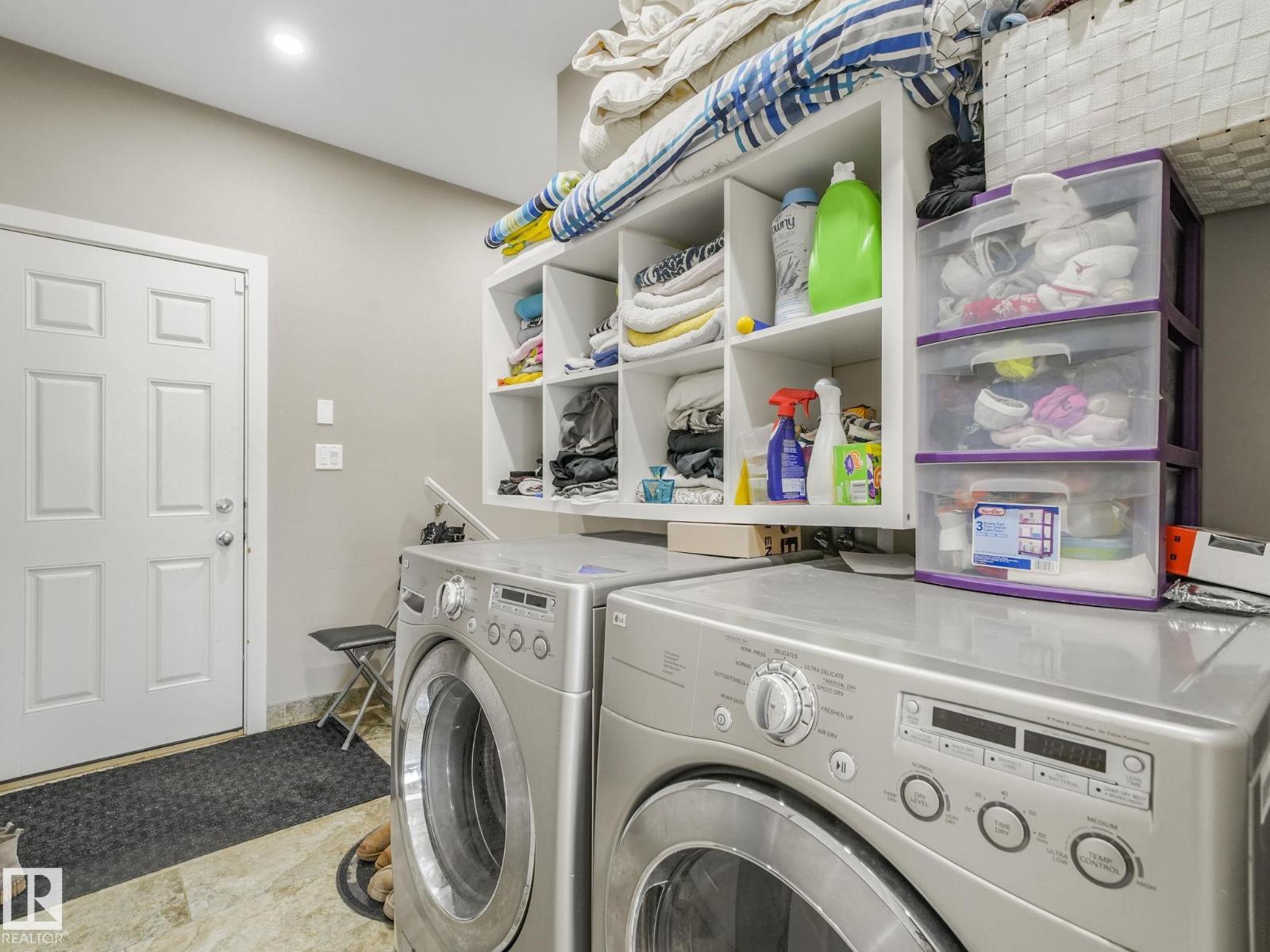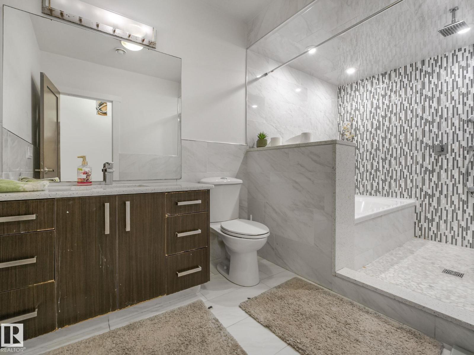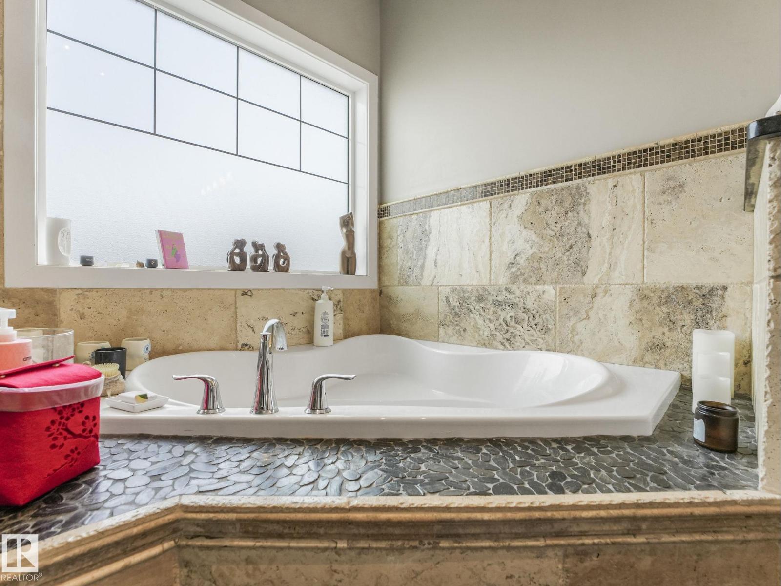 Amazing location with WALKOUT basement LEGAL suite backing onto the lake. This walkout bungalow features a fully finished legal suite, making it the perfect mortgage helper or investment property, offering stunning views and serene surroundings. The main floor boasts a gourmet kitchen with stainless steel appliances, granite countertops, and rich Brazilian walnut hardwood flooring. A two-sided travertine ledge-stone fireplace adds warmth and elegance, shared with the spacious primary bedroom, which also includes a luxurious ensuite with a large shower and heated marble floors. The legal suite is finished to a high standard with in-floor heating, its own laundry, a modern kitchen with quartz countertops and double wall ovens, and a 4-piece bathroom featuring a walk-in shower and large tub. Complete with a massive aggregate concrete deck, this home is perfect for relaxing or entertaining while taking in the beautiful park and pond views. (id:63190)