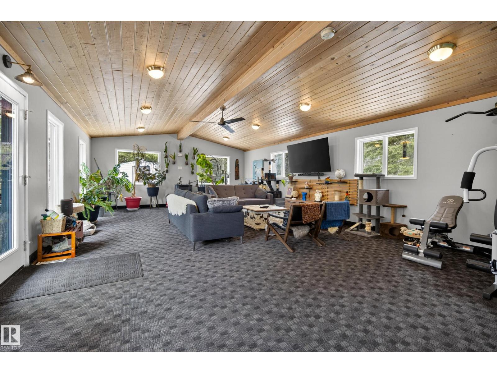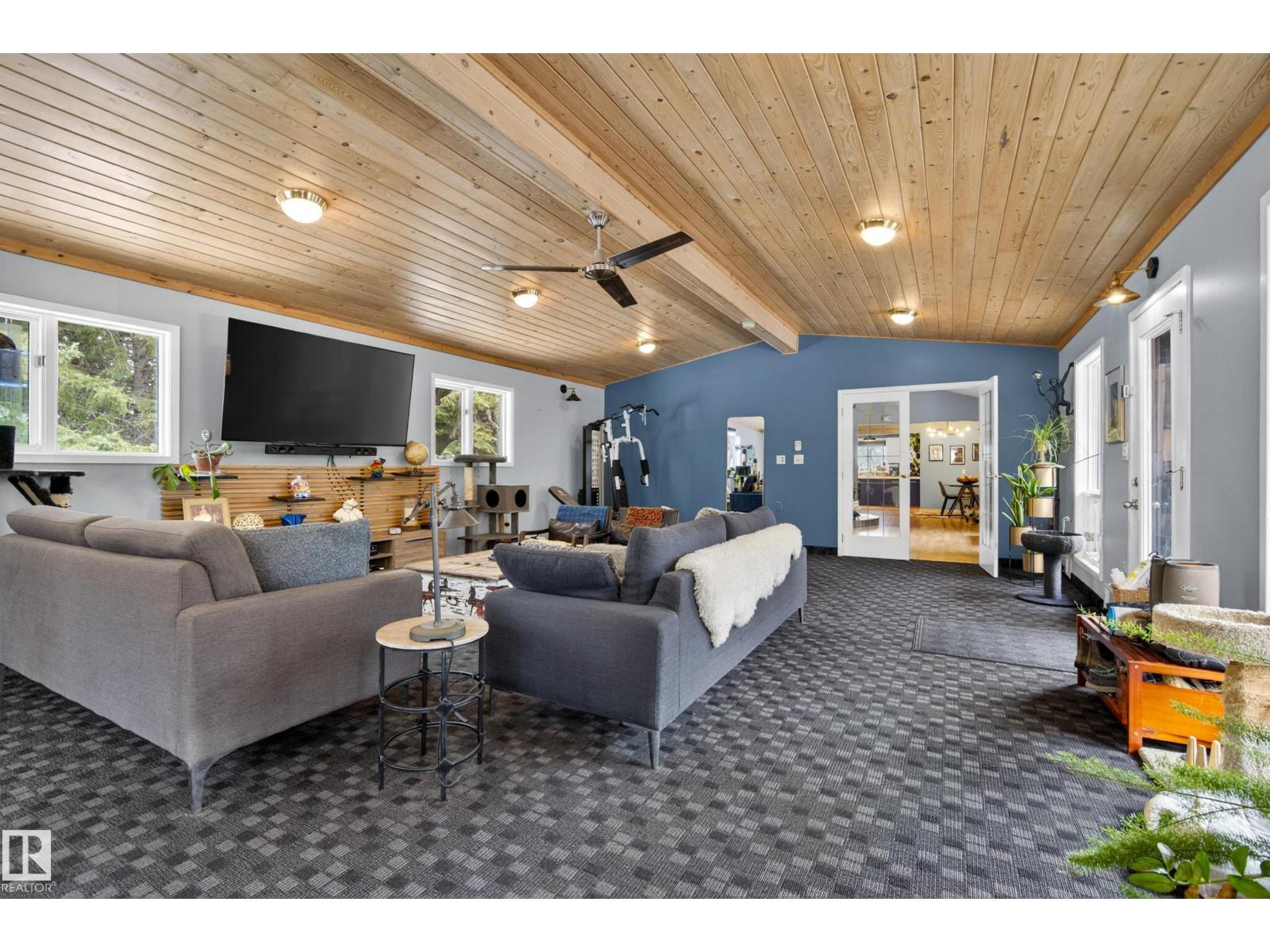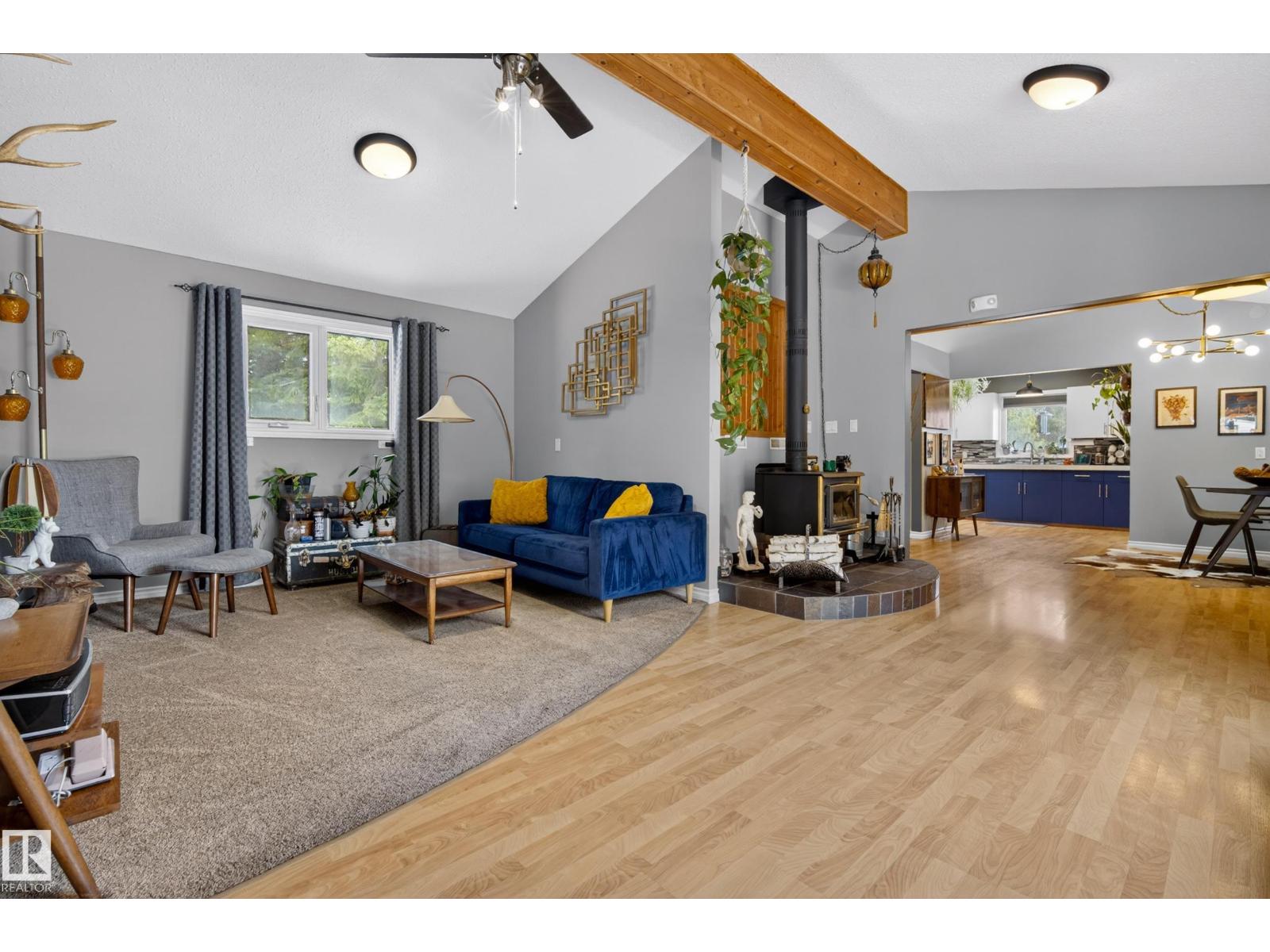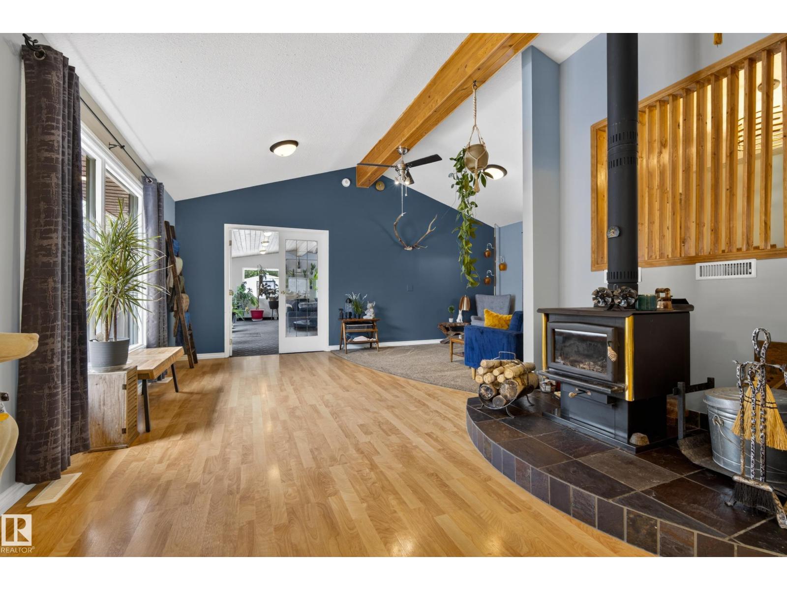 Welcome to an EXTREMELY PRIVATE 4.53 acre property just minutes from Pigeon Lake! Gated, crossed fenced, SET UP FOR HORSES...this newly renovated property has everything you could ask for! As you step inside this thoughtfully designed 2320 sq. foot bungalow you are greeted by a colossal sized foyer, 3 pce bath, laundry area & a lrg storage area w/room to spare for extra storage. This home has two generously sized bdrms in addition to an office area/den. The primary bdrm serves as your private retreat w/room enough for a future ensuite. This area of the home is completed with a well designed 4 pce bthrm. With the OPEN BEAM/OPEN CONCEPT setting, the heart of this home effortlessly blends the kitchen, dining & living areas creating a welcoming space where family and friends can gather and feel right at home. The outdoor space is a true highlight with a 3 STALL BARN, 4 PADDOCKS, ROUND PEN, & OUTDOOR TRACK with GAZEBO, GREENHOUSE, raised garden beds, and a spacious deck for entertaining. Come out and see it ! (id:63190)
