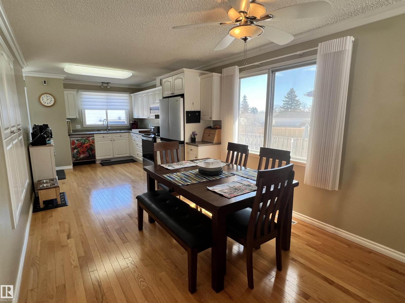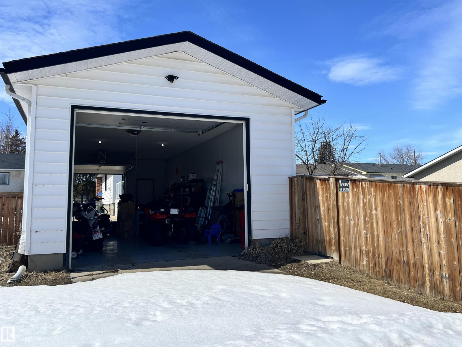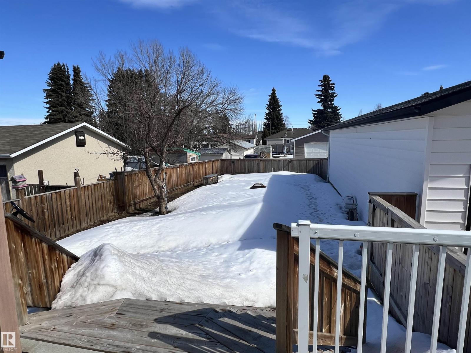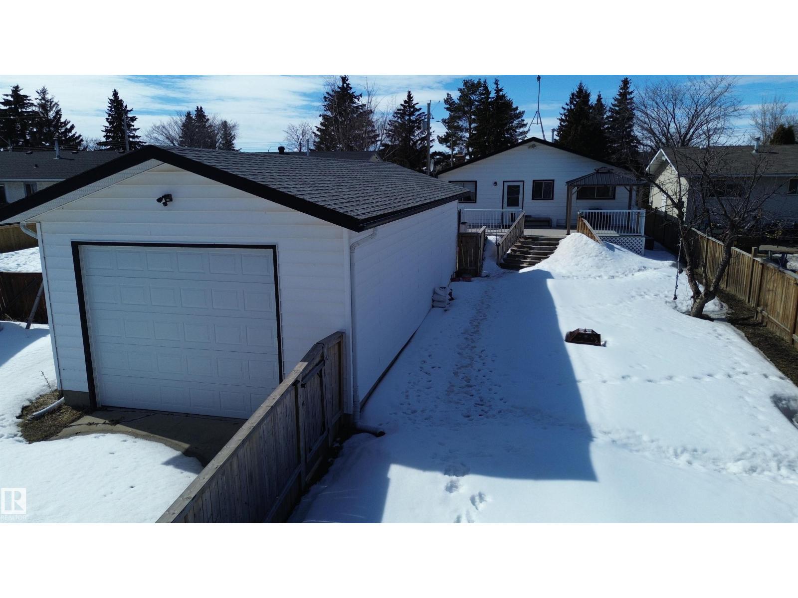Running out of room? This is the place! This property packs a lot in over 1200 sq ft of main floor space - a large open concept kitchen, dining, and living room with HARDWOOD throughout, primary bedroom with a three piece ENSUITE, and two additional bedrooms with a four piece bathroom, with MAIN FLOOR LAUNDRY and tons of storage space. Downstairs are two additional bedrooms, a three piece bathroom, and a large family room and wet bar space with a beautiful large BRICK FIREPLACE - perfect for entertaining or cozy movie nights. Outside is a large backyard, nice long driveway and DRIVE THROUGH GARAGE deep enough to fit two vehicles inside with a TEN FOOT GARAGE DOOR at the back for larger vehicles or an RV - with both front and back lane access. Well-kept with newer deck, hot water tank, and shingles - and also including NEW AIR CONDITIONING. Easy commute to CFB Edmonton and St. Albert, come see what this property has to offer! (id:63190)