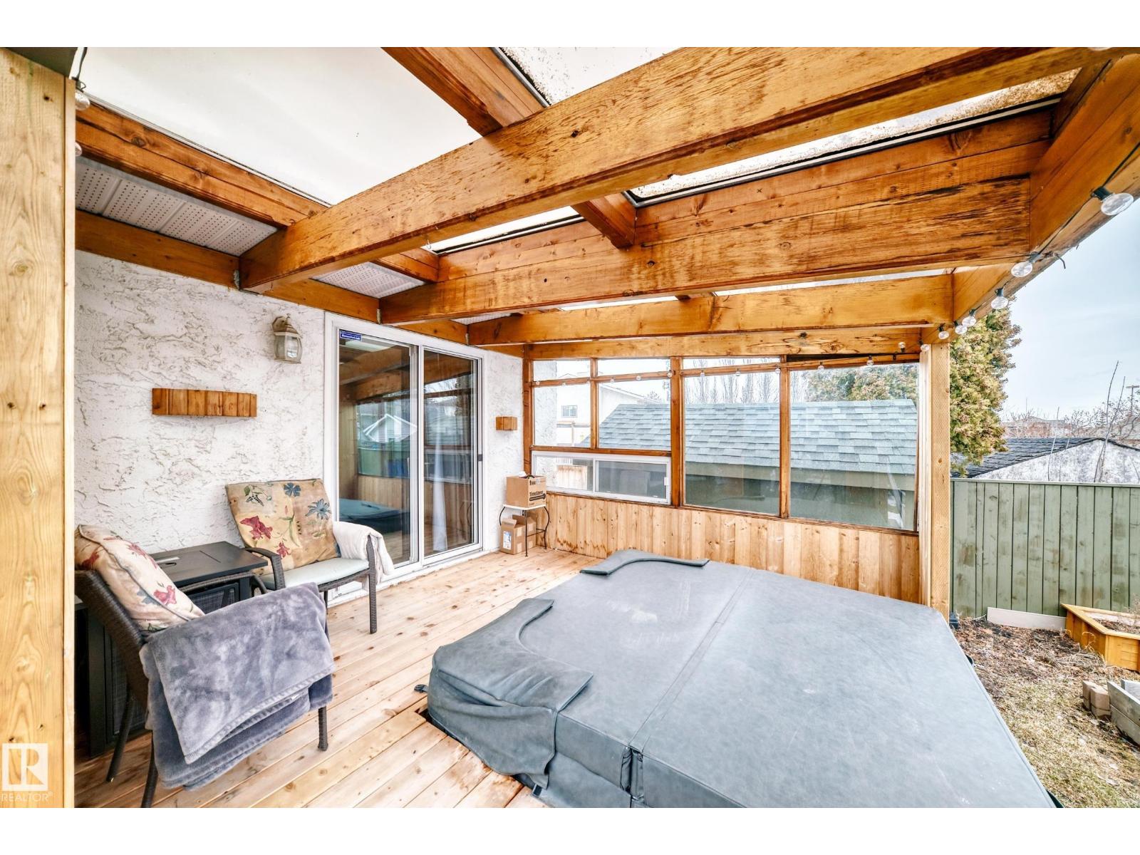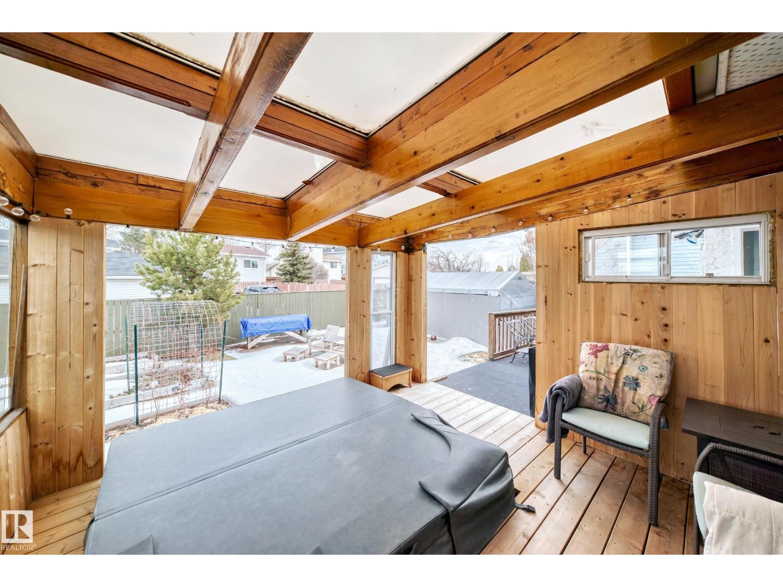 Welcome home to this well-maintained Raised Bungalow nestled in a friendly cul-de-sac in Lago Lindo! This professionally renovated bungalow offers over 2900 sq ft of finished living space, complete with a new roof (2021), updated HE furnace, solid hardwood floors & an 8-person hot tub in a custom cedar-clad gazebo to be enjoyed all year round. With 4 bedrooms, 2 living rooms, 3 bathrooms, a separate dining area and a theatre room - you have a home built for the whole family! The 1376 sqft fully finished basement includes cork flooring, tile shower, custom cedar sauna, ample storage and a pre-wired home theater. The 8ft ceilings and big windows give you one of the brightest basements you'll find. The exterior boasts a large driveway, a heated garage with 12ft ceilings, massive garden space, and an existing 24'x24' pad with gated alley access for RV parking or a future garage! Don't miss out! (id:63190)
