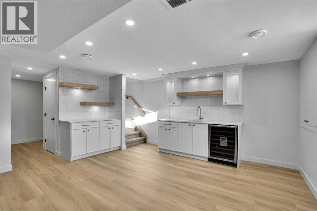 Welcome to 77 Ferncliff Crescent SE, a fully renovated bungalow located on a massive lot in the heart of Fairview, one of Calgary’s most established and desirable communities.This beautifully updated home offers 5 bedrooms and 3 full bathrooms with a thoughtful layout that suits families, investors, or multi-generational living. The main floor features 3 bedrooms, including a spacious primary retreat with a private ensuite, along with a second full bathroom.The main living area is bright and modern, highlighted by a sleek electric fireplace and designer accent walls throughout. The showpiece kitchen showcases custom cabinetry, a large island with waterfall countertops, and contemporary finishes that blend style with function.Downstairs, the fully finished basement includes 2 additional bedrooms, a full bathroom, a large living space with a second electric fireplace, and a stylish built-in bar, making it perfect for entertaining, guests, or extended family living.This home has been extensively upgraded from top to bottom with new windows, a new furnace, new hot water tank, fully upgraded plumbing and electrical, light-up heated mirrors in the bathrooms, a brand new garage door, and a fully upgraded exterior that adds to its curb appeal.Located on an oversized lot in a quiet, family-friendly location close to schools, shopping, transit, and major routes, this is a truly turnkey property offering modern living in a classic neighborhood.A rare opportunity to own a completely renovated bungalow in Fairview. (id:63190)