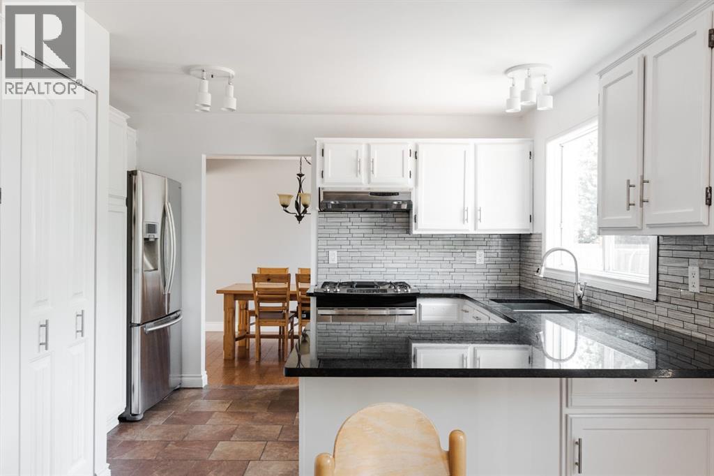 4 Bedrooms Upstairs | Driveway for 4 | Large Pie Lot on Green Space | Incredible Family Home. Welcome to 182 Sifton Avenue: A spacious and character-filled home situated on a quiet street in one of Thickwood’s most established and desirable neighbourhoods. Set on a large pie-shaped lot, this well-maintained property offers incredible functionality with a four car driveway, an attached heated double garage, and gated access to the backyard for additional secured storage—perfect for RVs, trailers, or recreational toys. With four bedrooms upstairs, two more on the lower level, and a sunny backyard oasis, this is an ideal home for growing families or anyone looking for long-term comfort and space.The exterior exudes timeless charm with green painted siding paired with classic brick, manicured garden beds, updated shingles, and a covered front porch that sets a welcoming tone. The oversized lot widens at the rear, giving you a fully fenced, west-facing backyard bathed in sunshine throughout the day—complete with a large deck ideal for entertaining or envisioning your future backyard pool.Step inside to a warm and inviting main floor layout. The front living room features large picture windows and a brick wood-burning fireplace, creating a cozy gathering space. The adjacent dining room offers room for formal entertaining and connects seamlessly to the bright kitchen at the back of the home. Here, refinished white cabinetry, black granite countertops, and stainless steel appliances including a gas range elevate the space, while a coffee bar with a second fridge adds everyday convenience. Garden doors lead out to the rear deck, making indoor-outdoor living effortless. A two piece powder room and access to the enclosed hot tub area complete the main level.Upstairs, you’ll find four generously sized bedrooms, including a spacious primary retreat with a private two-piece ensuite. A centrally located four piece bathroom provides easy access for the other bedrooms. The lower level of the home offers tile flooring, a large family room, two additional bedrooms, laundry, and extra space for guests, teens, or a home office setup.Additional features include central air conditioning, plenty of storage, and a layout that offers both practicality and flexibility for families of all sizes. With bus stops including the Suncor stop right out front, shopping, restaurants, and schools all within walking distance, this location offers the perfect blend of peaceful residential living with unbeatable everyday convenience.Move-in ready and full of charm, this is the kind of home that checks every box. Schedule your private showing today and experience the potential for yourself. (id:63190)
