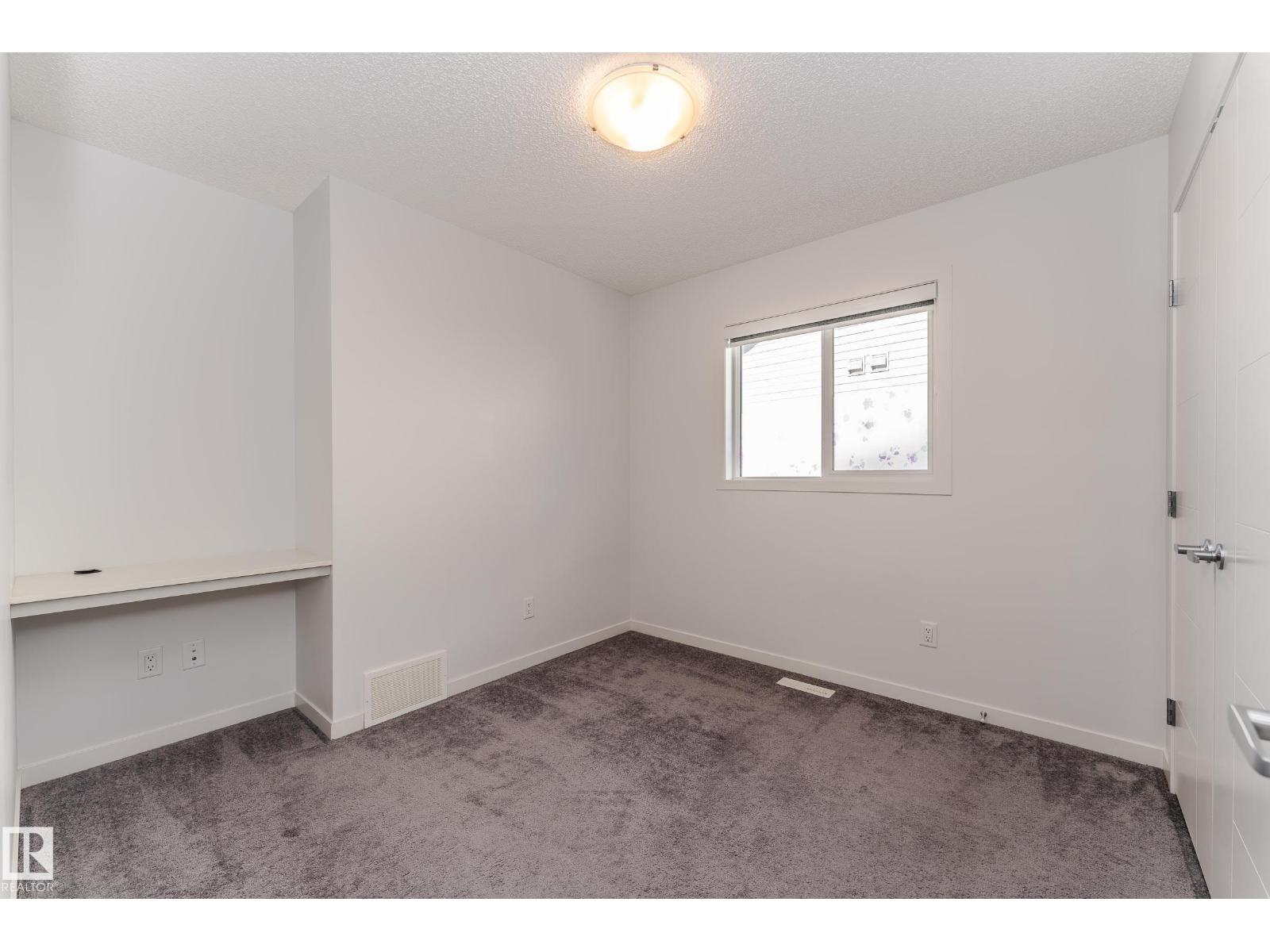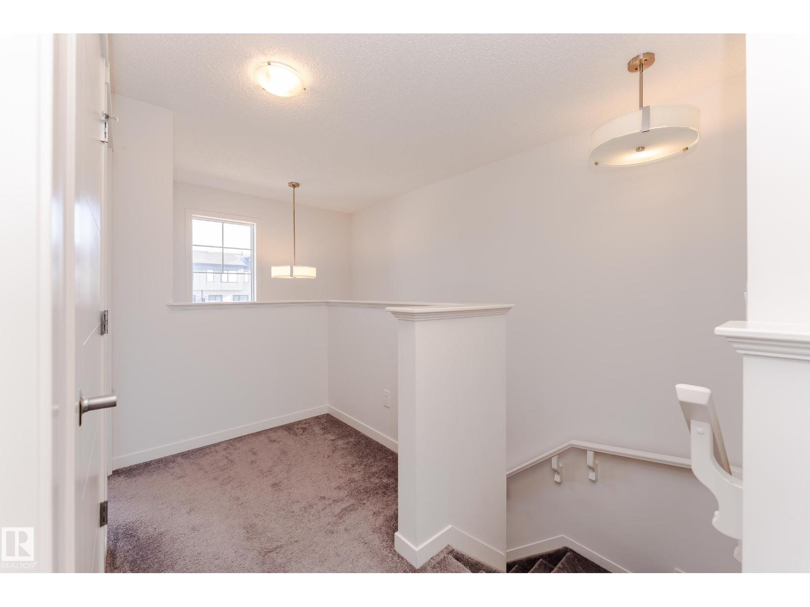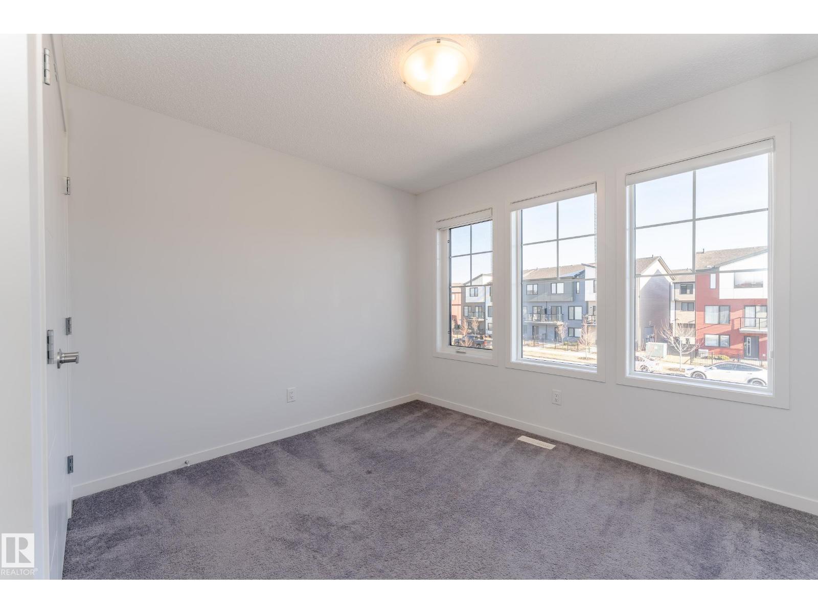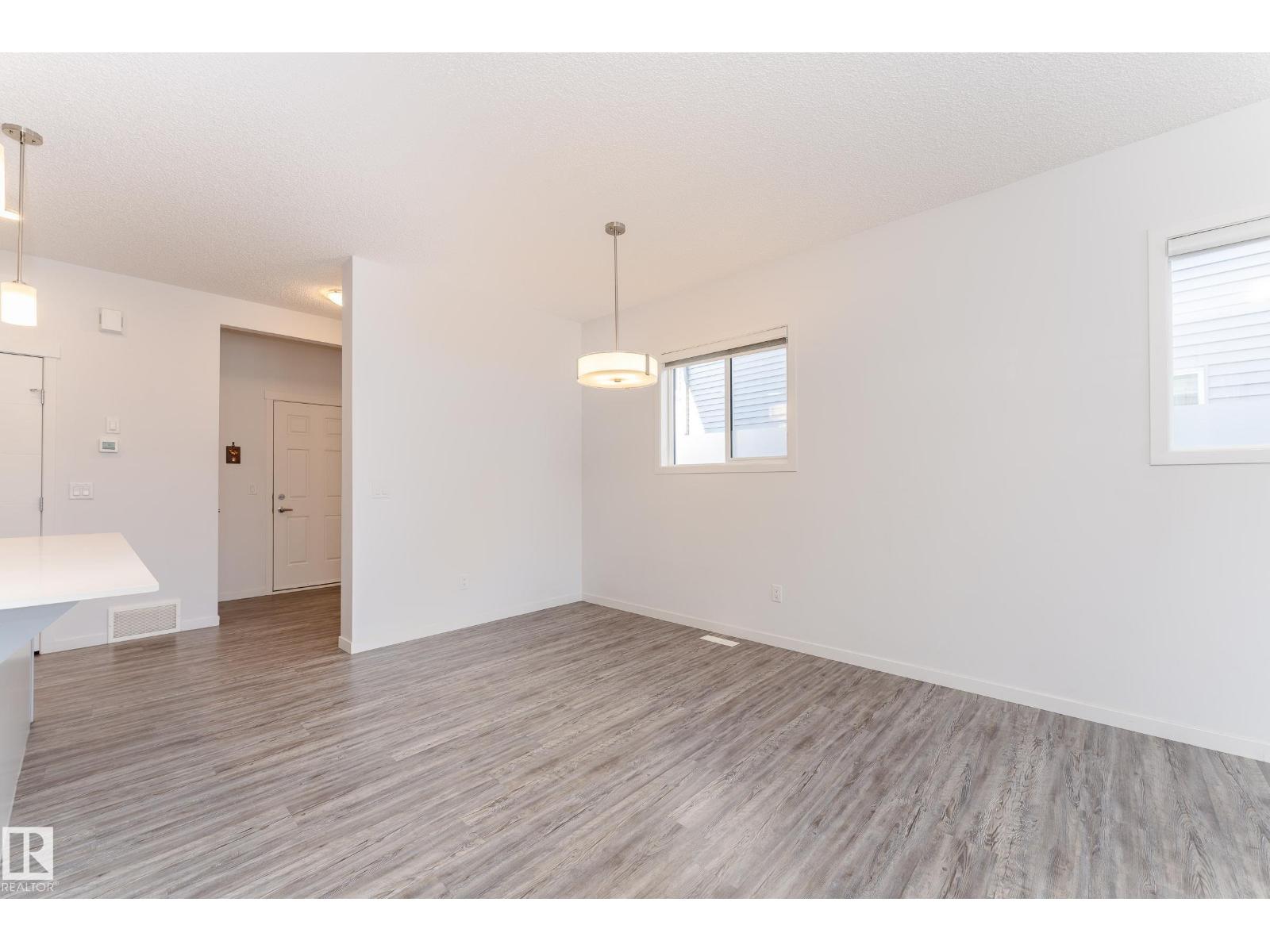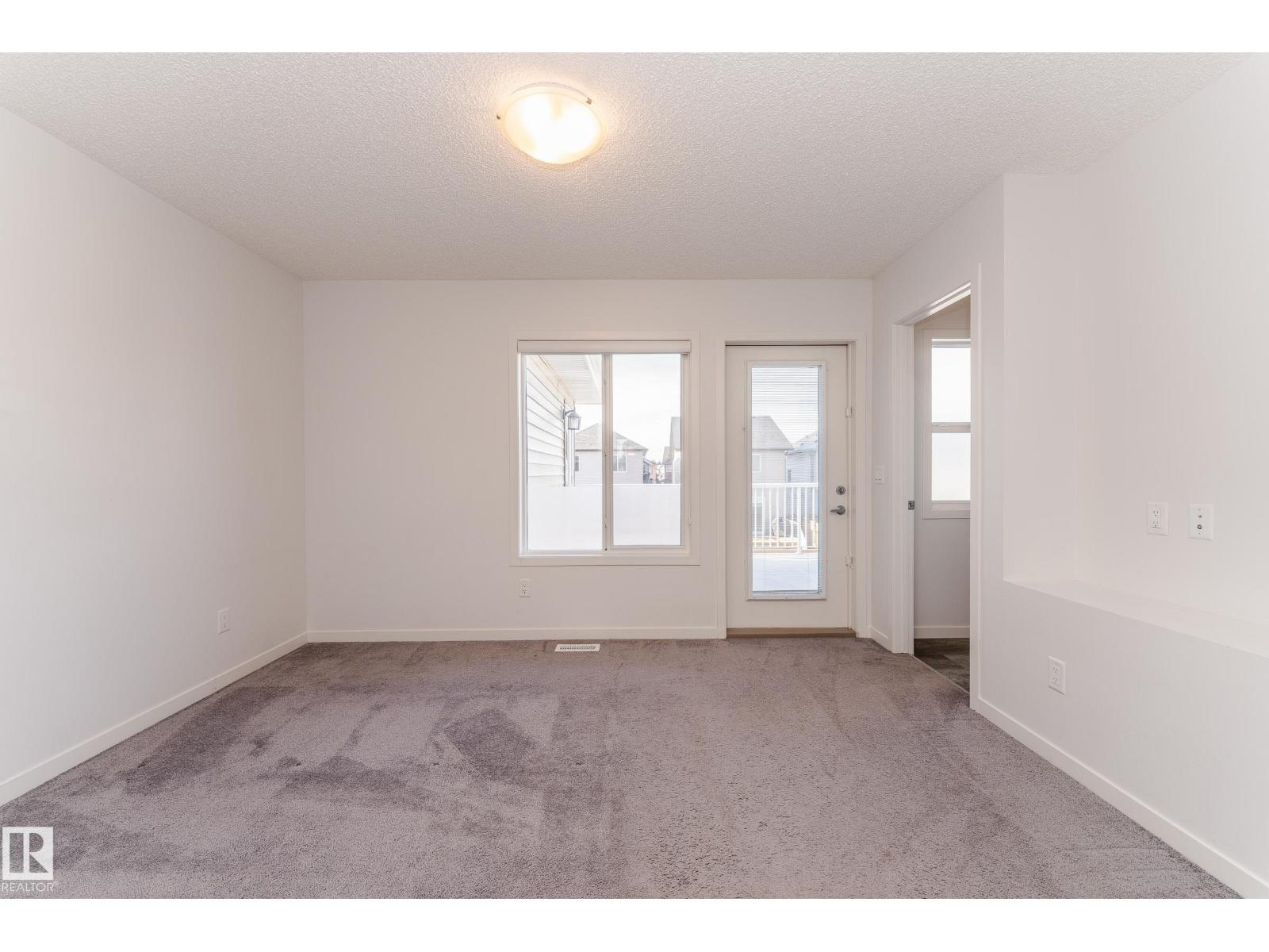 Welcome to your dream home in the highly sought-after community of Desrochers! This stunning 1,412 SQFT, END-UNIT, NON-CONDO-FEE, DOUBLE ATTACHED GARAGE townhome boasts exceptional features and is sure to impress. As you enter, you'll be greeted by 9 ft ceilings on the first floor, creating an airy and spacious atmosphere. The end unit location provides abundant natural light, making your living experience brighter and more comfortable. The main floor features LED lights to ensure modern convenience and energy efficiency. The second floor features three generously sized bedrooms and a BALCONY that allows you to enjoy the outdoors from the comfort of your own home. This gorgeous townhome has been impeccably maintained by the owner. Real walking distance to High School, Community Shopping Center, and Bus-stop. Easy access to Anthony Henday, South Common, and Airport Outlet. (id:63190)