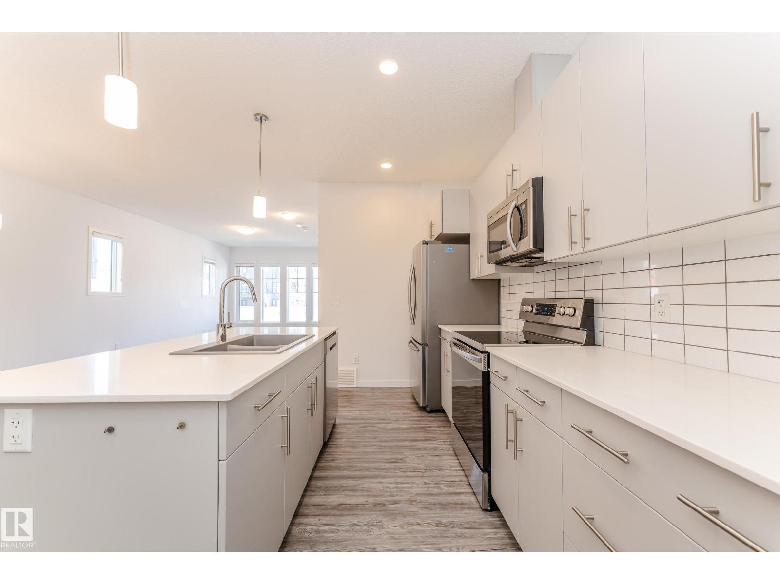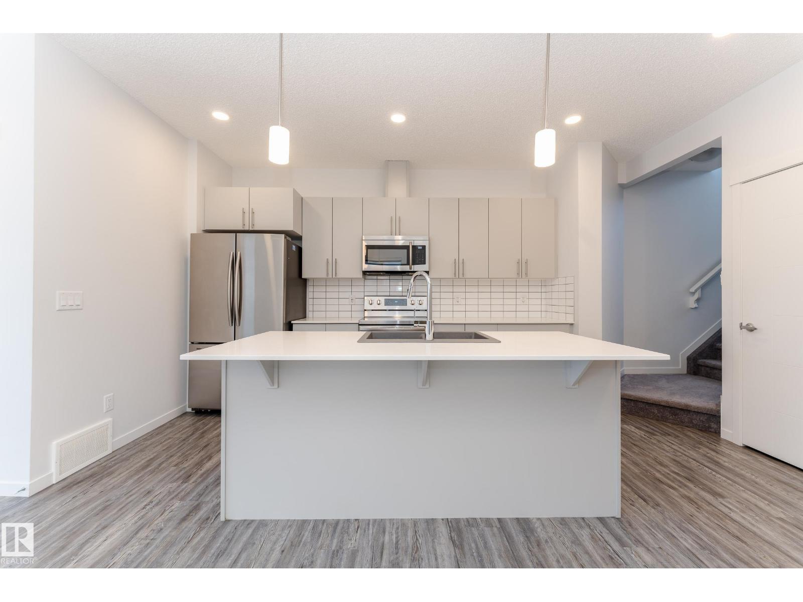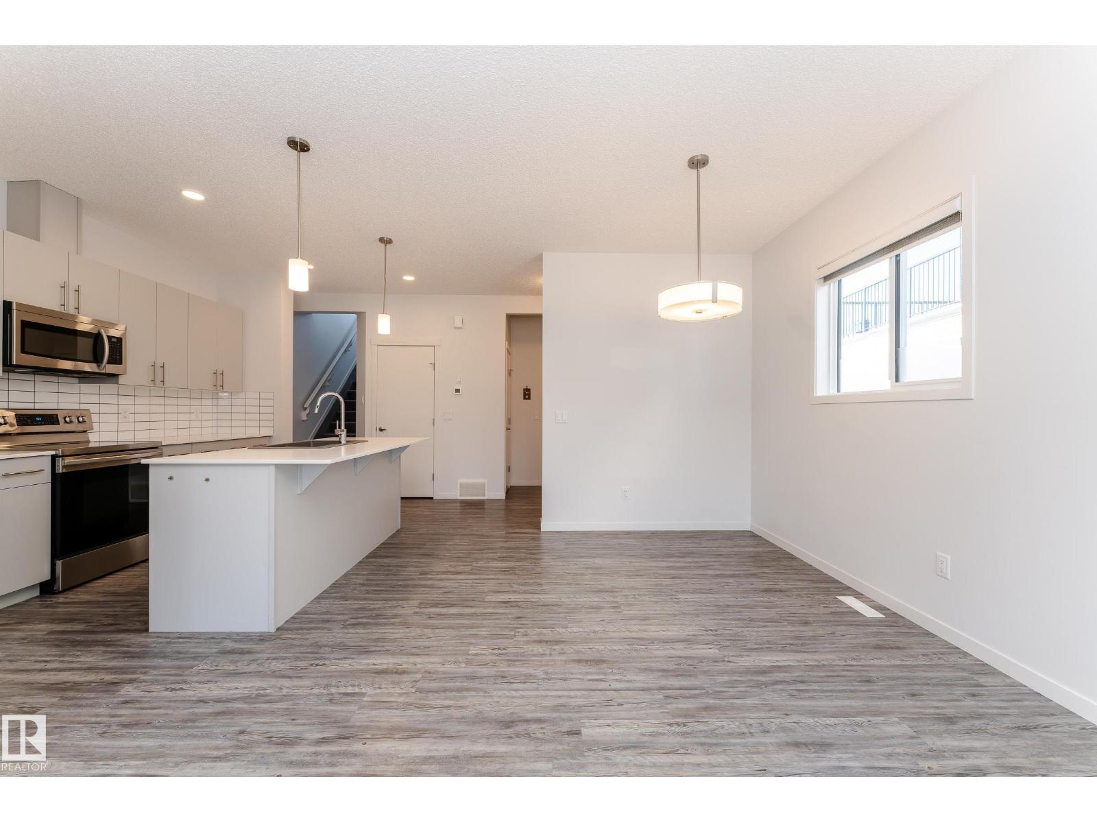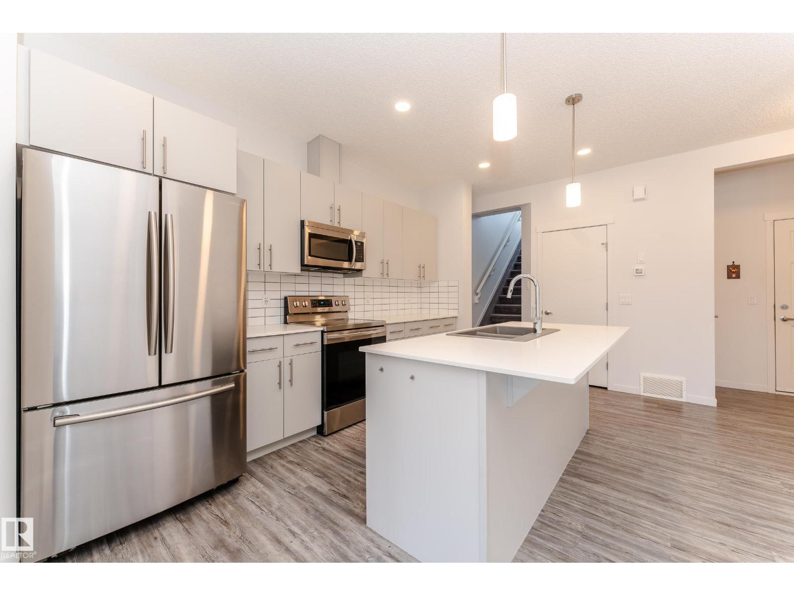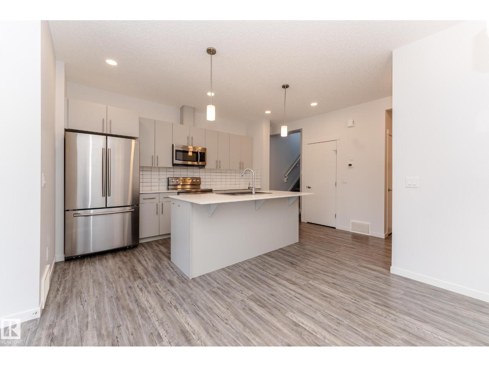 Welcome to your dream home in the highly sought-after community of Desrochers! This stunning 1,412 SQFT, END-UNIT, NON-CONDO-FEE, DOUBLE ATTACHED GARAGE townhome boasts exceptional features and is sure to impress. As you enter, you'll be greeted by 9 ft ceilings on the first floor, creating an airy and spacious atmosphere. The end unit location provides abundant natural light, making your living experience brighter and more comfortable. The main floor features LED lights to ensure modern convenience and energy efficiency. The second floor features three generously sized bedrooms and a BALCONY that allows you to enjoy the outdoors from the comfort of your own home. This gorgeous townhome has been impeccably maintained by the owner. Real walking distance to High School, Community Shopping Center, and Bus-stop. Easy access to Anthony Henday, South Common, and Airport Outlet. (id:63190)