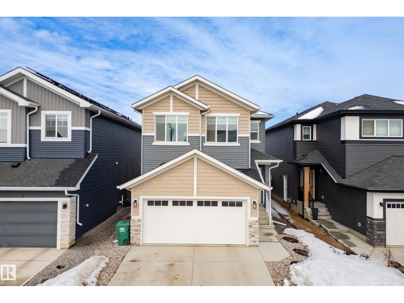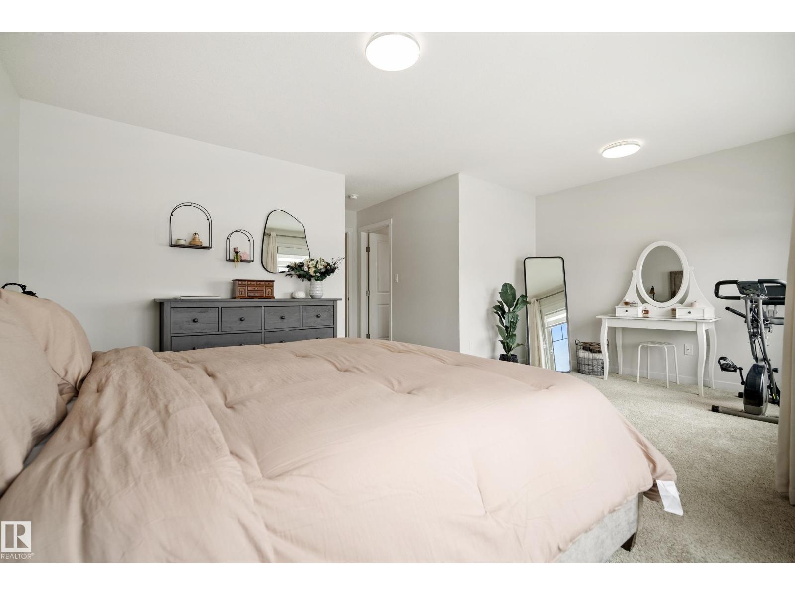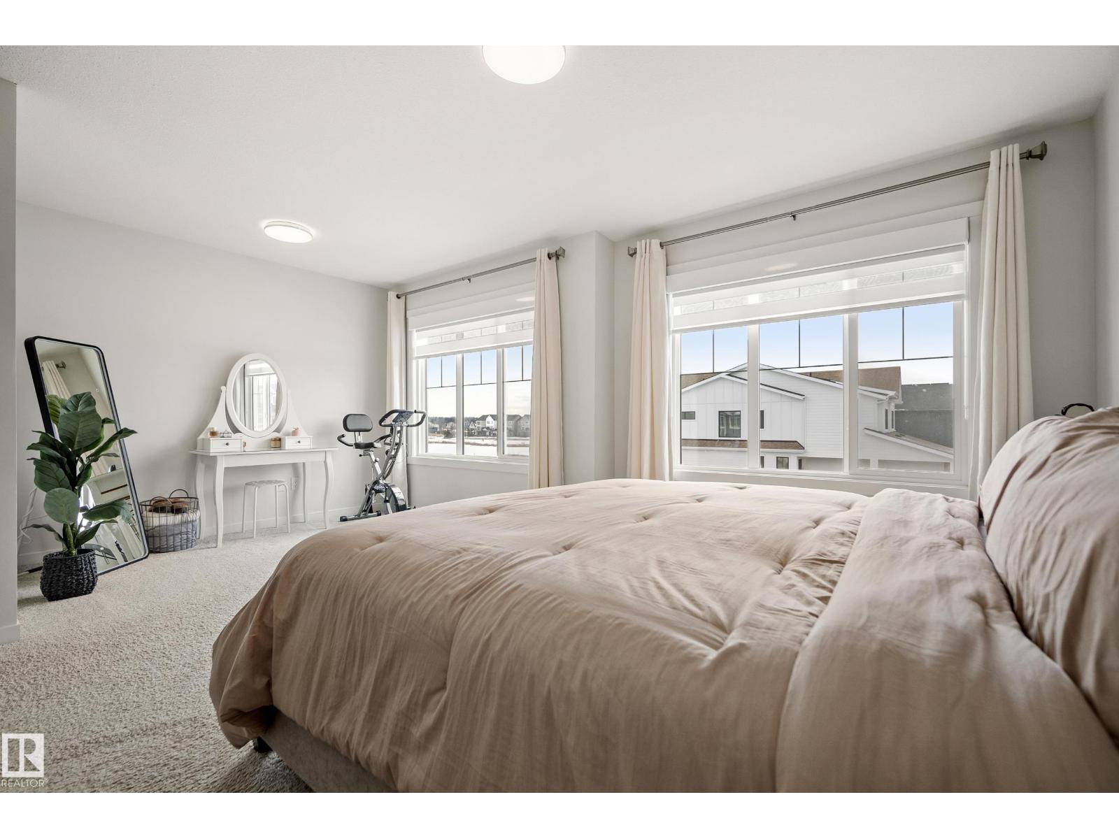 Welcome to Riverside, St. Albert – immaculate home crafted by Coventry Homes. Enjoy the bright, open main floor, highlighted by floor-to-ceiling windows spanning the entire back wall for sun-filled views. The unique, U-shaped kitchen maximizes counter space and cabinetry, featuring a large center island perfect for meal prep. The practical mudroom offers custom built-in shelving, leading to a huge walkthrough pantry for ultimate storage and organization. Upstairs, discover two generously sized bedrooms and a versatile center bonus room, ideal for a home office or cozy retreat. The expansive primary suite is a private oasis, featuring a massive bedroom and a luxurious 5-piece ensuite with a soaking tub and dual vanities. Outside, the beautifully sized deck provides ample space for relaxation. Perfectly located across from the community pond with walking trails, this home is just a 15-minute walk to White Spruce Park, a 5-minute drive to the Lacombe Dog Park, and so much more! (id:63190)