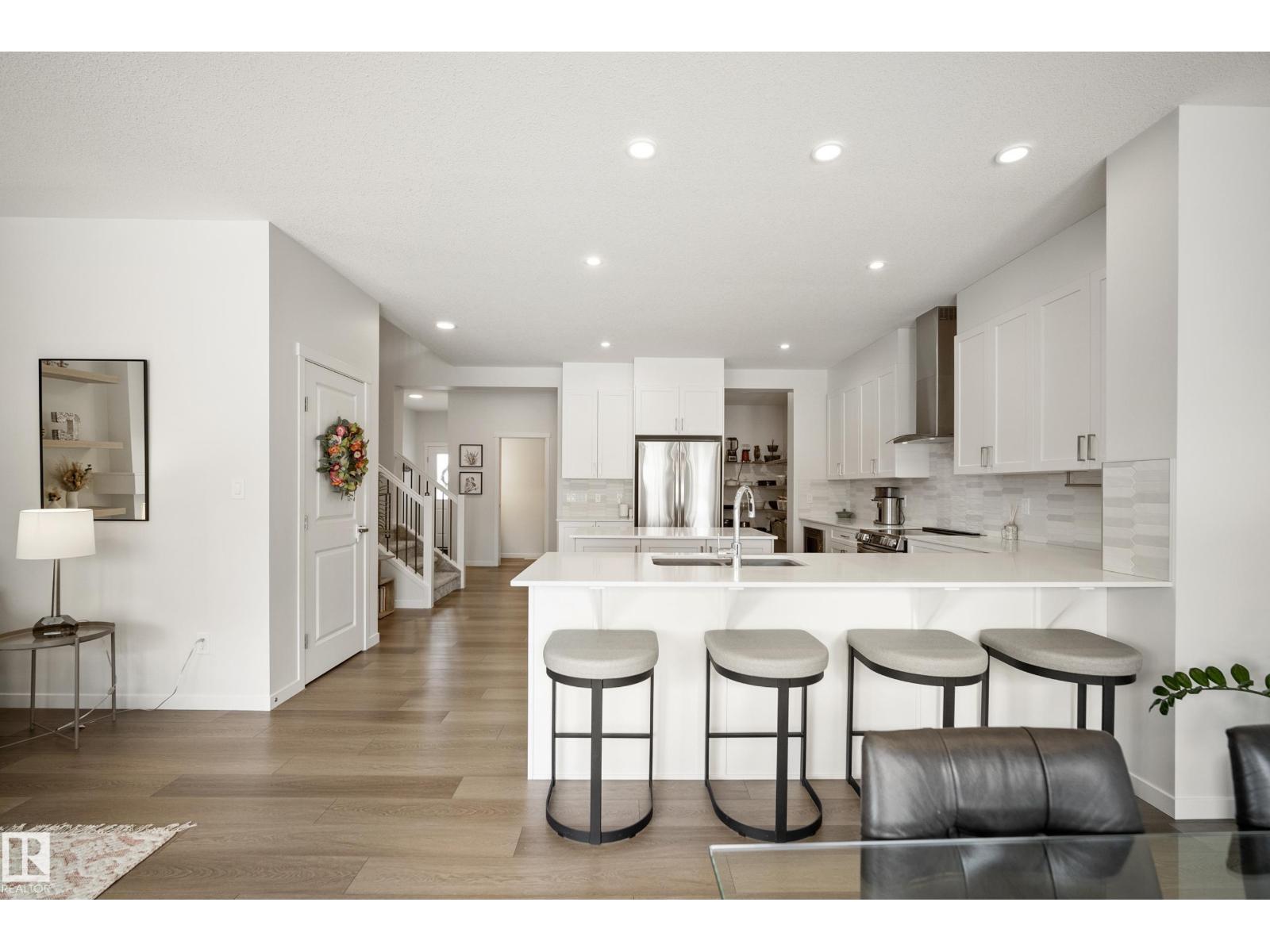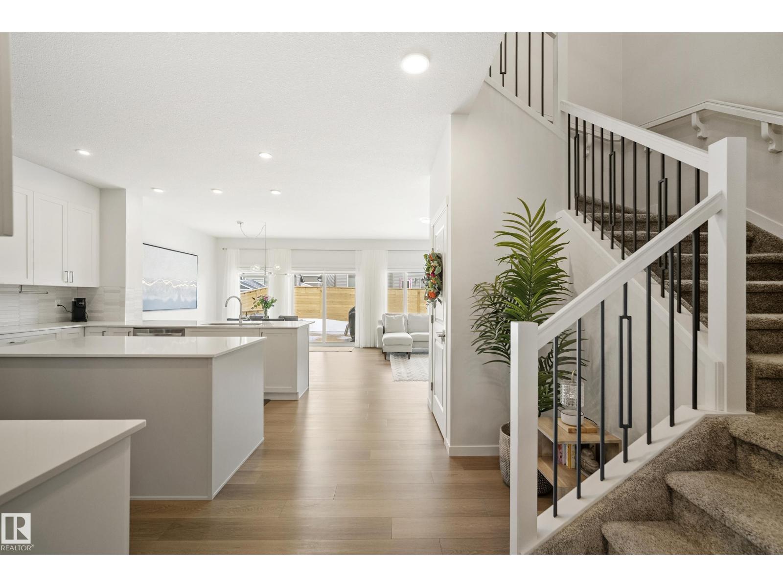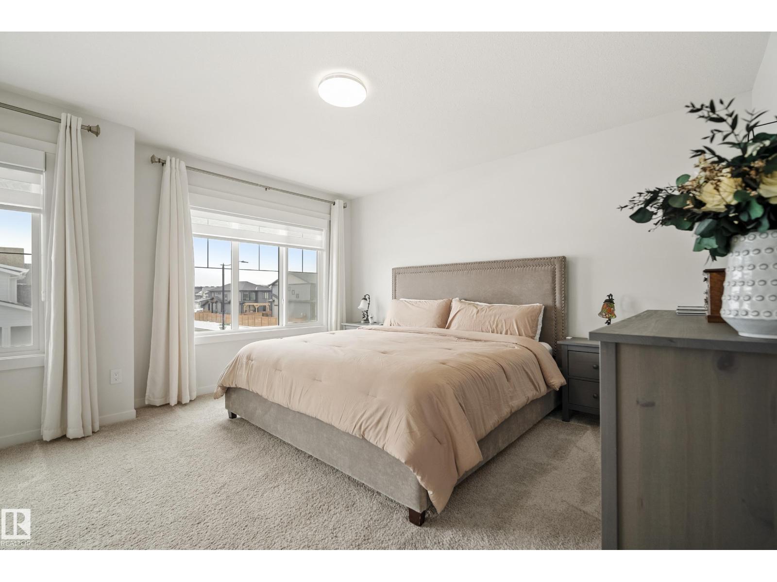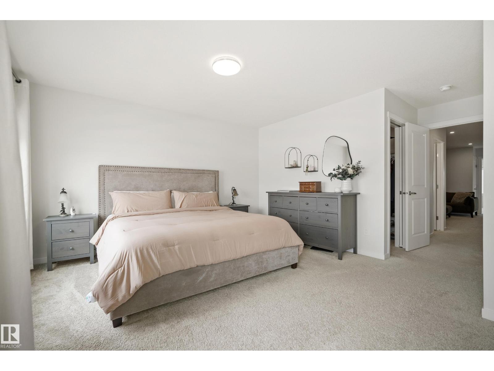 Welcome to Riverside, St. Albert – immaculate home crafted by Coventry Homes. Enjoy the bright, open main floor, highlighted by floor-to-ceiling windows spanning the entire back wall for sun-filled views. The unique, U-shaped kitchen maximizes counter space and cabinetry, featuring a large center island perfect for meal prep. The practical mudroom offers custom built-in shelving, leading to a huge walkthrough pantry for ultimate storage and organization. Upstairs, discover two generously sized bedrooms and a versatile center bonus room, ideal for a home office or cozy retreat. The expansive primary suite is a private oasis, featuring a massive bedroom and a luxurious 5-piece ensuite with a soaking tub and dual vanities. Outside, the beautifully sized deck provides ample space for relaxation. Perfectly located across from the community pond with walking trails, this home is just a 15-minute walk to White Spruce Park, a 5-minute drive to the Lacombe Dog Park, and so much more! (id:63190)