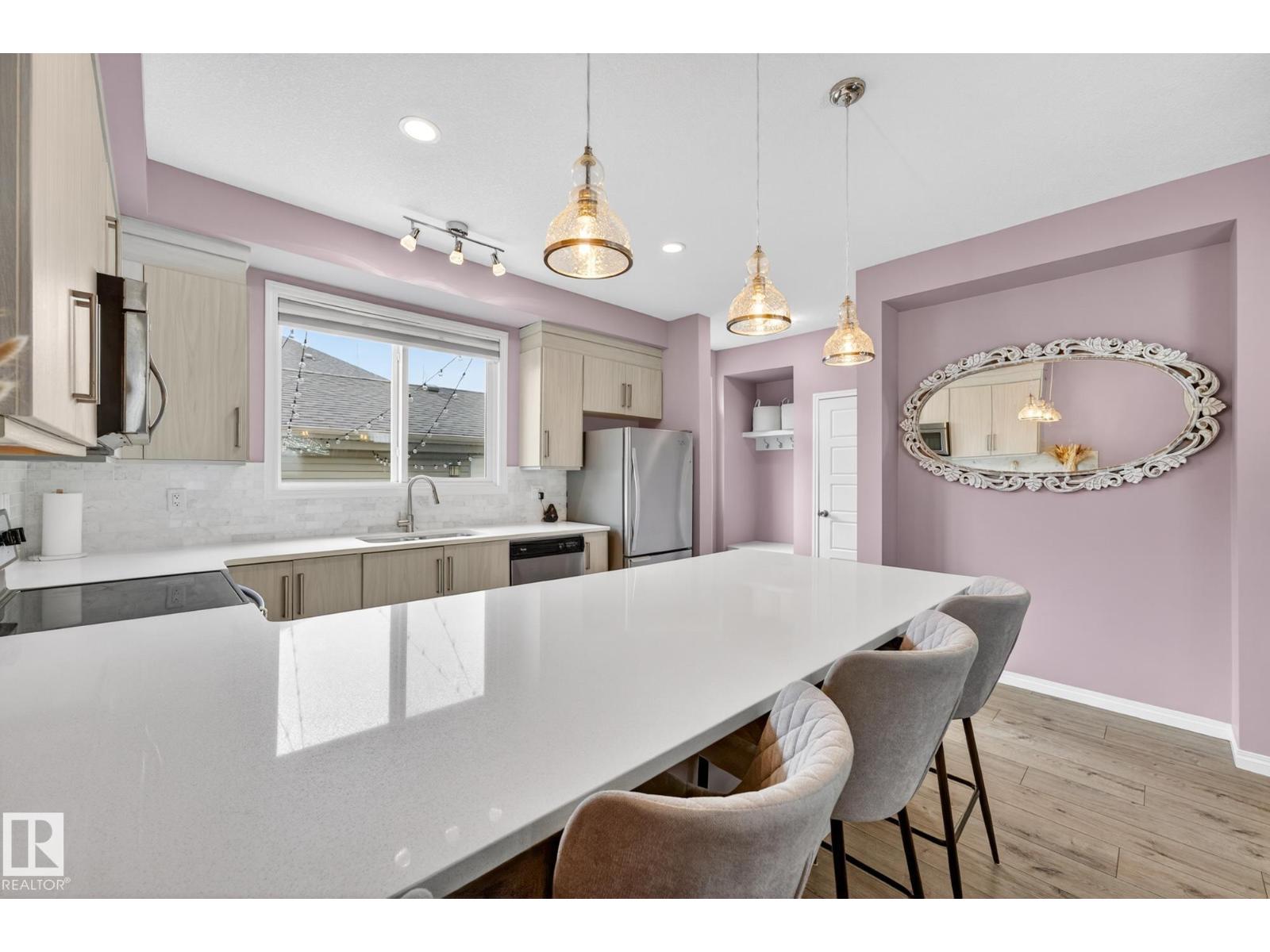 Welcome home to this stunning 2 storey residence where designer style meets community connection. In the heart of Chappelle, recognized as a top growing community, this home offers a lifestyle defined by convenience & charm (plus no condo fees.) Step inside to a bright main floor that flows from a chic living room with custom floral accents to a modern kitchen featuring sleek cabinetry, quartz counters, & a social breakfast bar. Fully finished basement provides tons of storage & the perfect space for movie nights or a home gym. Upstairs, the primary retreat features a stunning panelled wall & private ensuite, while additional bedrooms offer space for family or guests. Outside, the private, fenced back yard is warm and inviting, offering an amazing space to relax or entertain friends. Living here puts you close to schools, shopping, amenities & walking trails. With a double detached garage and quick access to the Anthony Henday, life is effortless. This is the perfect balance of nature &modern living. (id:63190)