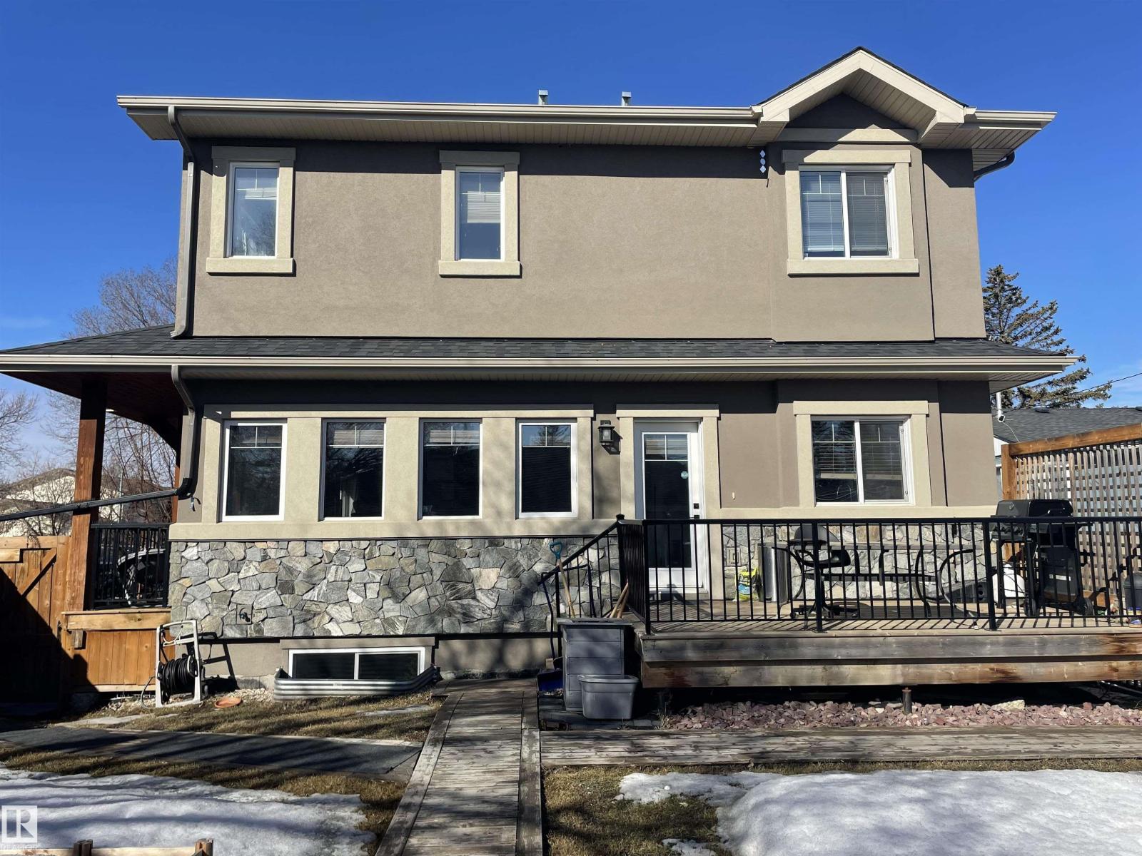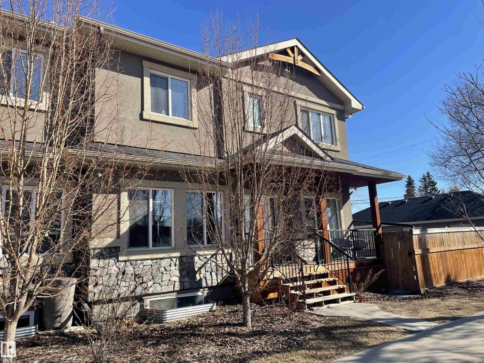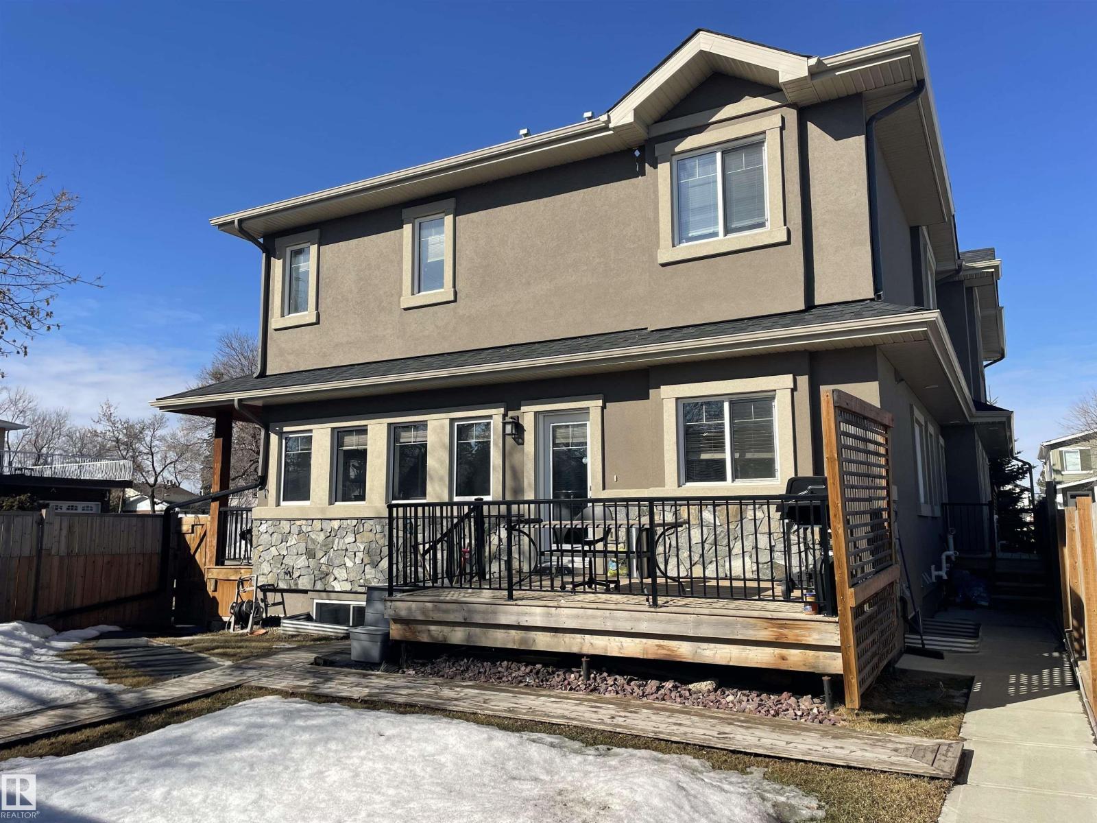 Incredible half duplex on a quiet residential street in the family friendly neighborhood of Canora. This meticulously maintained home offers 6 bedrooms and 4 bathrooms featuring custom built-in cabinetry, upgraded stainless steel appliance package and premium finishes throughout. The gorgeous chef’s kitchen features significant amount of cabinetry, quartz countertops, and an incredible space for cooking and entertaining. The bright and functional layout includes convenient main floor laundry and spacious living areas designed for comfort and style. A separate entrance leads to the fully finished lower living area with its own kitchen, two bedrooms, and laundry—perfect for extended family. Step outside to a stunning side yard with close garage proximity, and a large deck perfect for entertaining. Completing the property is a double car garage and a location close to parks, schools, and amenities. A wonderful opportunity in one of Edmonton’s most sought after communities. (id:63190)