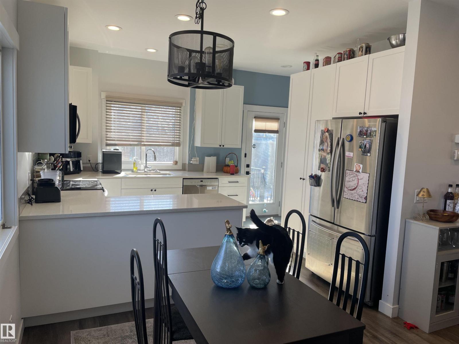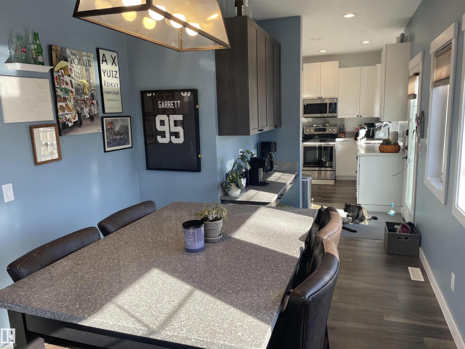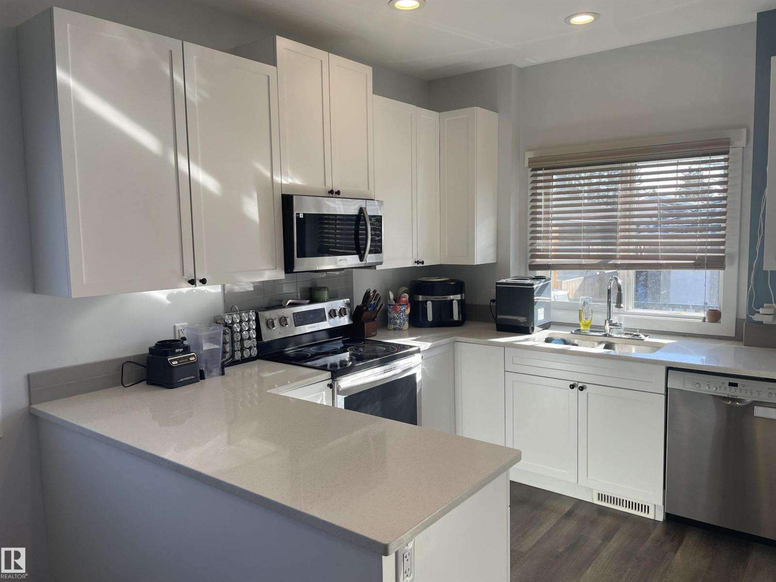 Incredible half duplex on a quiet residential street in the family friendly neighborhood of Canora. This meticulously maintained home offers 6 bedrooms and 4 bathrooms featuring custom built-in cabinetry, upgraded stainless steel appliance package and premium finishes throughout. The gorgeous chef’s kitchen features significant amount of cabinetry, quartz countertops, and an incredible space for cooking and entertaining. The bright and functional layout includes convenient main floor laundry and spacious living areas designed for comfort and style. A separate entrance leads to the fully finished lower living area with its own kitchen, two bedrooms, and laundry—perfect for extended family. Step outside to a stunning side yard with close garage proximity, and a large deck perfect for entertaining. Completing the property is a double car garage and a location close to parks, schools, and amenities. A wonderful opportunity in one of Edmonton’s most sought after communities. (id:63190)