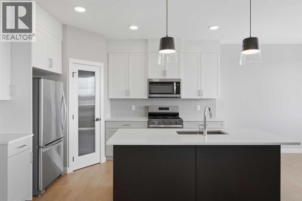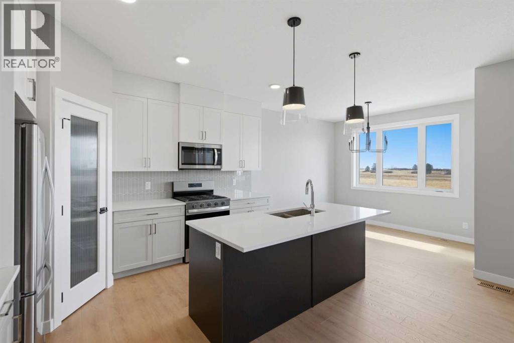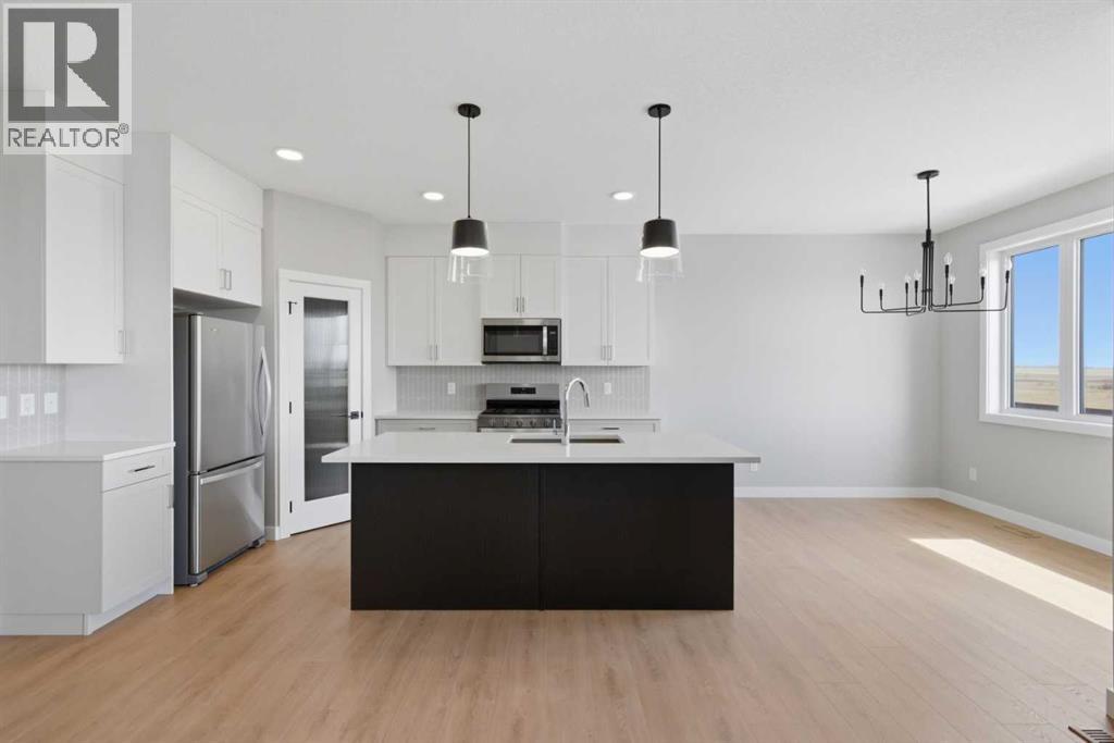 IMMEDIATE POSSESSION | 2,028 SQ.FT. | 3+1-BED | 3-BATH | GOURMET KITCHEN | SEPARATE ENTRANCE | DECK | FRONT LANDSCAPING | Built by Crystal Creek Homes, this two-storey in Belvedere offers over 2,000 sq. ft. of modern living space with durable HARDIE BOARD siding, upgraded features, and front landscaping. The open main floor features a bright living area with a stylish linear FIREPLACE and an inviting dining space that opens onto the REAR DECK where you can enjoy morning sun and open views with NO REAR NEIGHBOURS The gourmet kitchen includes a GAS RANGE, wall oven, full-height cabinetry, stainless-steel appliances, and a large island ideal for everyday use or entertaining. Upstairs, a central bonus room complements three spacious bedrooms and a conveniently located laundry room. The primary suite offers a walk-in closet and a 4-PIECE ENSUITE with dual vanities and a walk-in shower. The 9’ BASEMENT includes a separate SIDE ENTRANCE, offering future legal-suite potential (subject to City approval and permitting). Set in Calgary’s vibrant southeast community of Belvedere, residents enjoy easy access to parks, pathways, schools, East Hills Shopping Plaza, and major routes. Built to Crystal Creek’s high standards and covered by THE ALBERTA NEW HOME WARRANTY PROGRAM—ready for you to move in and make it your own. (id:63190)