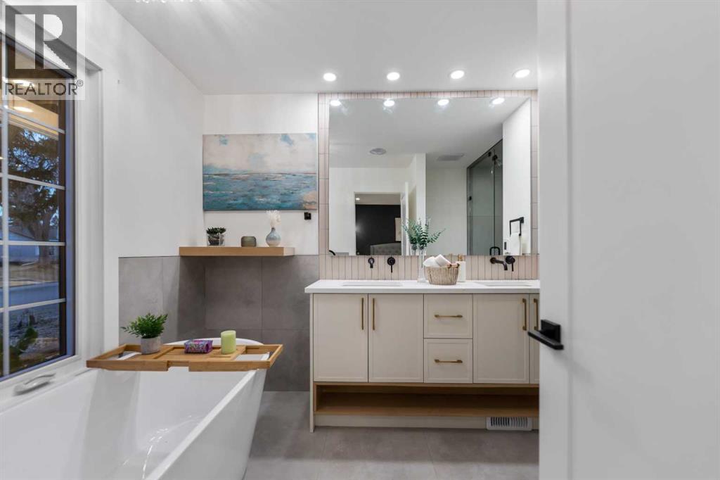 LARGE LOT | RENOVATED INSIDE AND OUT | BRIGHT & SPACIOUS | MODERN OPEN CONCEPT | 4 BEDS & 3 FULL BATHS | GYM | WET BAR | NEW AIR CONDTIONER | HEATED ENSUITE FLOOR | STEAM SHOWER | OVERSIZED DETACHED GARAGE.Welcome to your dream home in the sought after community of Lake Bonnavista! Fantastic location situated on a Large lot and walking distance to St.Boniface School and Lake Bonnavista School. This stunning home is completely remodeled with unlimited upgrades and features, with all the city permits and Engineer consultation, to give you the warmth of a home .Bright and spacious main floor with vaulted ceiling features a large front window which gives you plenty of sunlight and features a modern open concept with a living room, a cozy fireplace & a dining room. The brand new , elegant and tastefully designed kitchen is a dream for anybody and includes a large center island, premium quartz countertops, stainless steel appliances, gas range , and a lot of storage space,and above all a security camera screen for your security. The Oak railing adds more to the beauty of this home. Moving further, you are greeted with a primary bedroom with an attached 5 piece ensuite/w steam shower and walk in closet with lot of storage space for his and her. There is another good-sized room with a pocket door to the 4 Pc common washroom and a stackable laundry on the main floor for added convenience. The lower level has a large family room, a wet bar with fridge and a large gym with rubber floor. 2 additional bedrooms and a full washroom complete this floor. To add to all this, all the rooms in the basement have legal-size windows for added light. All new concrete in the front and back. The list goes on with a new hot water tank, roof shingles, siding, hardwood flooring , carpet, new plumbing,new electrical,etc etc . A must-see home.....Please call your realtor and book your showing. (id:63190)
